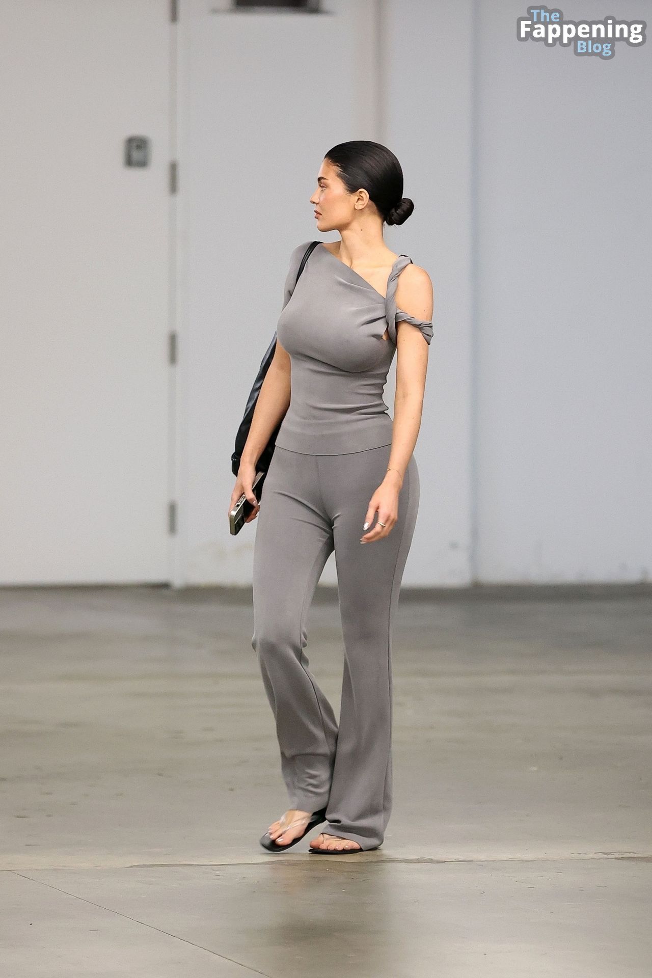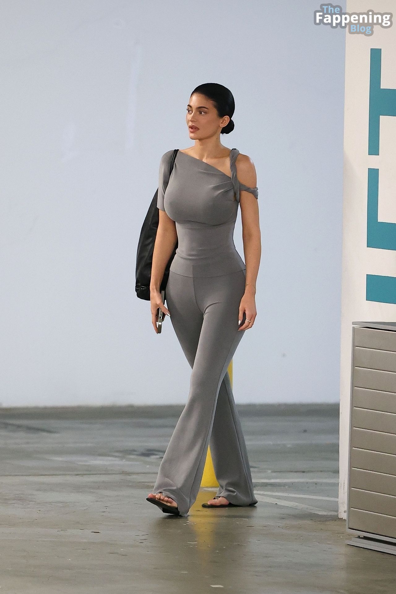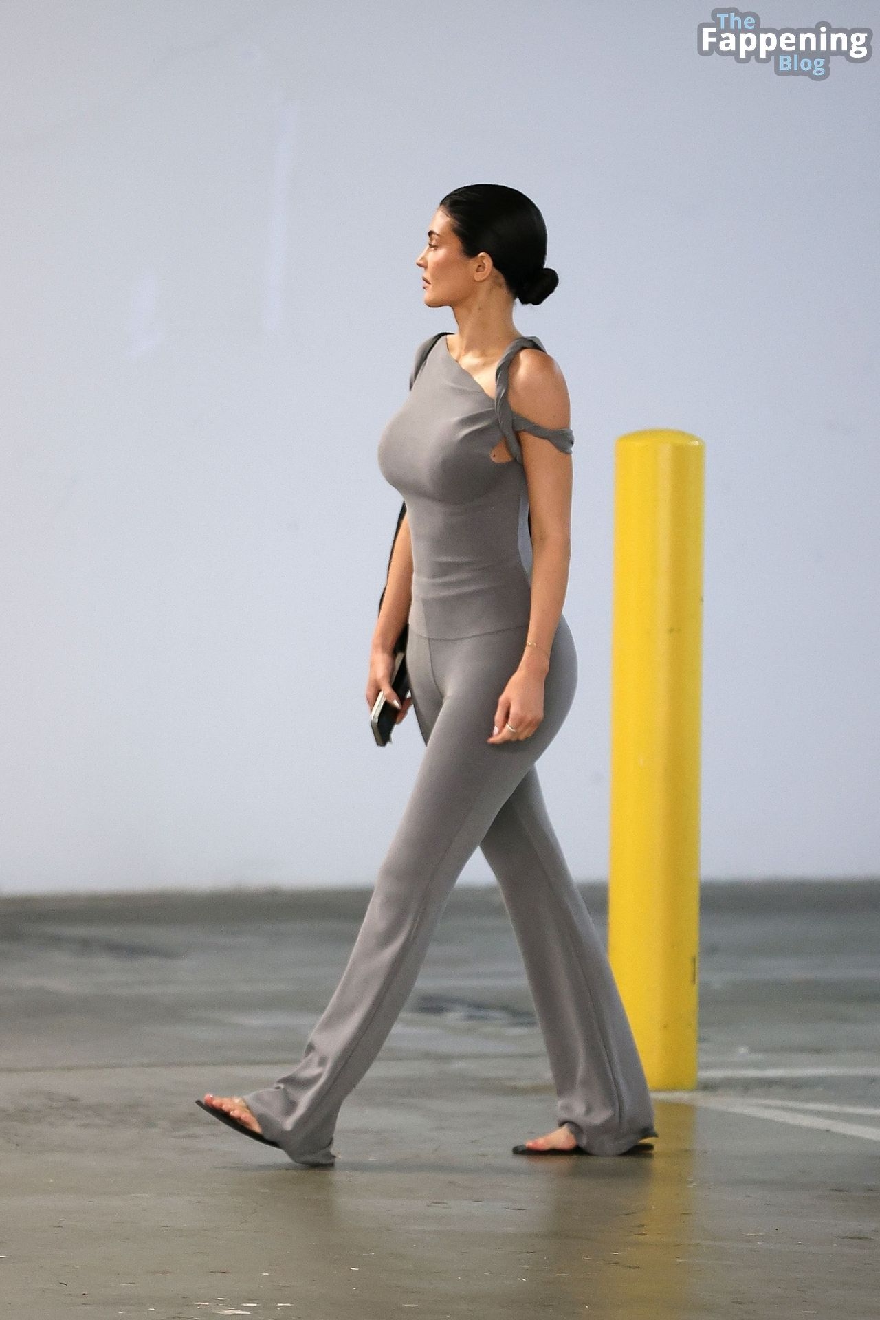 Kylie Jenner, vestida casualmente, usa um dos seus novos looks KHY enquanto vai para o carro após uma reunião em Woodland Hills.