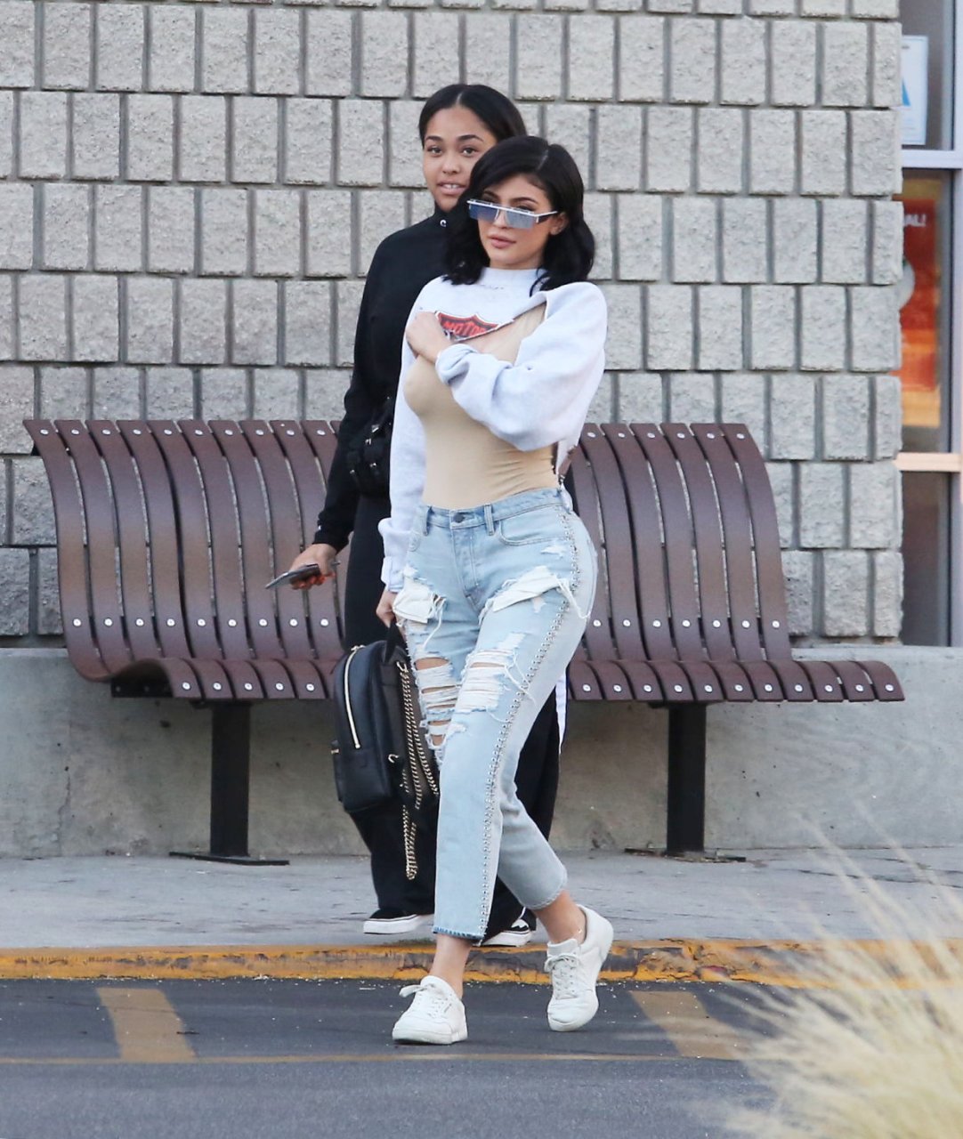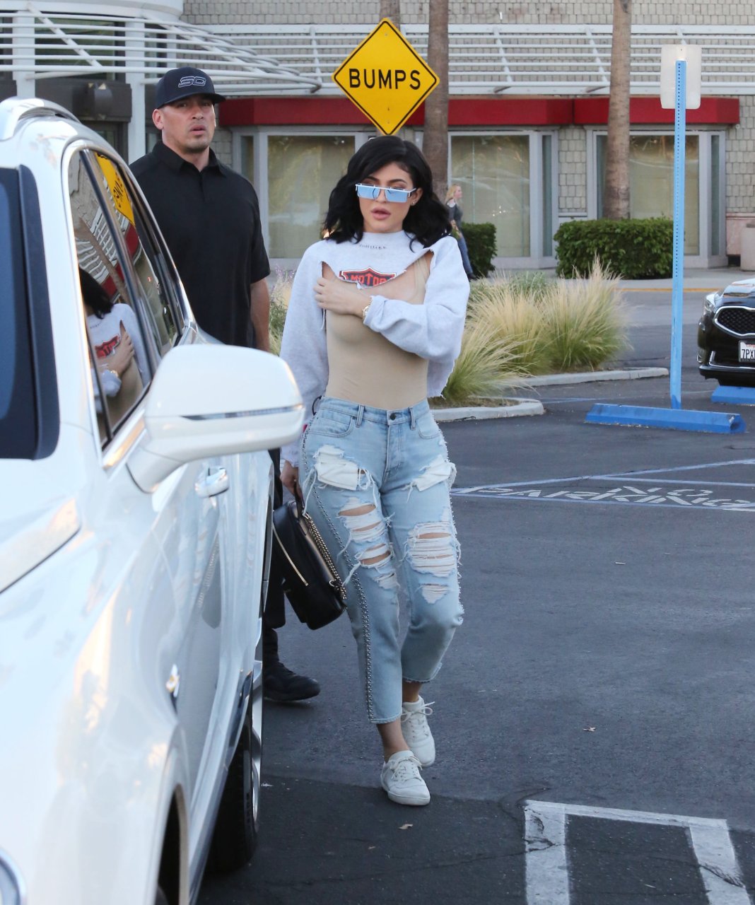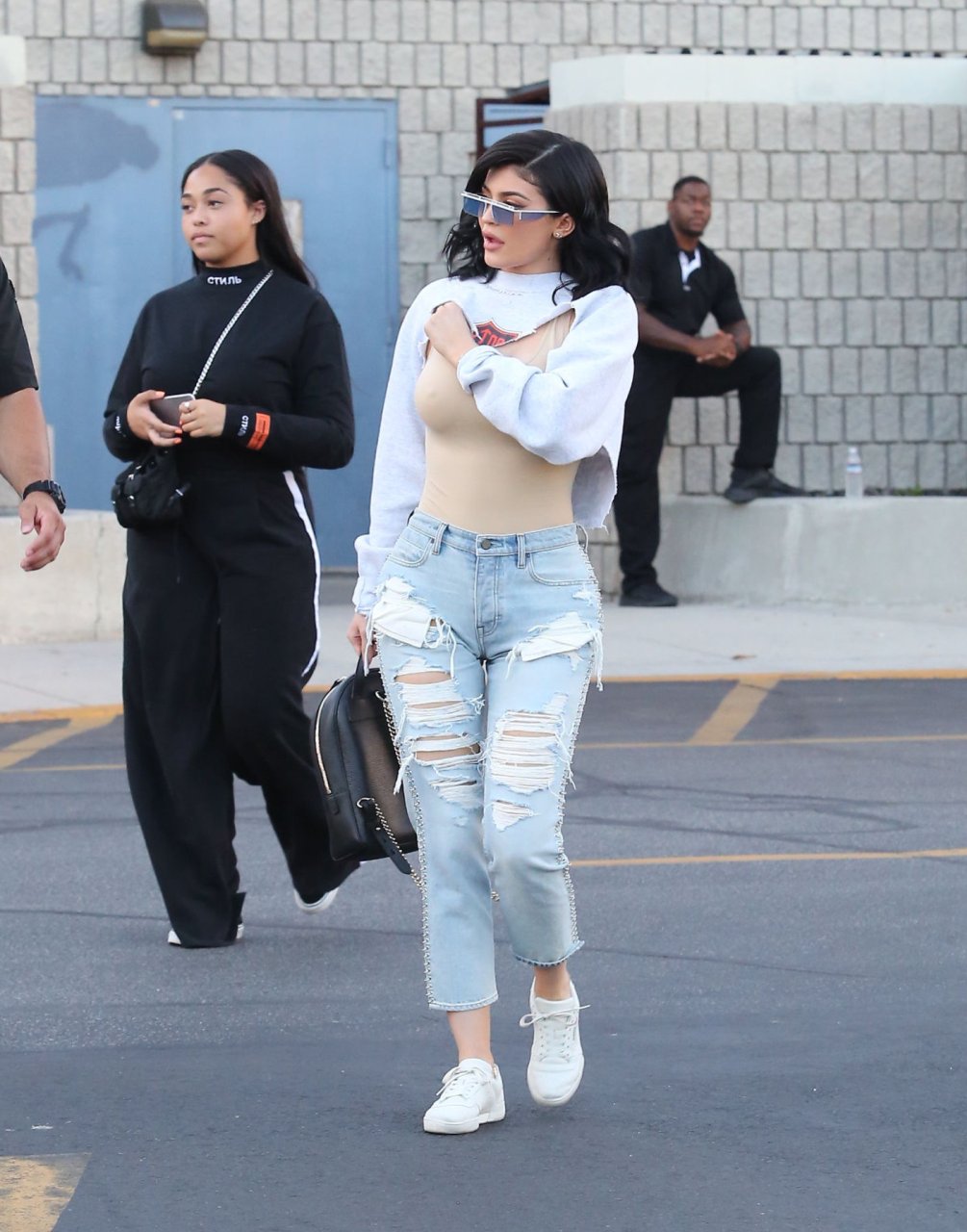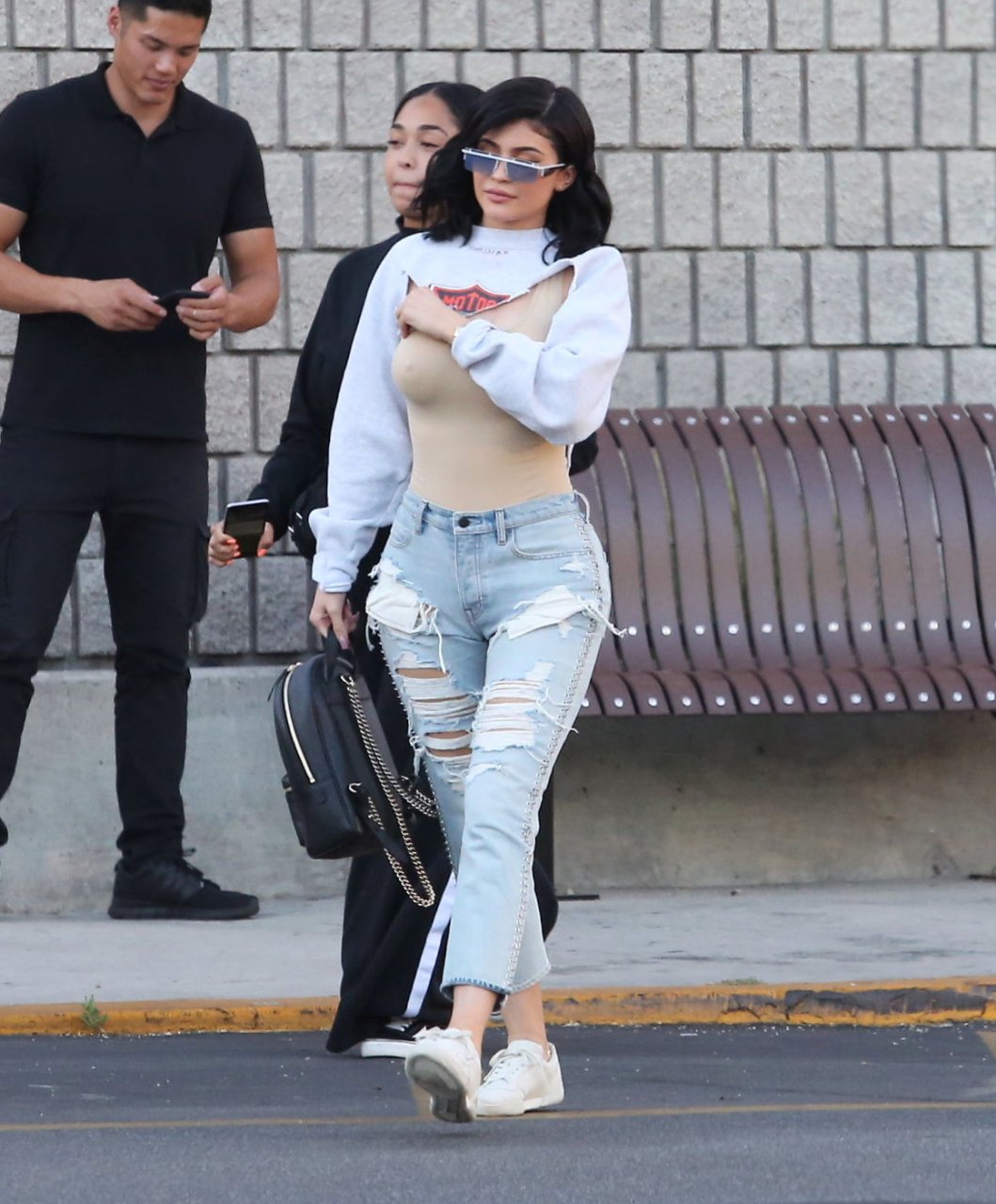 Kylie Jenner sem sutiã usa uma blusa transparente em Los Angeles, 15/06/2017. Kylie Jenner é uma estrela americana de reality show, designer, atriz, socialite, modelo e empresária. Idade – 19.