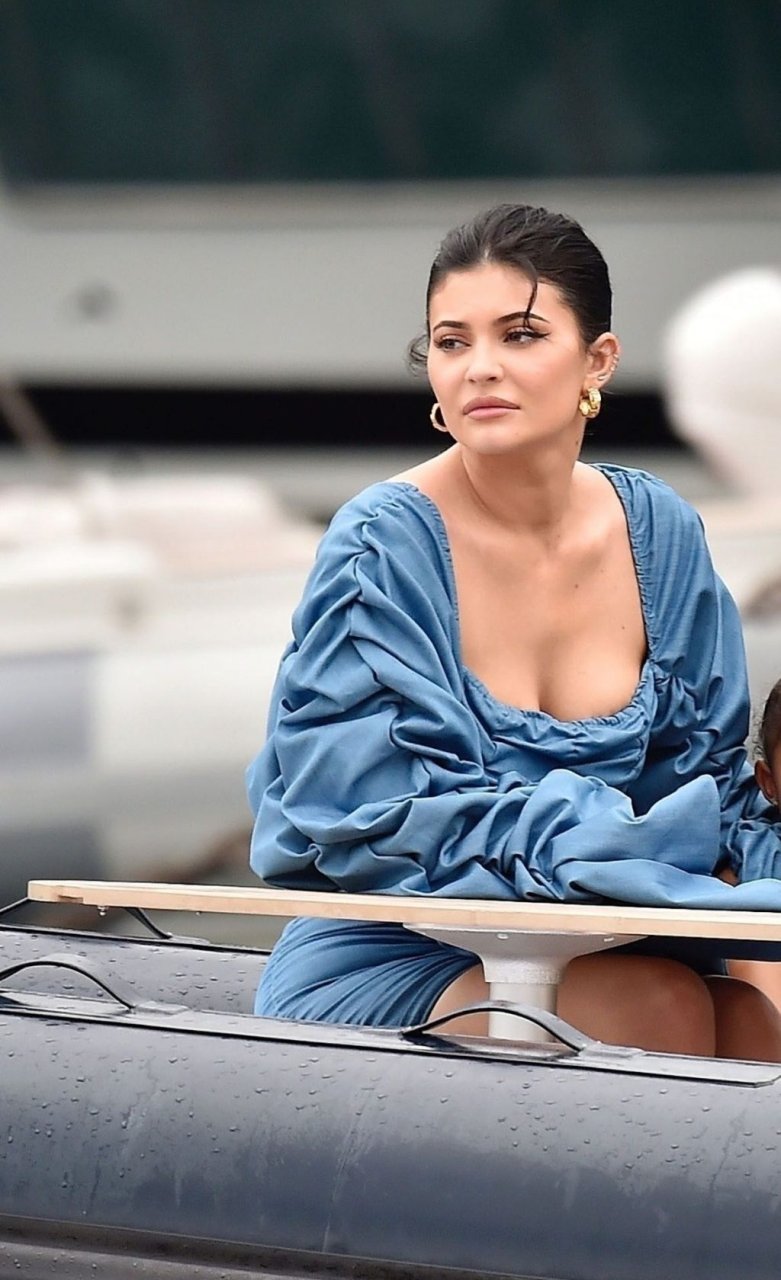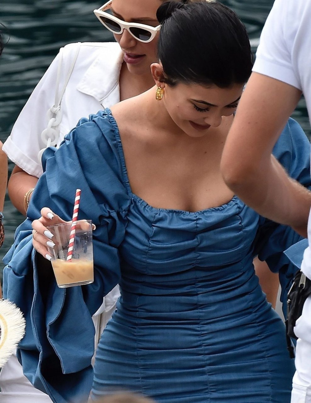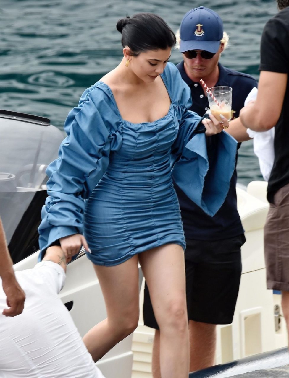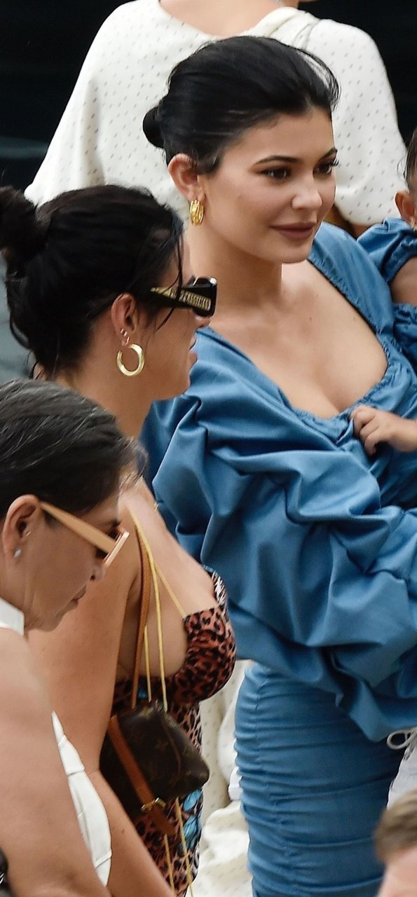 Kylie Jenner aproveita o dia com sua adorável filha Stormy usando vestidos jeans combinando com babados da TLZ L’FEMME em Portofino com a família, 12/08/2019. A aniversariante Kylie e Stormy apreciam as vistas com o papai Travis Scott, Scott Disick, Sofia Richie, sua mãe Kris Jenner e Corey Gamble.