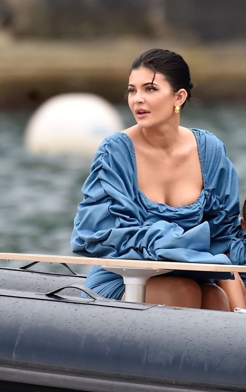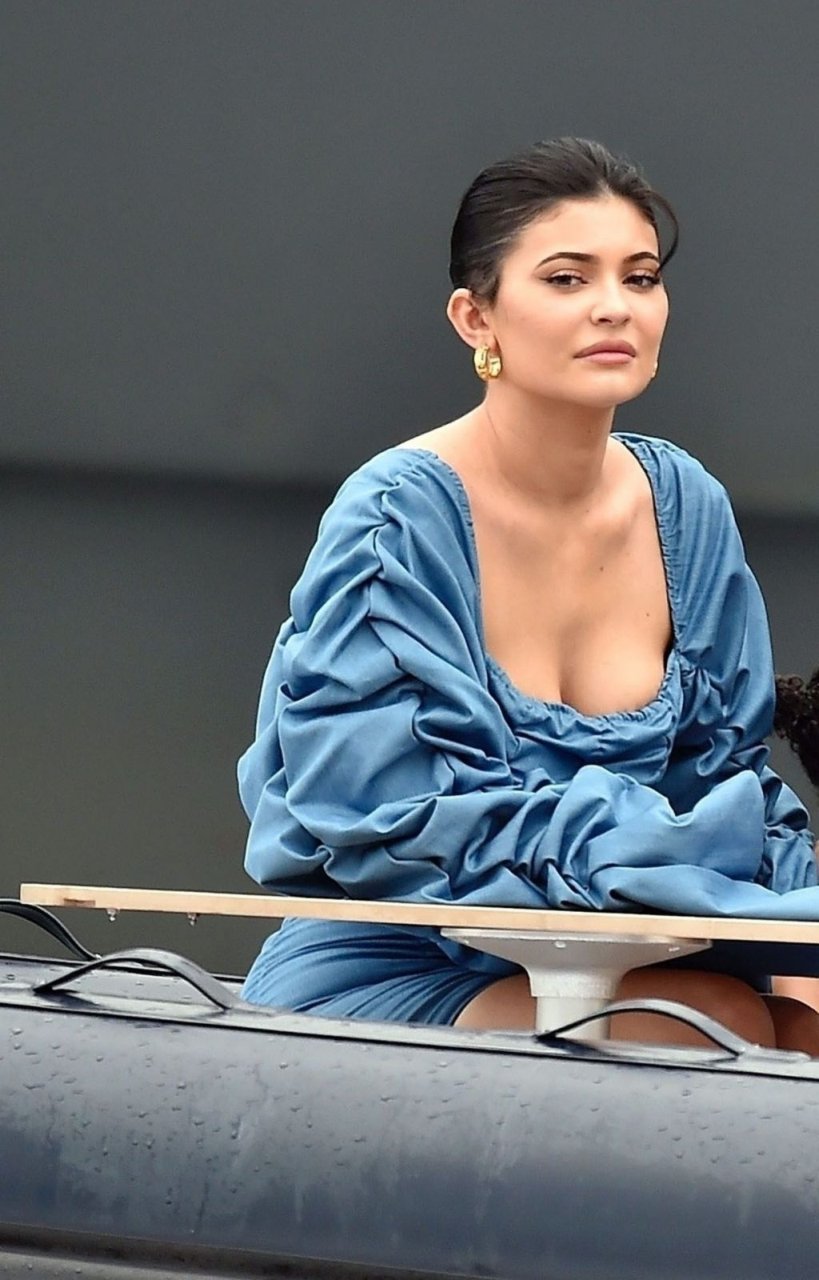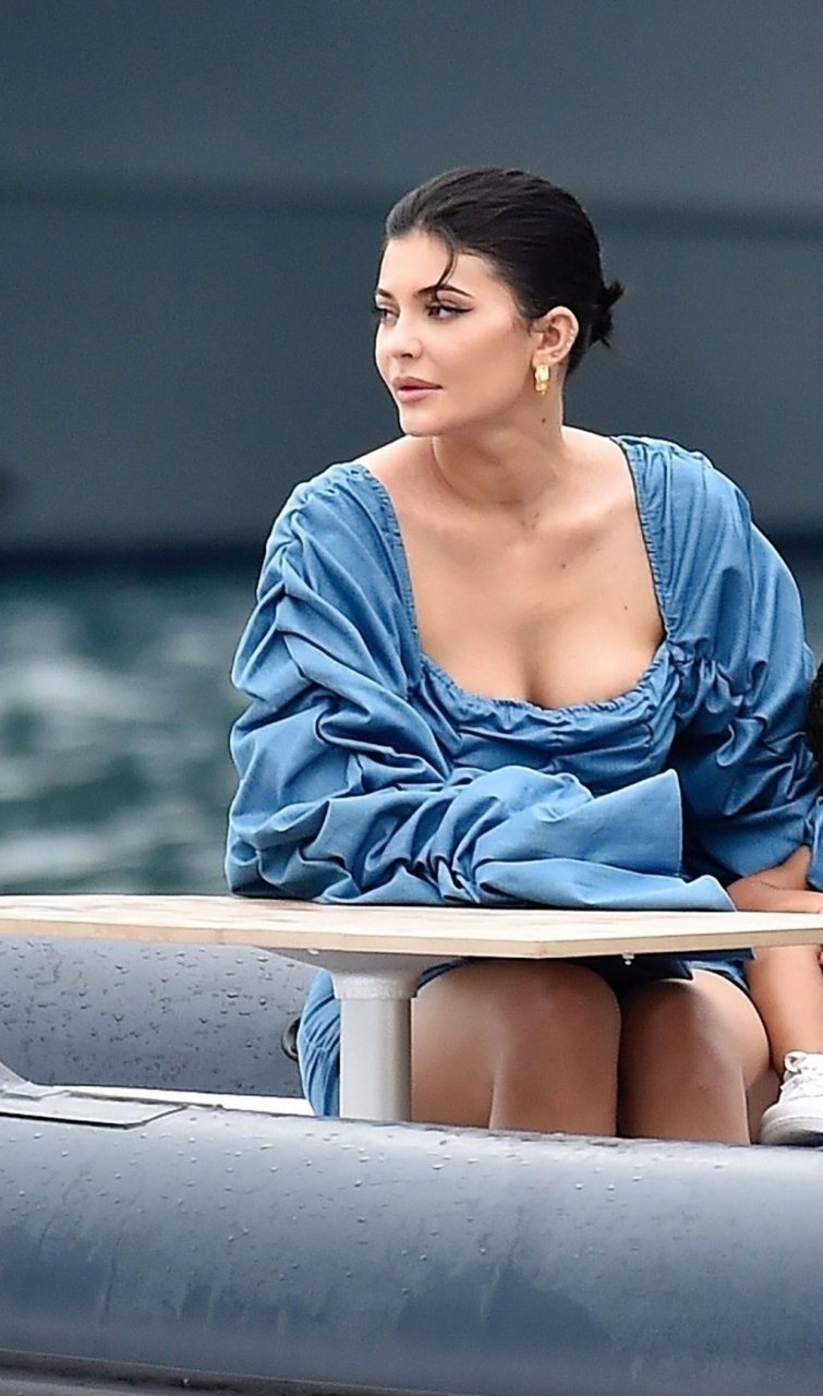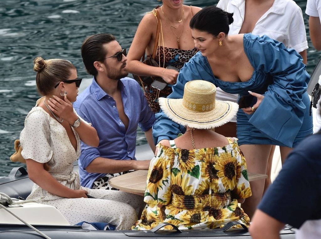 Kylie Jenner aproveita o dia com sua adorável filha Stormy usando vestidos jeans combinando com babados da TLZ L’FEMME em Portofino com a família, 12/08/2019. A aniversariante Kylie e Stormy apreciam as vistas com o papai Travis Scott, Scott Disick, Sofia Richie, sua mãe Kris Jenner e Corey Gamble.