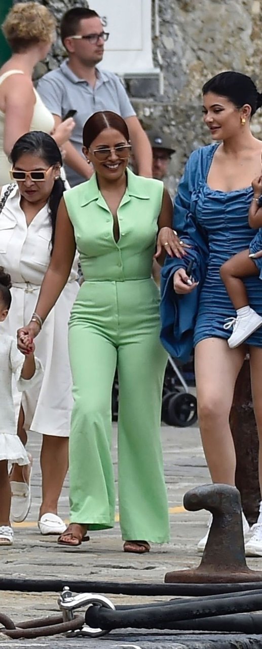 O grupo chegou à costa via um passeio de bote e passeou pela cidade costeira de Portofino, chamando a atenção com uma variedade de looks marcantes enquanto faziam compras, todos parecendo bastante glamourosos em sua pausa italiana.