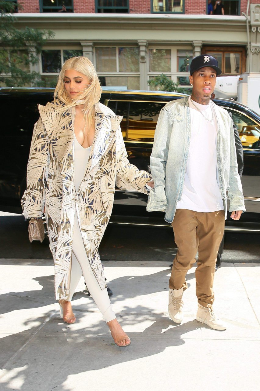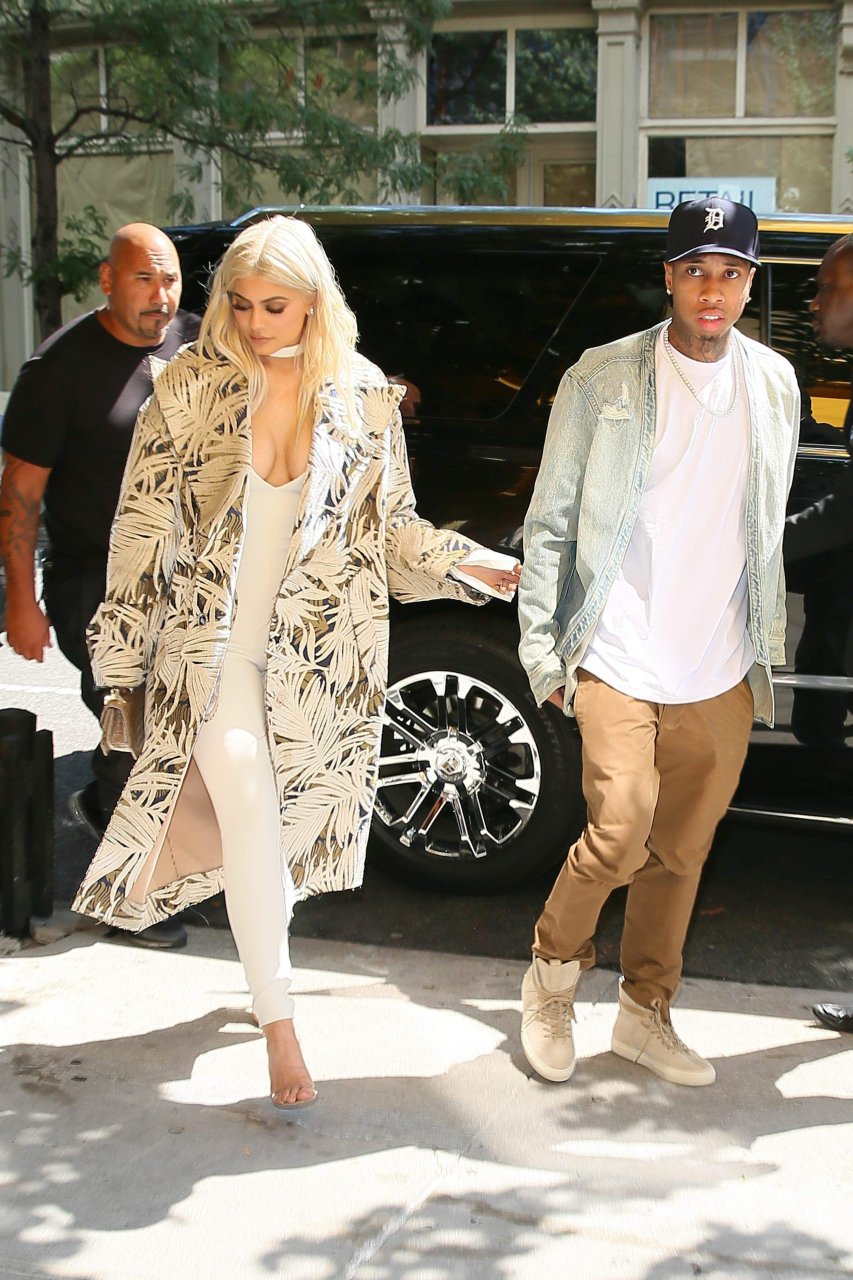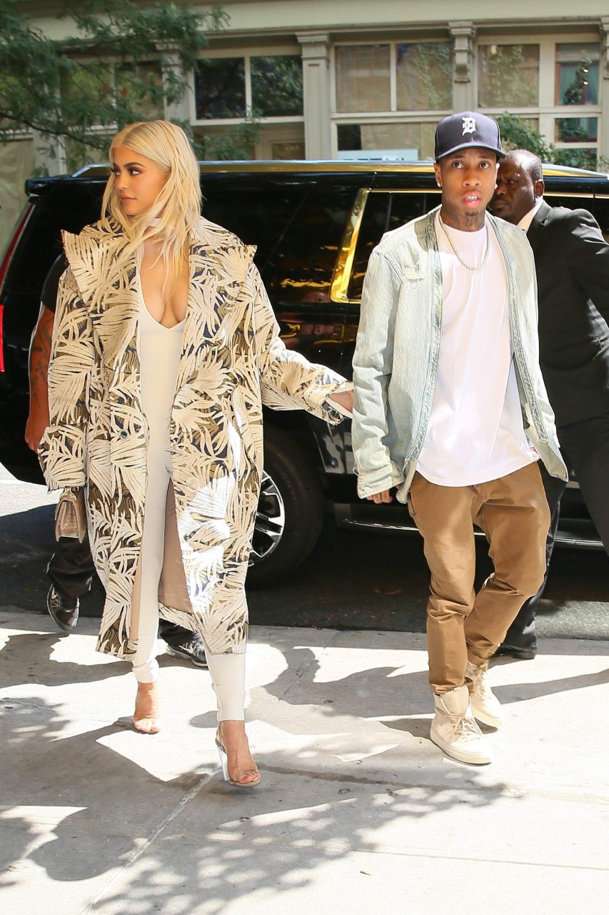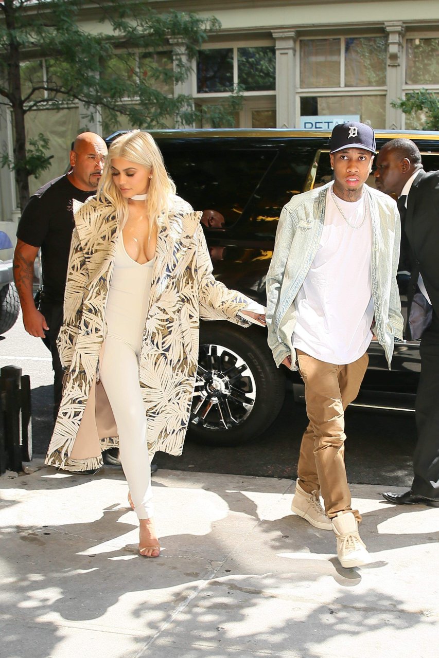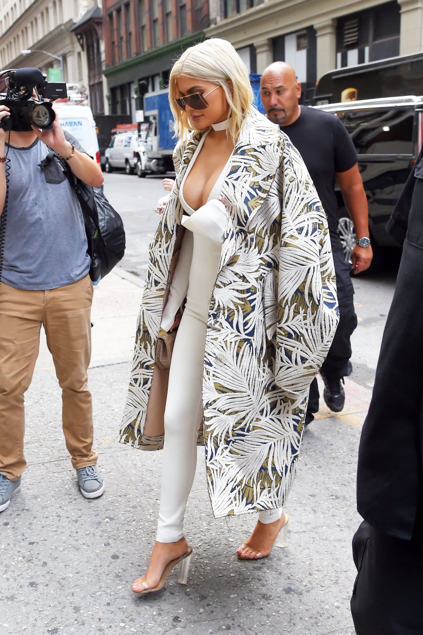 Kylie Jenner exibe um decote profundo e novo penteado em Nova York, 07/09/16. Kylie Jenner é uma personalidade americana de reality show, socialite, modelo e estilista de moda. Idade: 19 (10 de agosto de 1997).