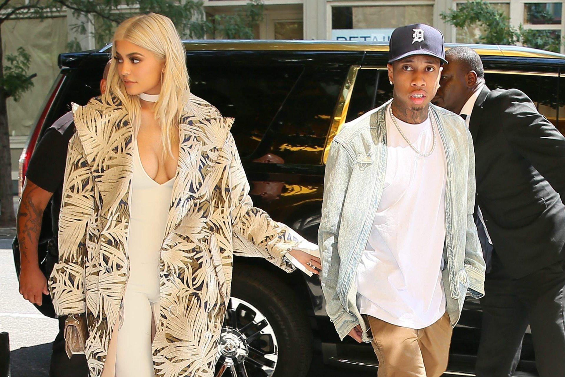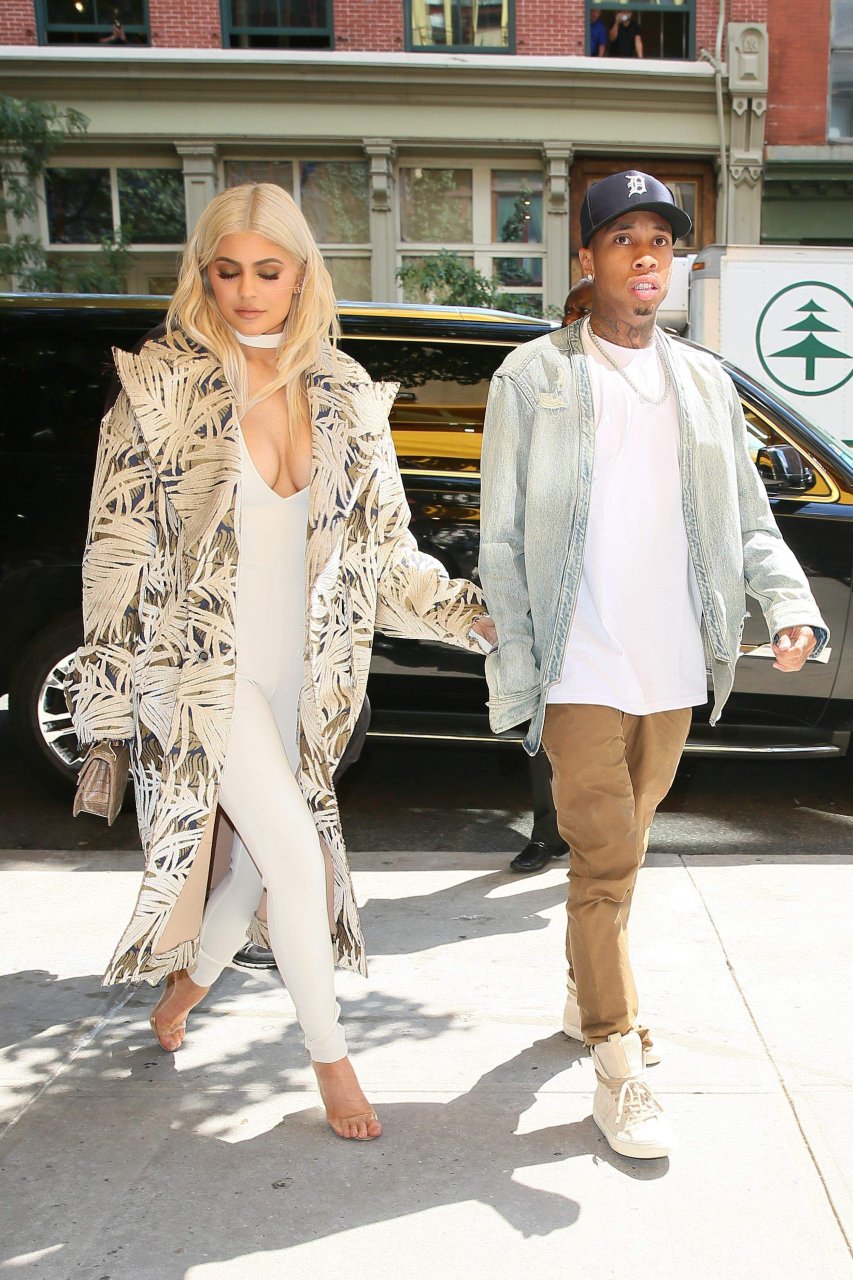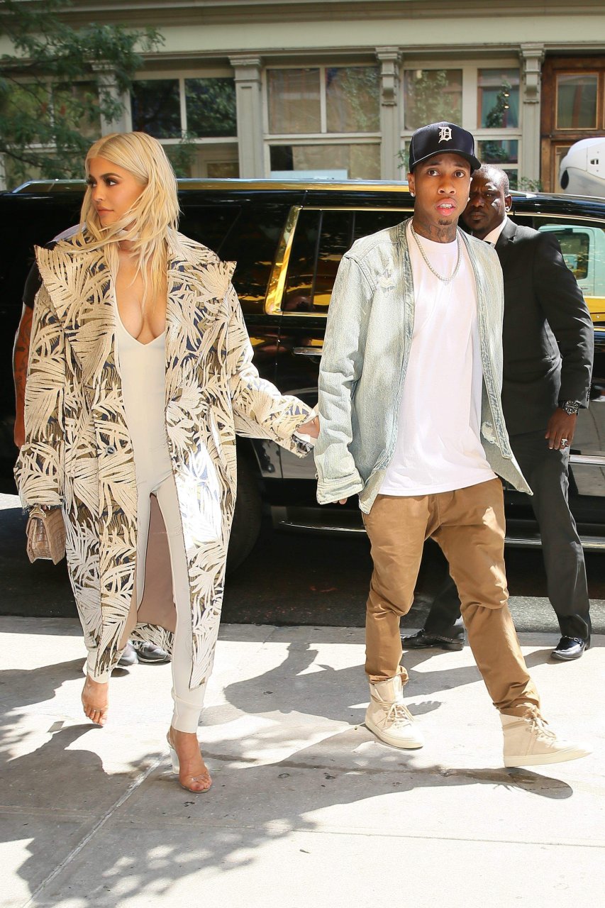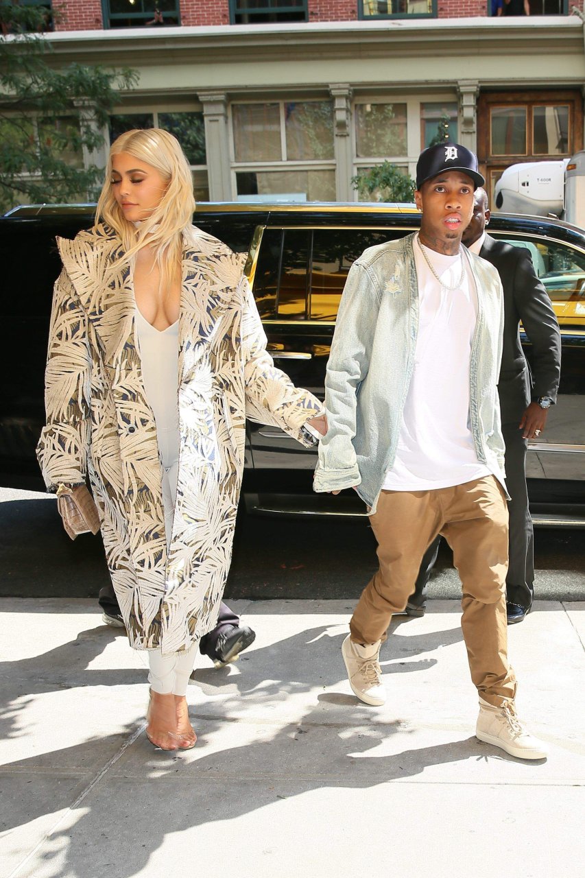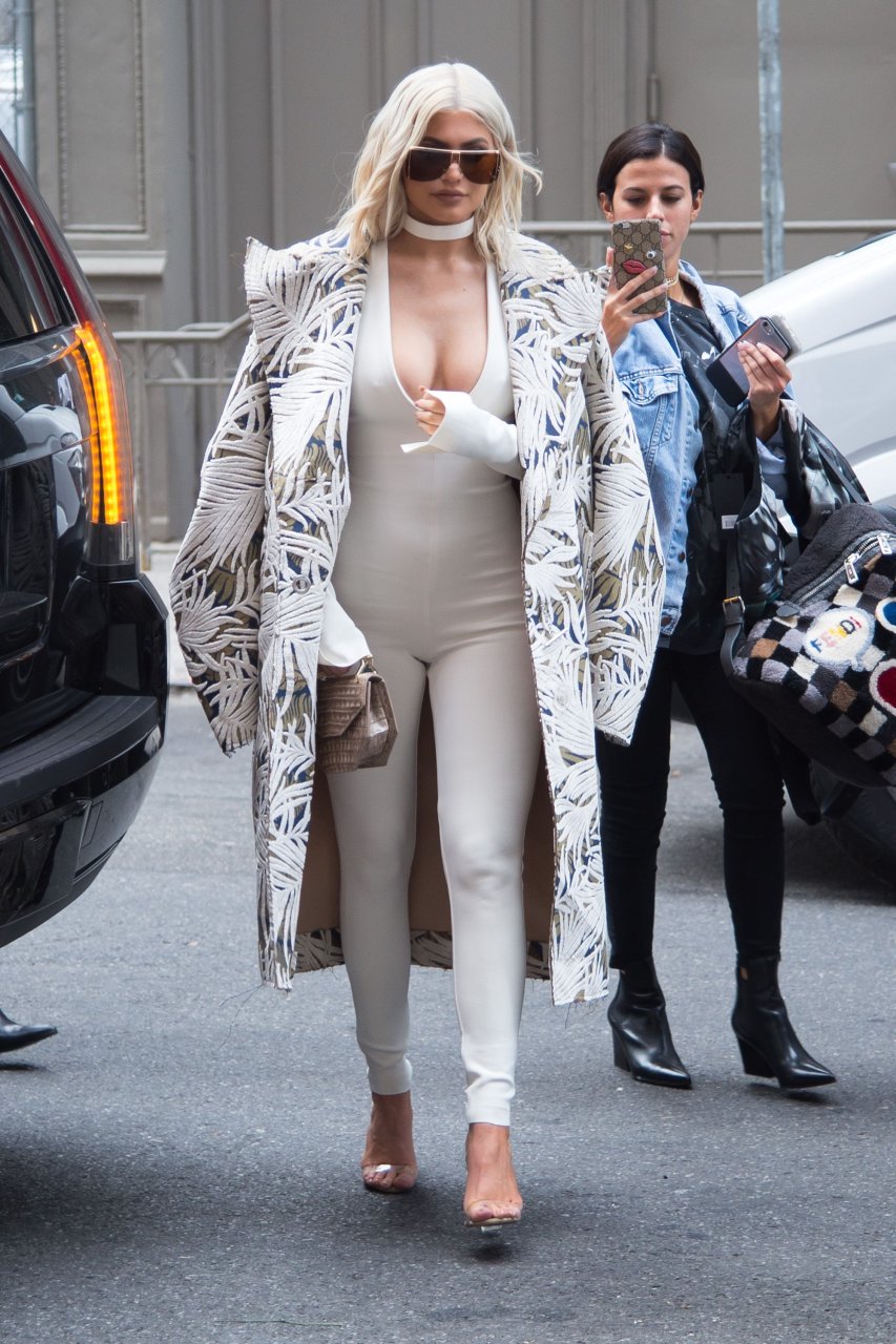 Kylie Jenner exibe um decote profundo e novo penteado em Nova York, 07/09/16. Kylie Jenner é uma personalidade americana de reality show, socialite, modelo e estilista de moda. Idade: 19 (10 de agosto de 1997).