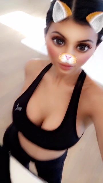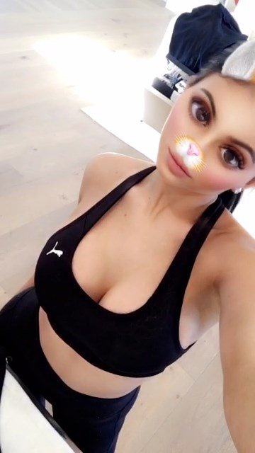Kylie Jenner tira selfies com top preto da Puma no Snapchat, 18/12/2016. Kylie Jenner é uma personalidade de reality show (Keeping Up with the Kardashians), modelo, socialite e designer de Los Angeles. Idade: 19 (10 de agosto de 1997).