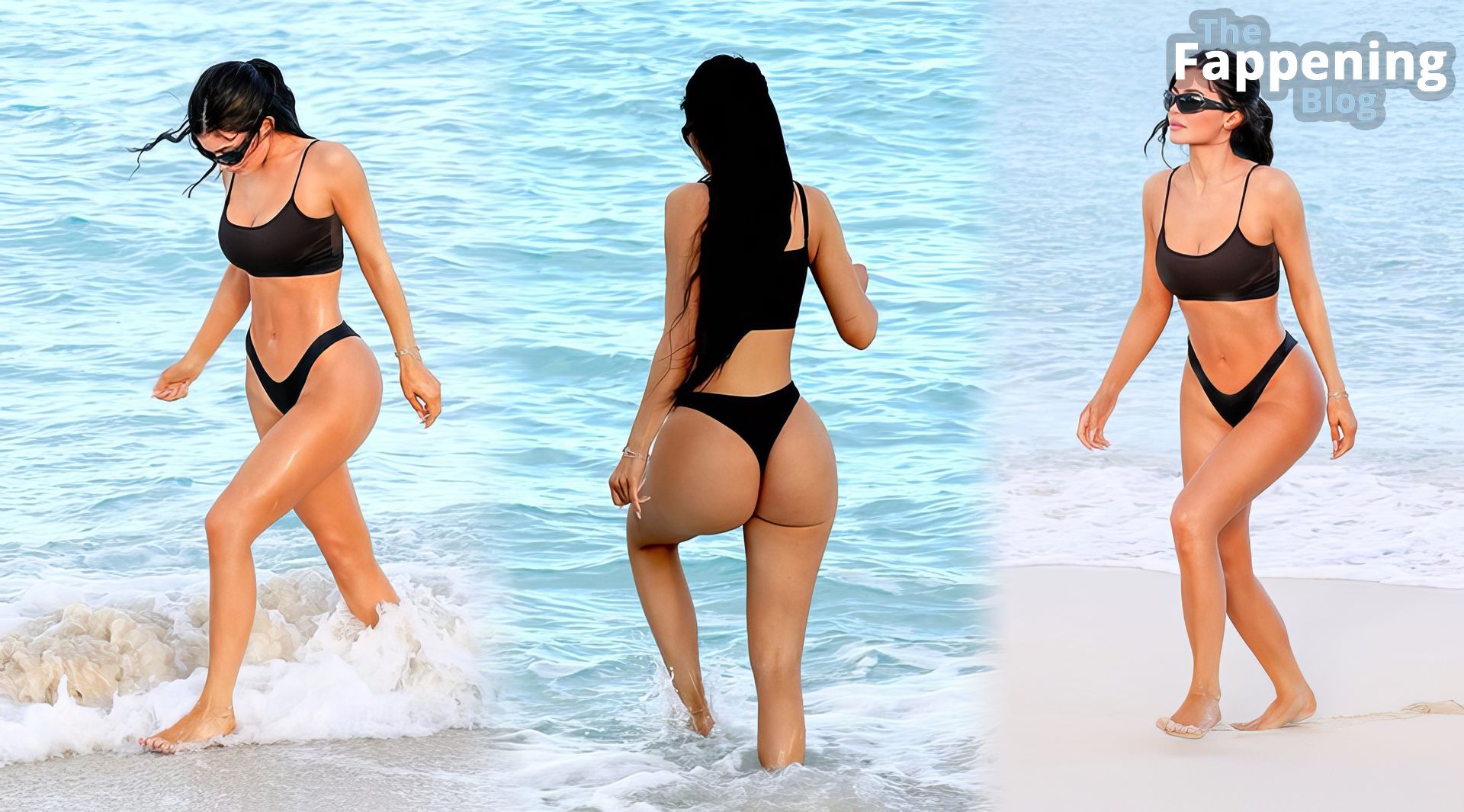 Kylie Jenner exibe seu corpo deslumbrante e bumbum sexy usando biquíni fio dental na praia em Turks e Caicos.
