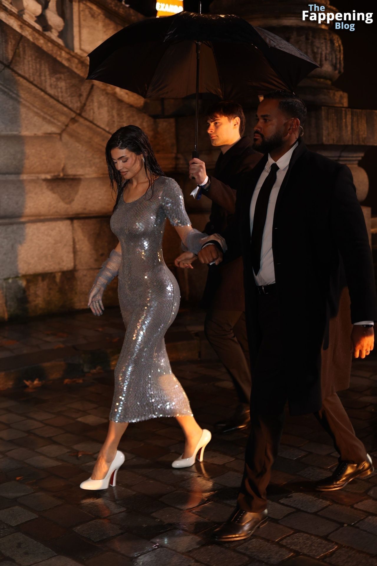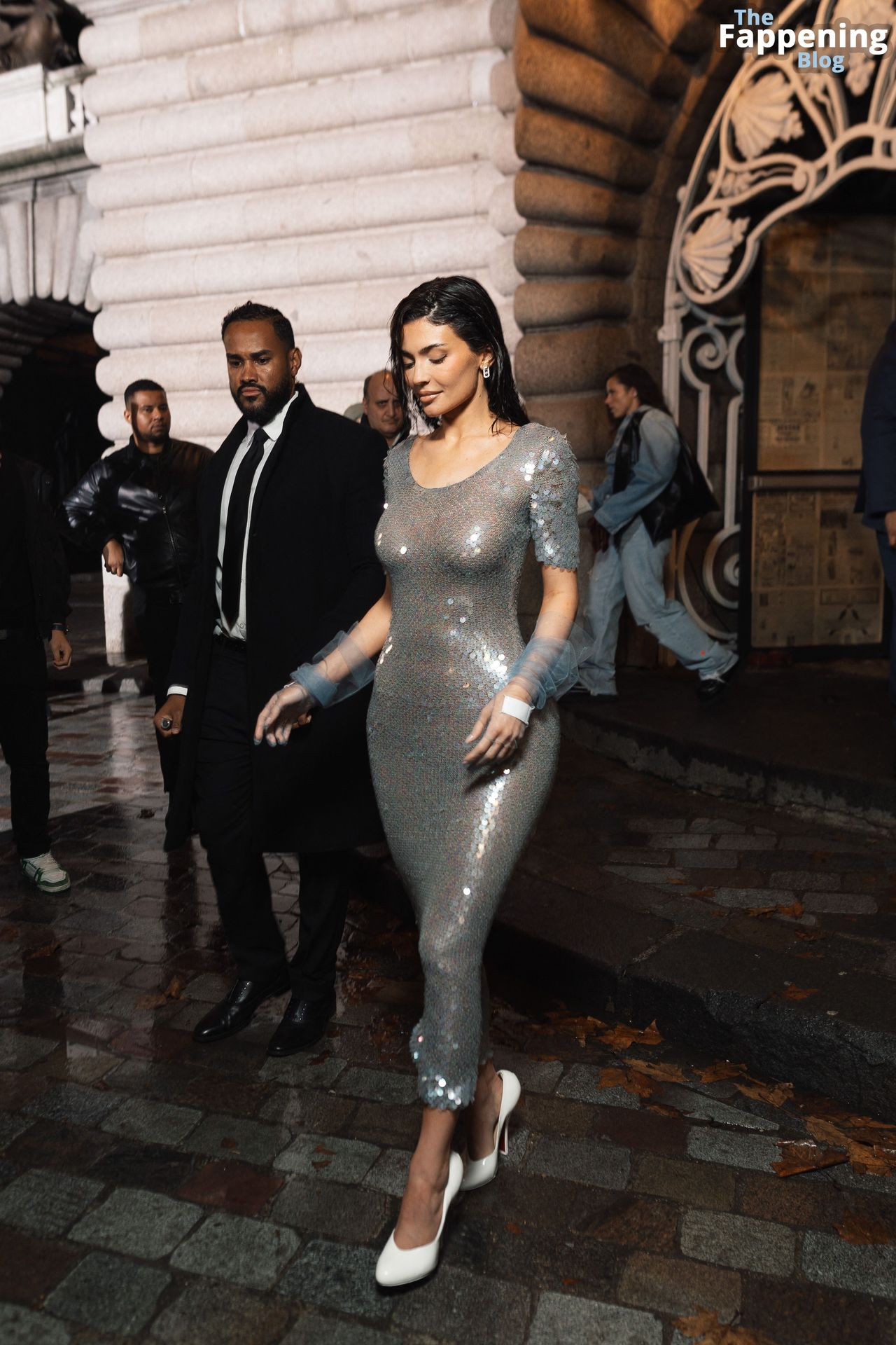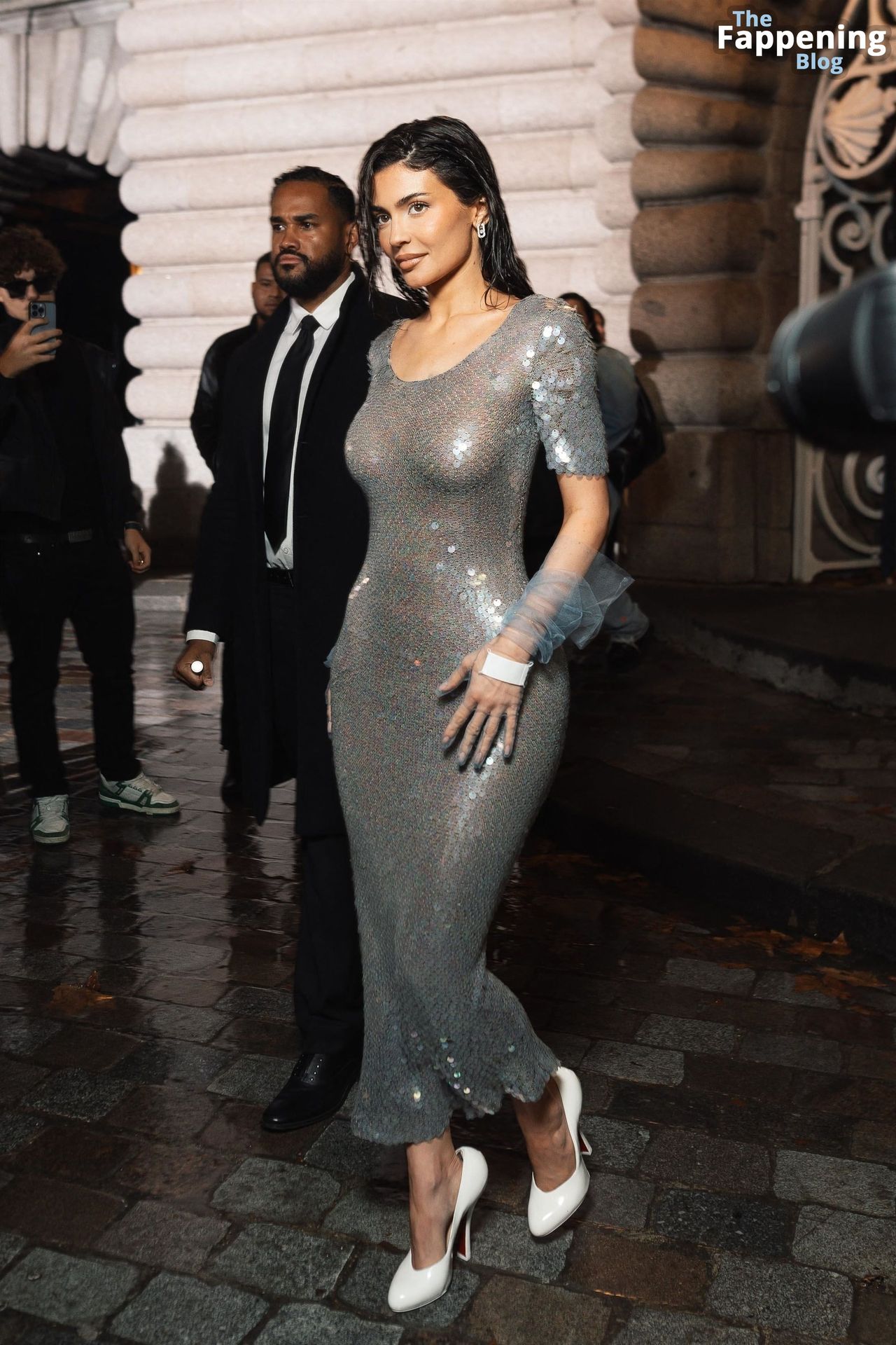 Kylie Jenner arrasa com um vestido prateado da Maison Margiela, roubando os holofotes na Paris Fashion Week. Prepare-se para muito glamour enquanto ela exibe suas curvas! O clã Kardashian marca presença no evento em Paris em 25 de janeiro de 2024.