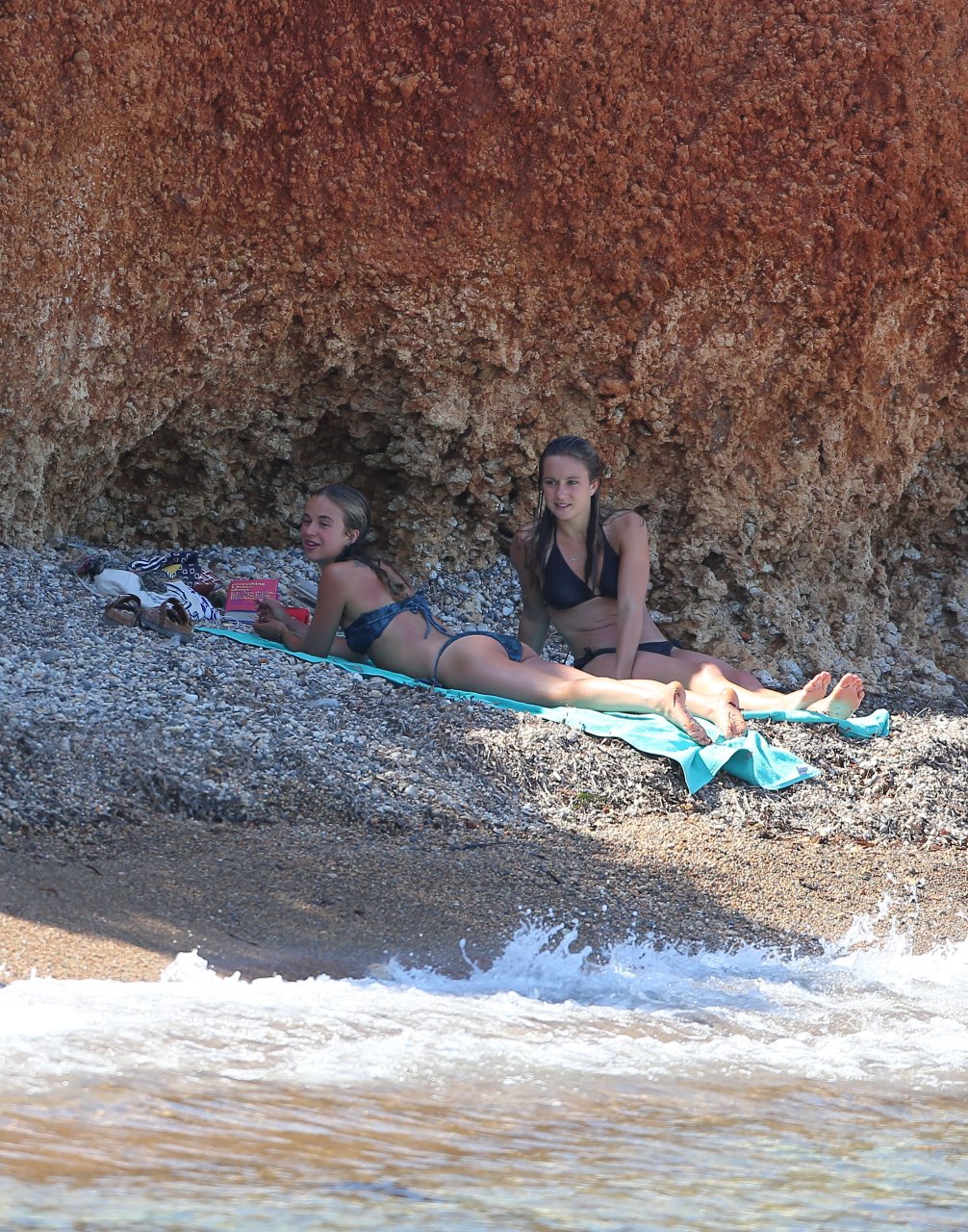 Modelo de moda e herdeira do trono Lady Amelia Windsor foi fotografada com uma leitura de férias “Tudo o que sei sobre o amor,” e uma amiga em uma praia em Ibiza, 28/07/2018.
