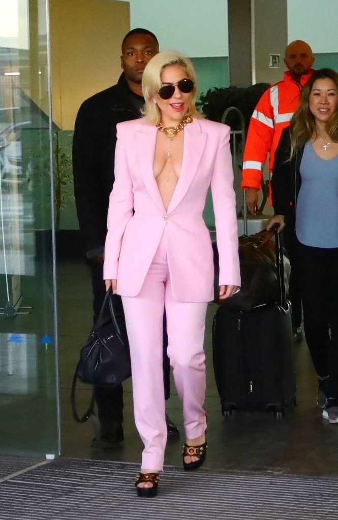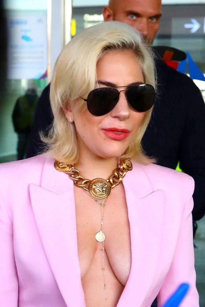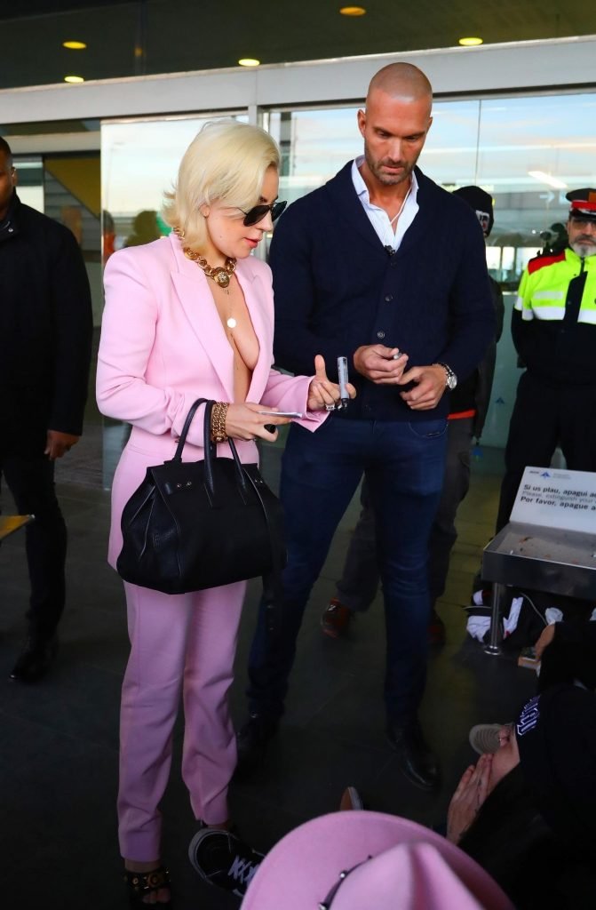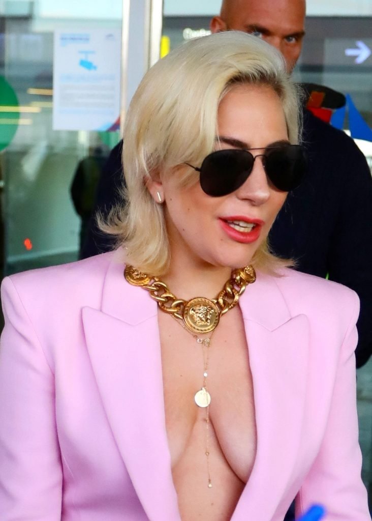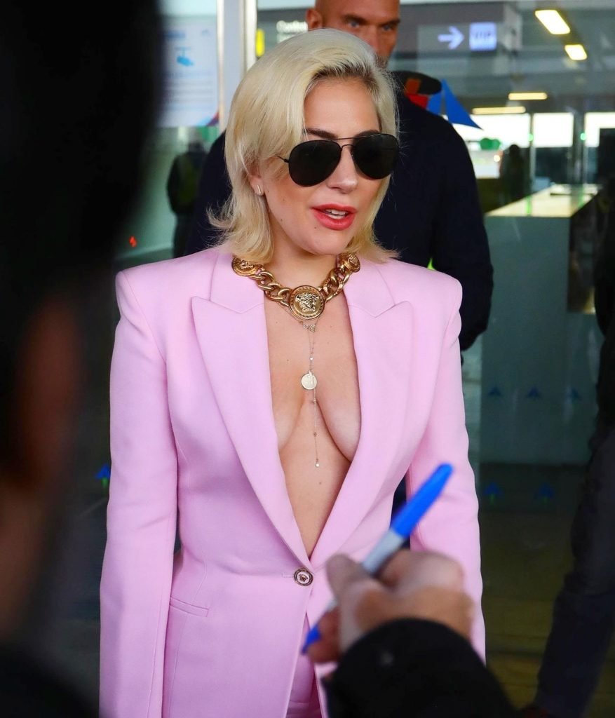 Lady Gaga sem sutiã chega ao Aeroporto Barcelona-El Prat em Barcelona, Espanha, 01/11/2018. Stefani Joanne Angelina Germanotta é cantora, compositora e atriz. Idade: 31 anos.