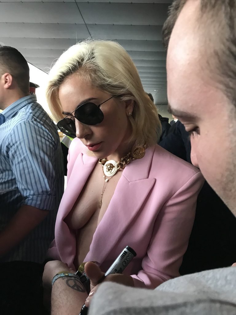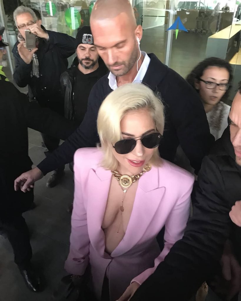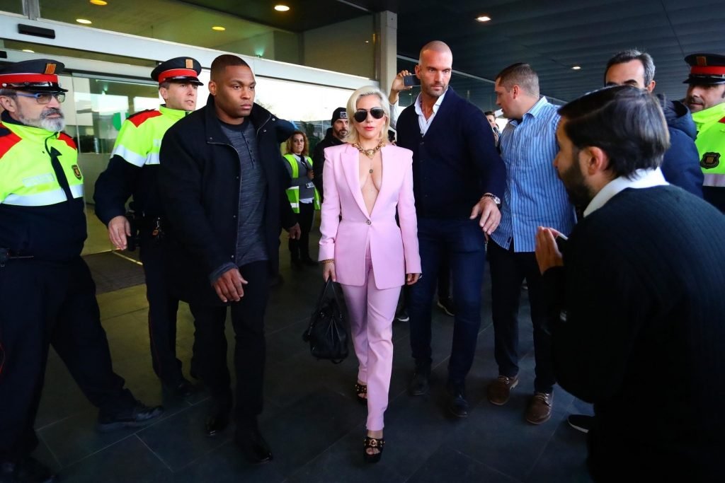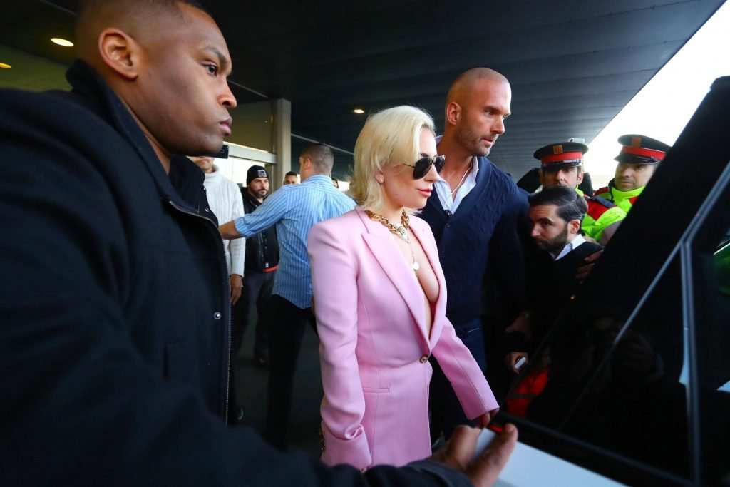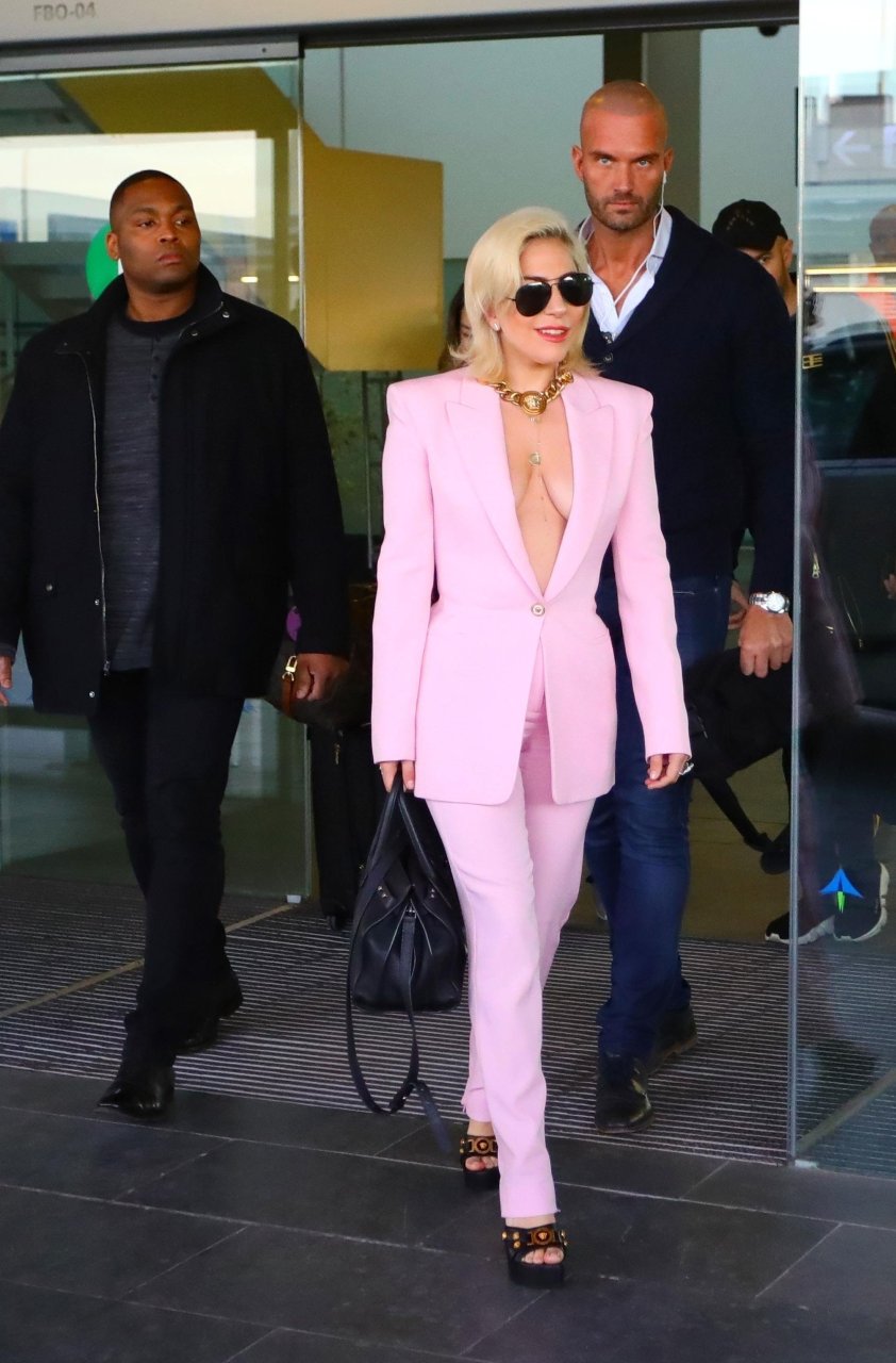 Lady Gaga sem sutiã chega ao Aeroporto Barcelona-El Prat em Barcelona, Espanha, 01/11/2018. Stefani Joanne Angelina Germanotta é cantora, compositora e atriz. Idade: 31 anos.
