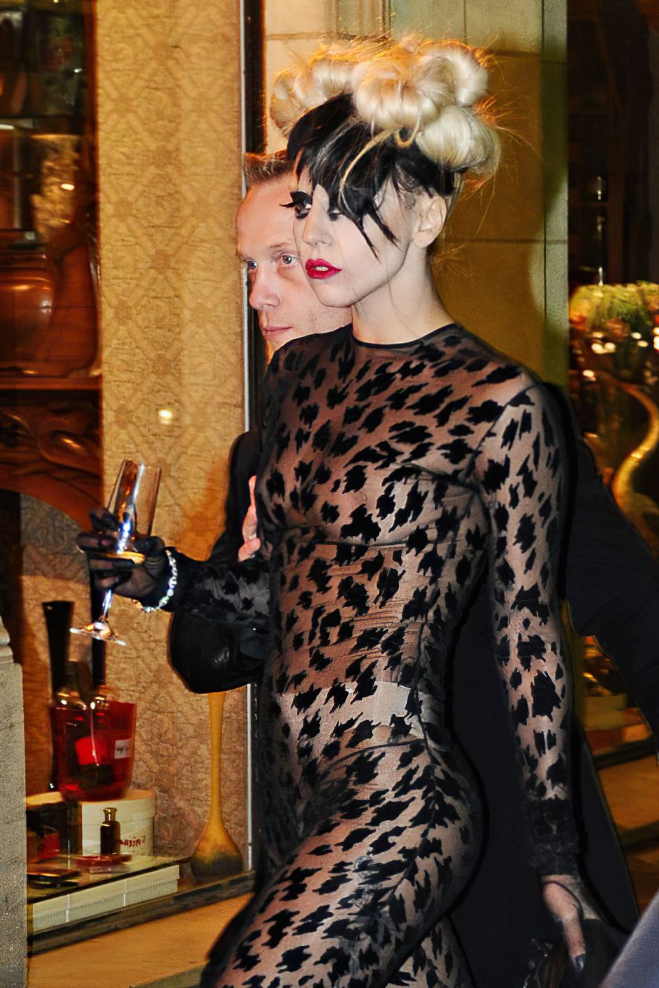 Singer Lady Gaga was seen in a see-through outfit while arriving/leaving Maxim restaurant in Paris, 03/02/2011.