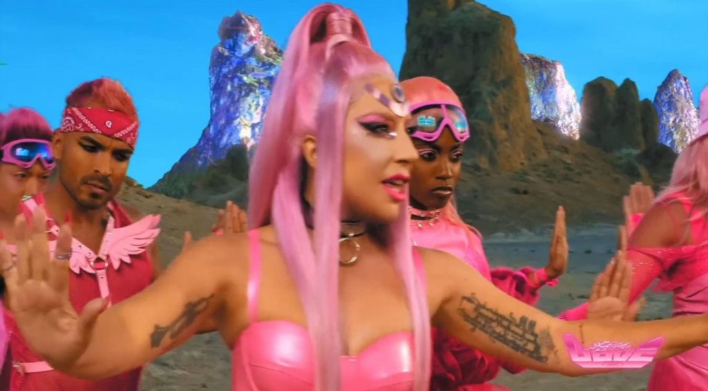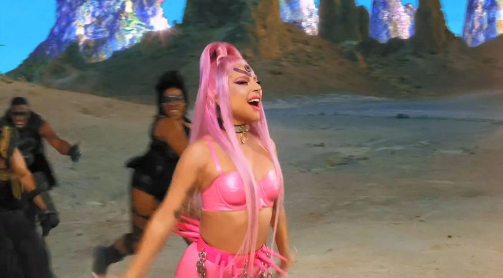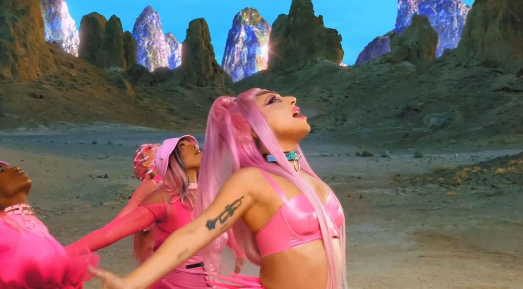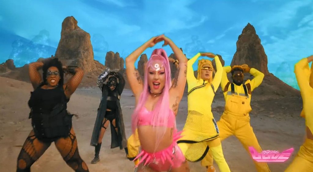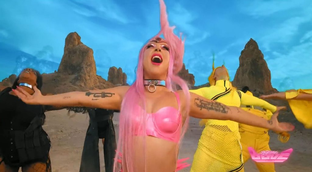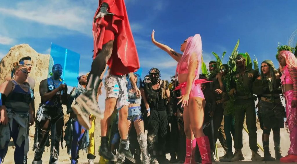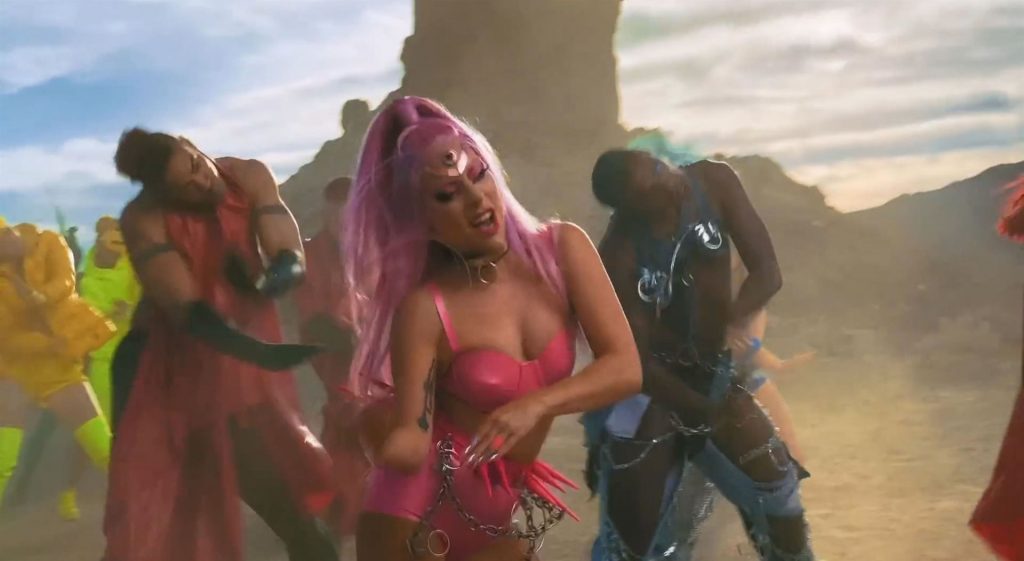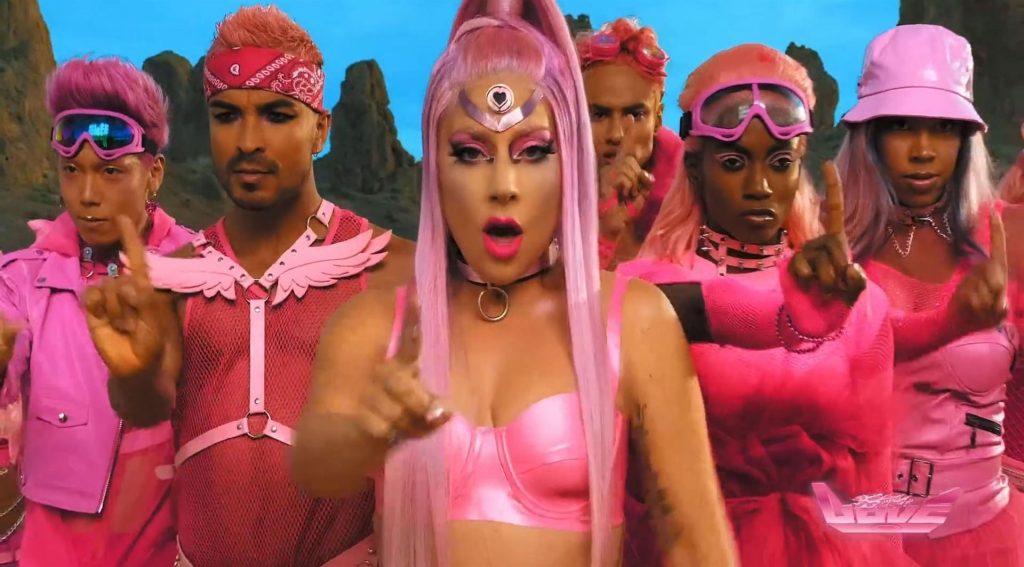 O vídeo mostra Gaga dançando em um deserto com um tema de outro mundo, com fantasias selvagens e um grupo de dançarinos de apoio enquanto ela tenta unir duas tribos em guerra. Para seu primeiro visual, Gaga exibe sua figura incrível com um sutiã de látex rosa choque e calças de cintura alta, com um cinto de cintura com spikes. A atriz de Nasce Uma Estrela completou a fantasia chamativa com uma longa peruca rosa estilo Ariana Grande, um colar prateado e tatuagens tribais metálicas. Quando a batida começou, Gaga de cabelo rosa liderou seus dançarinos, que também estavam todos vestidos de rosa choque enquanto executavam movimentos coreografados. Conforme a música avança para o refrão, Gaga e companhia trocam de roupas, com a estrela em outro tom de rosa e usando um visor completo nos olhos, enquanto seus acompanhantes estão vestidos de preto. Para seu terceiro visual, Gaga veste um biquíni metálico roxo e sapatos plataforma, que destacam sua silhueta esbelta.
