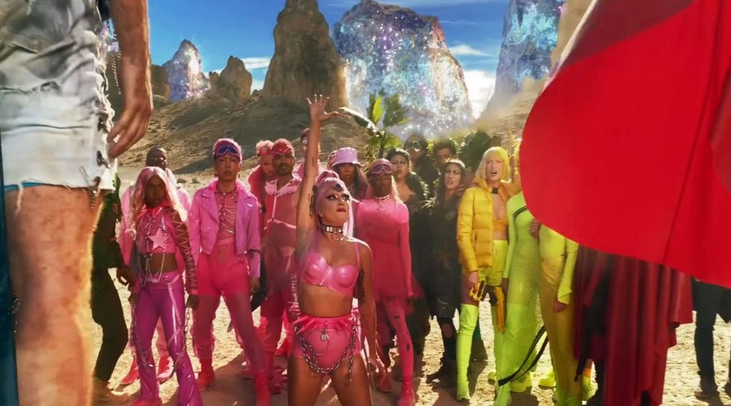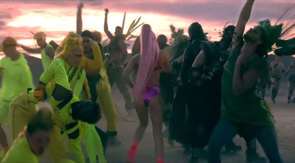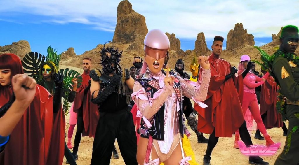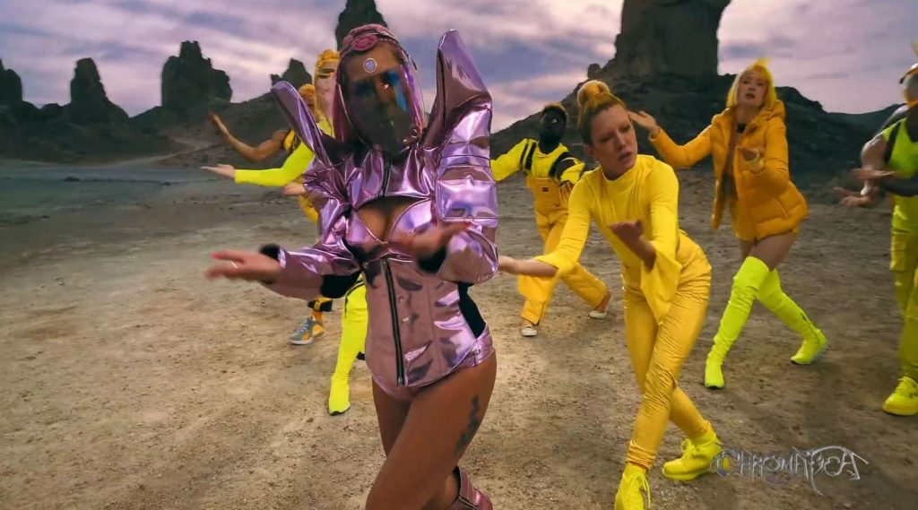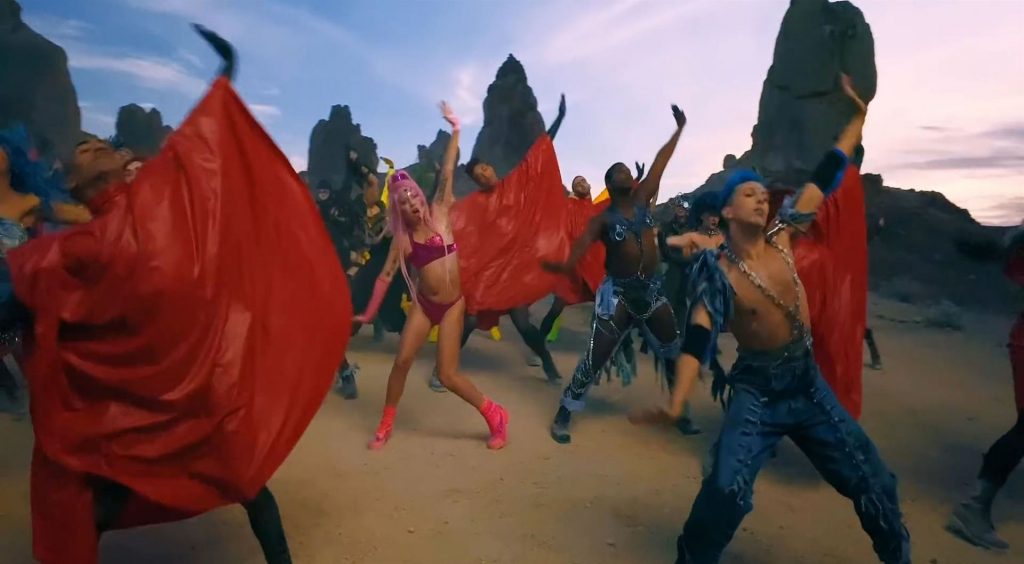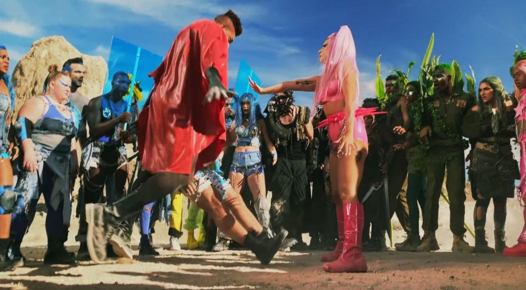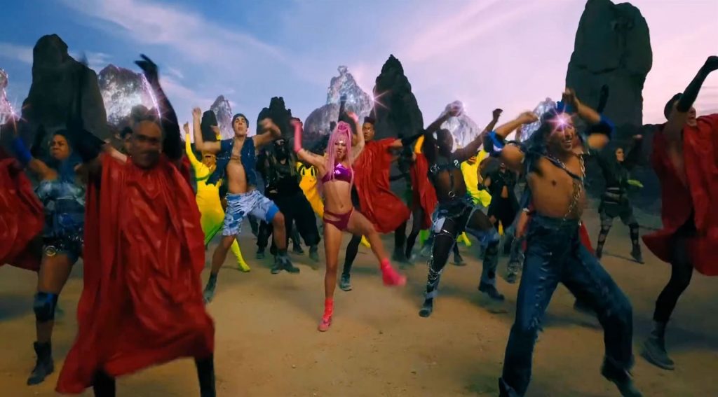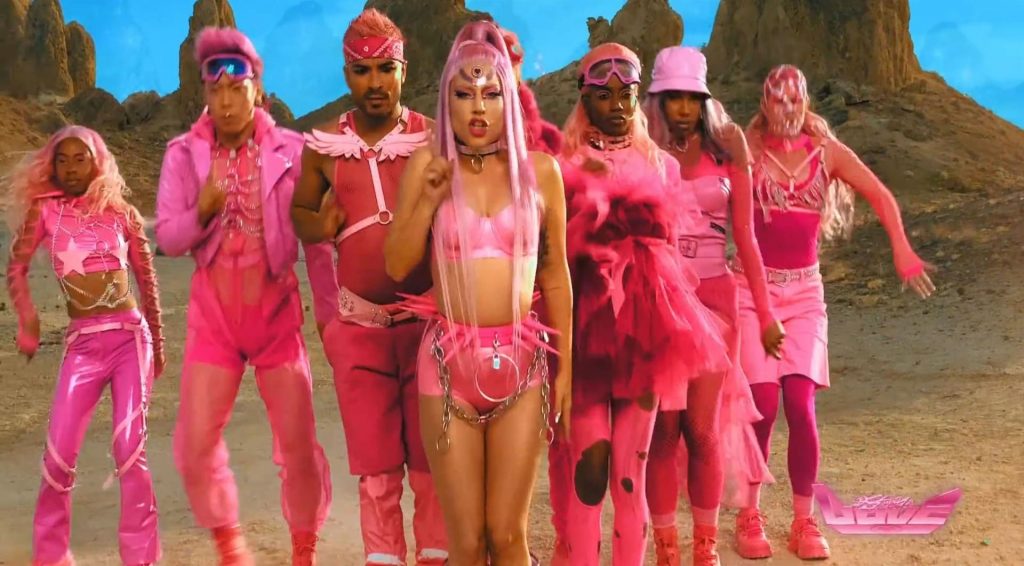 O vídeo mostra Gaga dançando em um deserto com um tema de outro mundo, com fantasias selvagens e um grupo de dançarinos de apoio enquanto ela tenta unir duas tribos em guerra. Para seu primeiro visual, Gaga exibe sua figura incrível com um sutiã de látex rosa choque e calças de cintura alta, com um cinto de cintura com spikes. A atriz de Nasce Uma Estrela completou a fantasia chamativa com uma longa peruca rosa estilo Ariana Grande, um colar prateado e tatuagens tribais metálicas. Quando a batida começou, Gaga de cabelo rosa liderou seus dançarinos, que também estavam todos vestidos de rosa choque enquanto executavam movimentos coreografados. Conforme a música avança para o refrão, Gaga e companhia trocam de roupas, com a estrela em outro tom de rosa e usando um visor completo nos olhos, enquanto seus acompanhantes estão vestidos de preto. Para seu terceiro visual, Gaga veste um biquíni metálico roxo e sapatos plataforma, que destacam sua silhueta esbelta.