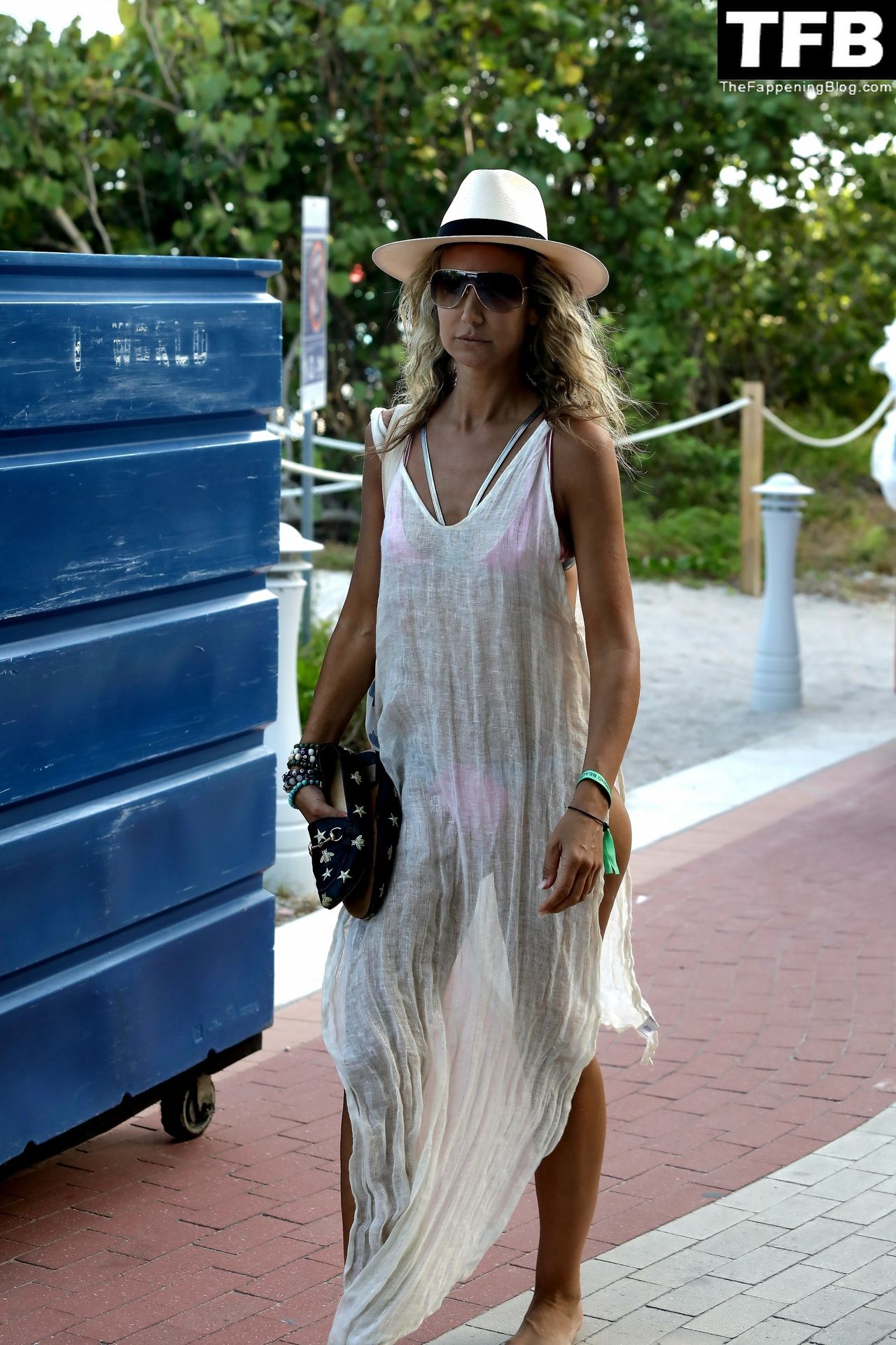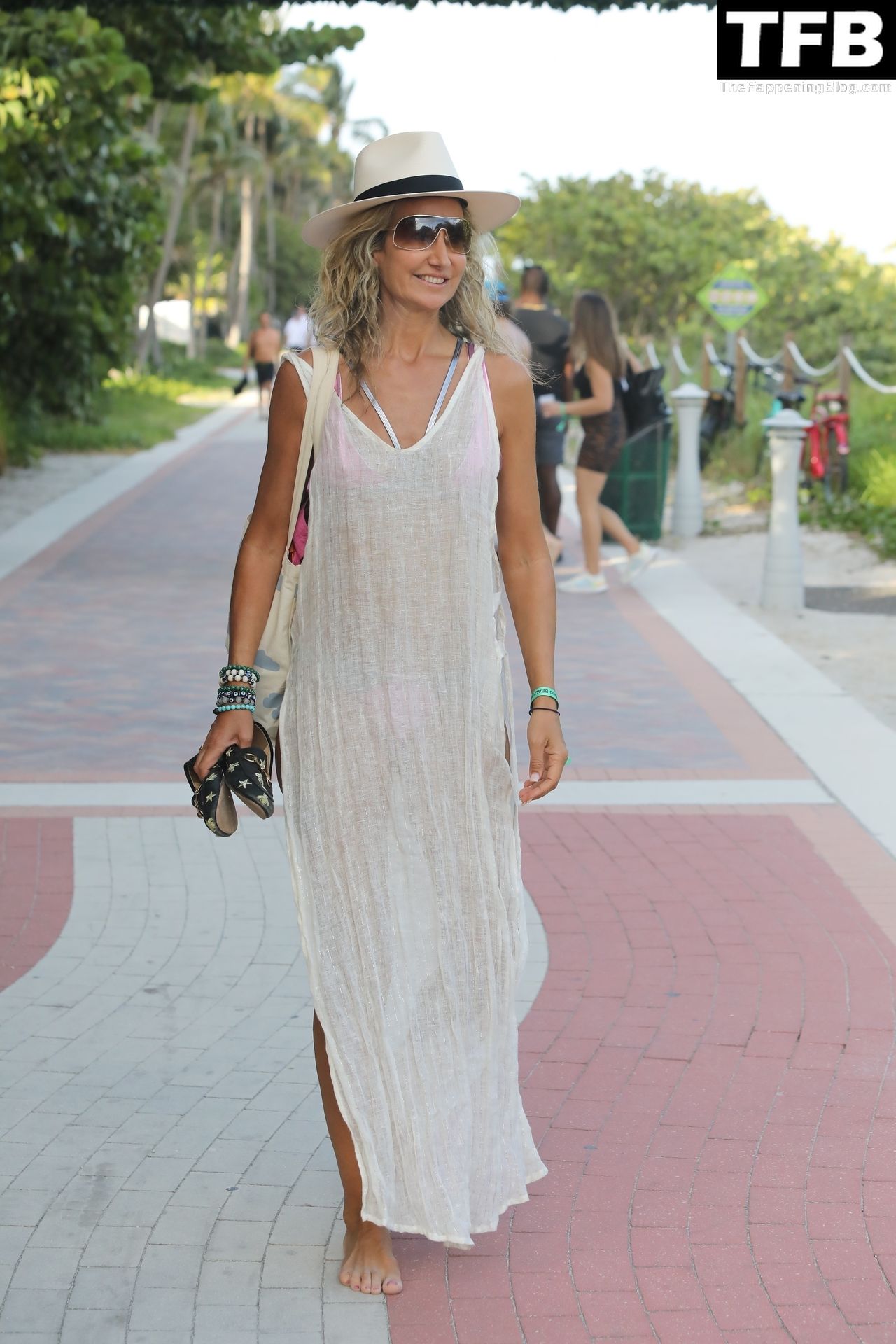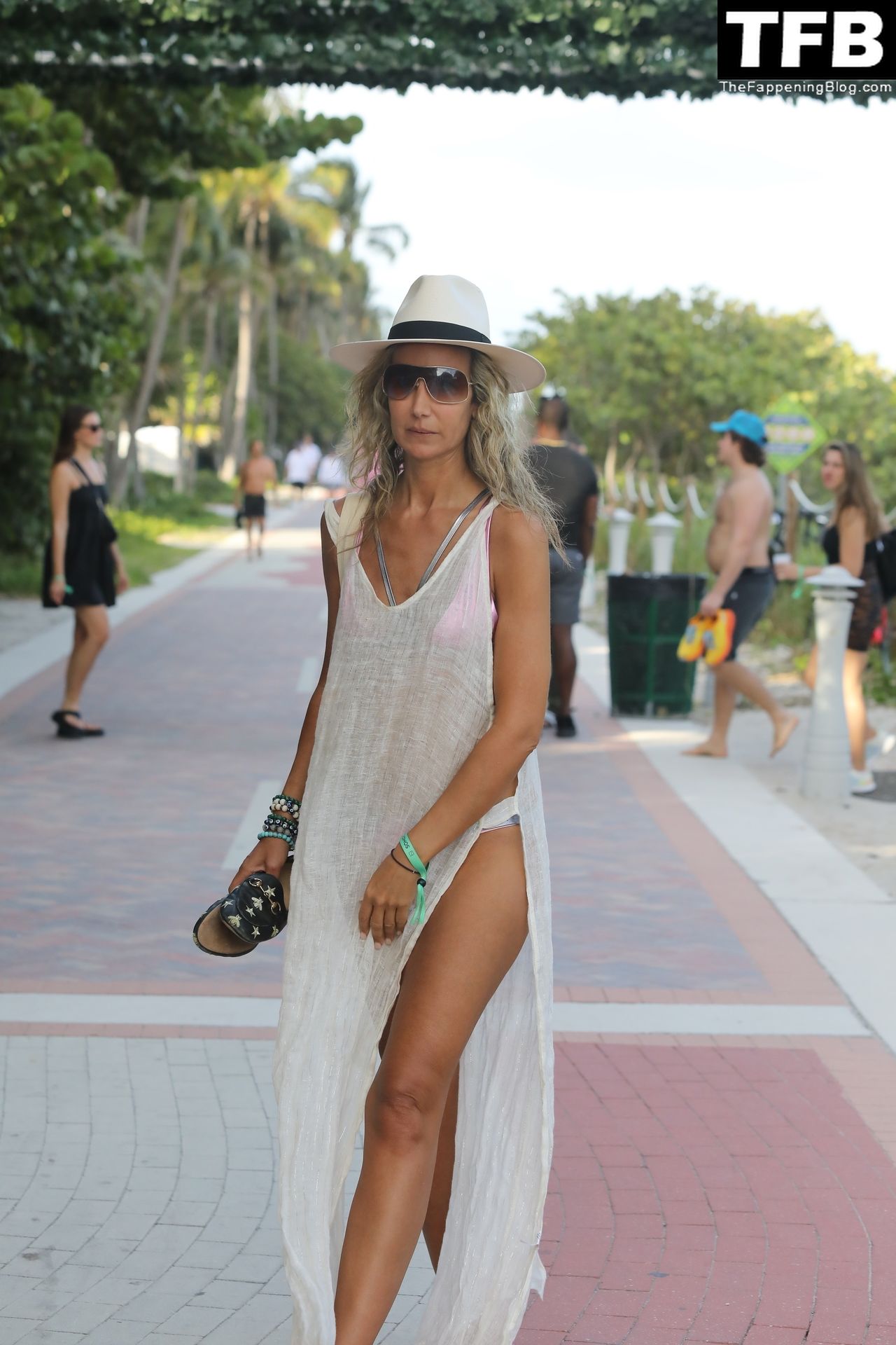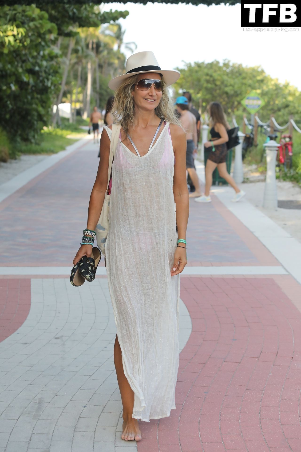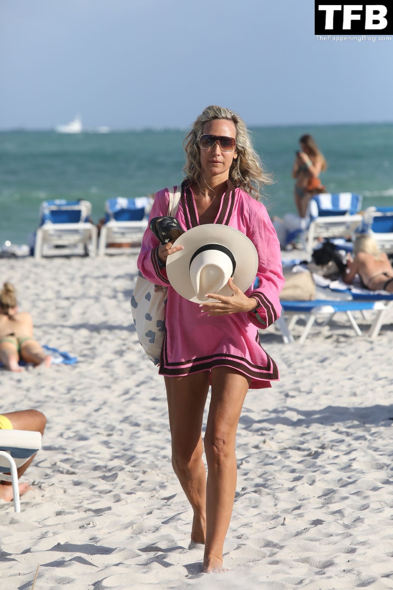 Lady Victoria Hervey está ótima de biquíni metálico ao curtir a praia em Miami, 12/03/2022.