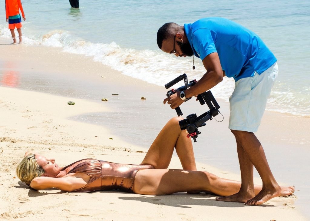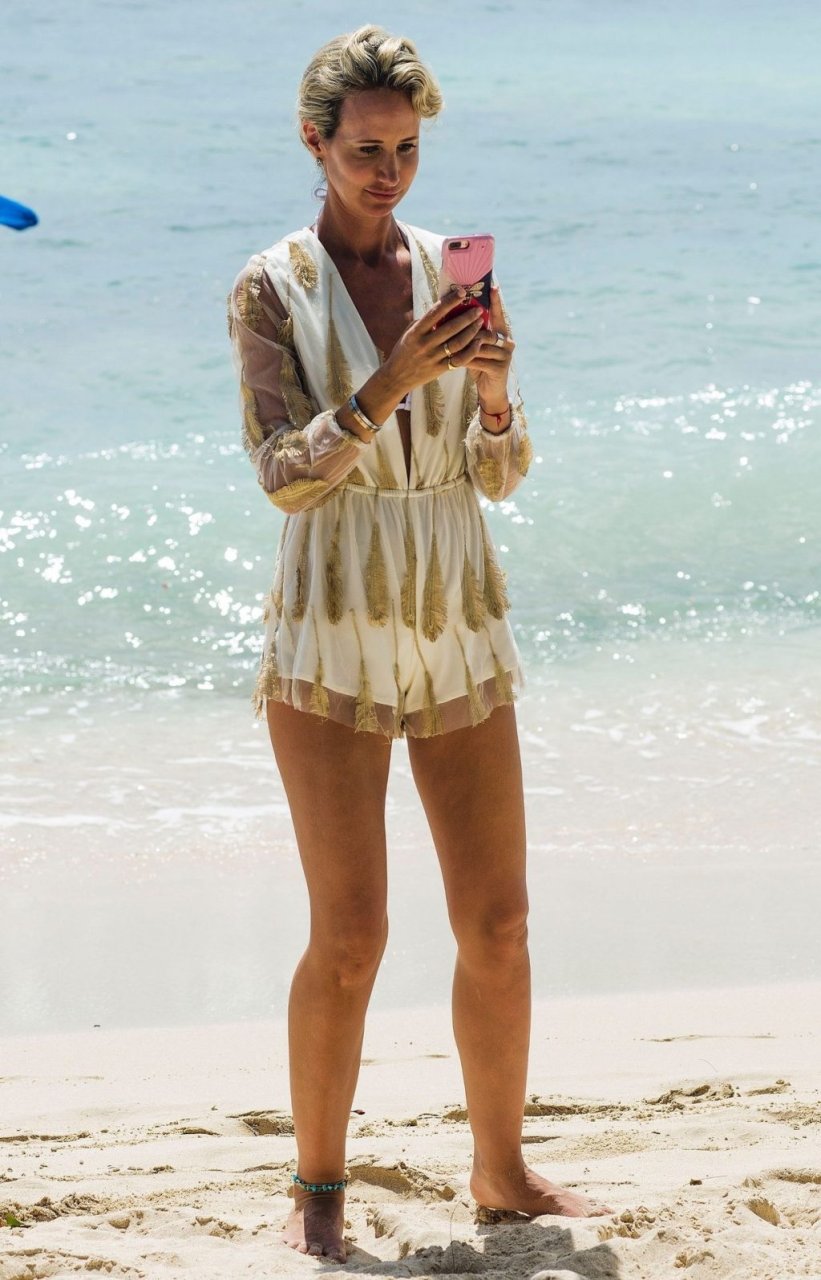 Lady Victoria Hervey foi fotografada usando um maiô de sua própria marca durante um ensaio fotográfico em Barbados, 23/04/2019.