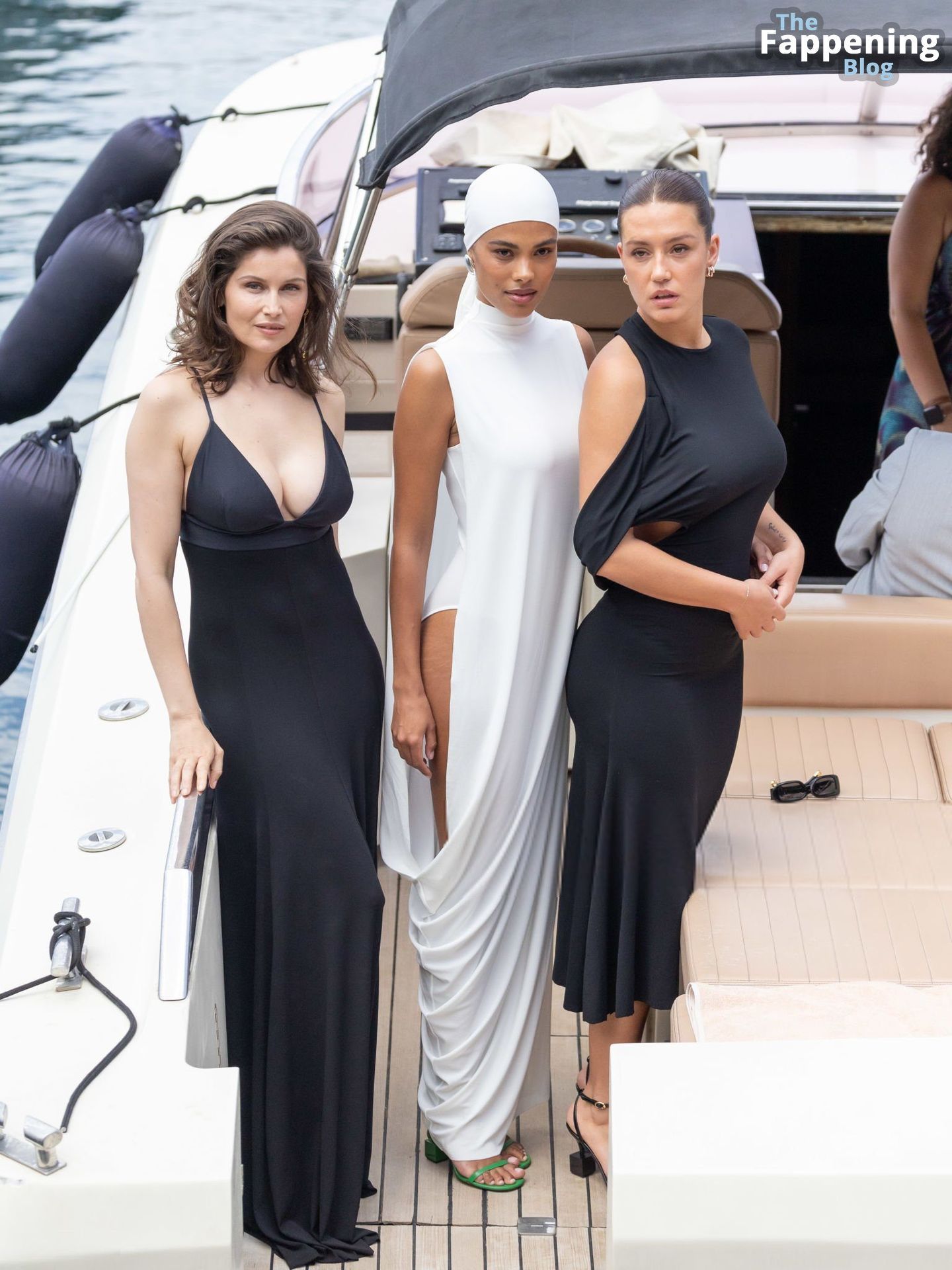 Laetitia Casta, Tina Kunakey e Adele Exarchopoulos estavam totalmente no clima fashion, vistas relaxando na Marina Grande em Capri, Itália, em 10 de junho de 2024, para curtir o Desfile da Coleção Cruise ‘La Casa’ da Jacquemus na Casa Malaparte.