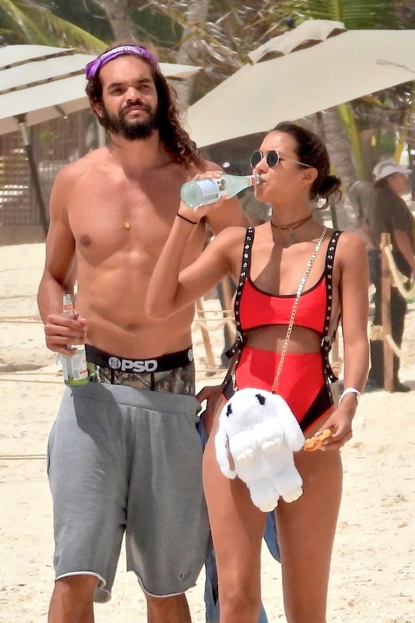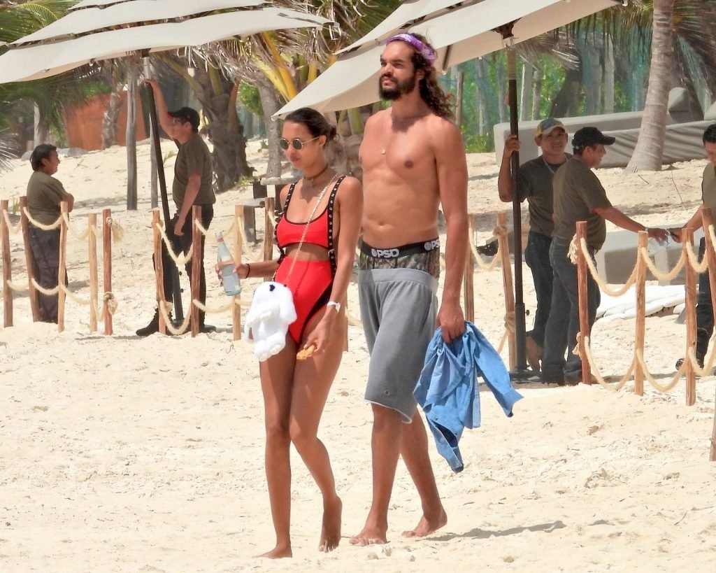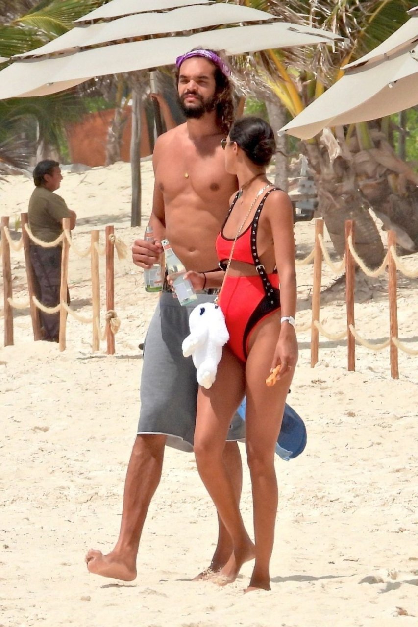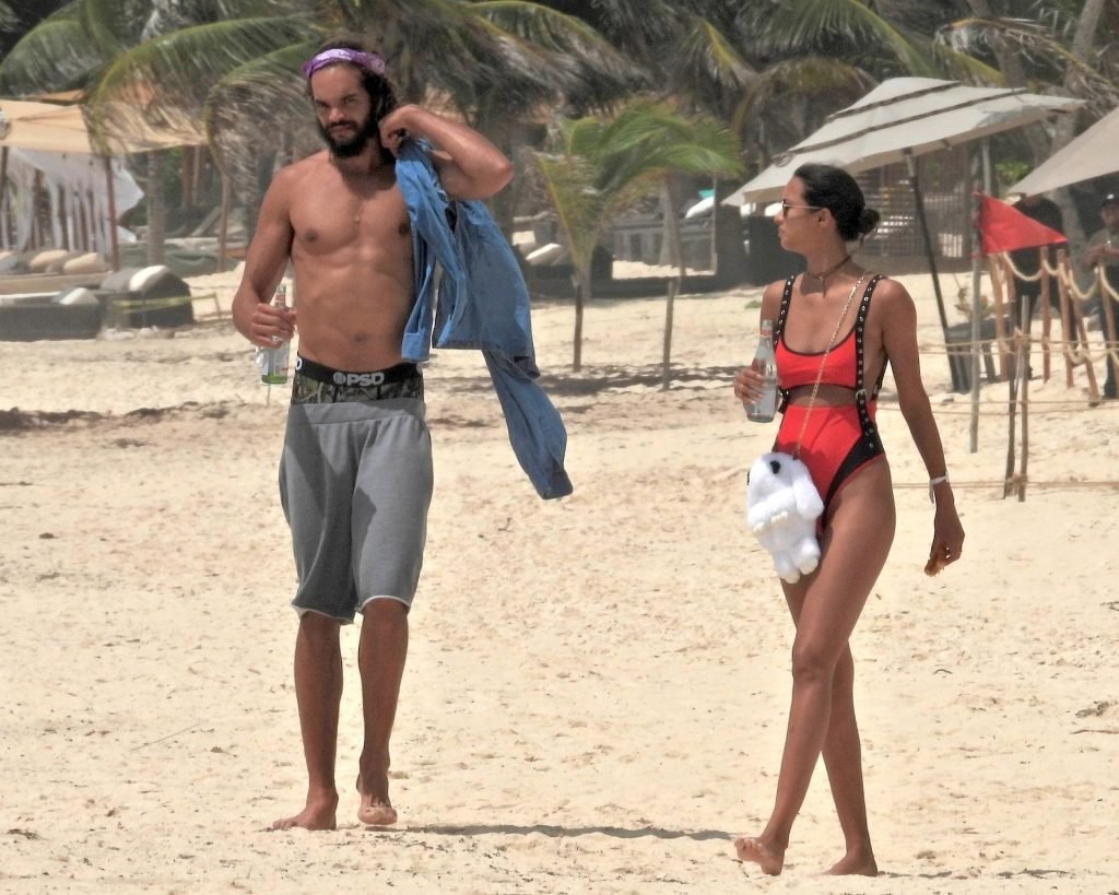 Modelo Lais Ribeiro e o jogador da NBA Joakim Noah foram vistos passeando nas areias de Tulum, México, após passarem a noite festejando na Casa Malca, a antiga casa do narcotraficante Pablo Escobar, 01/06/2019.