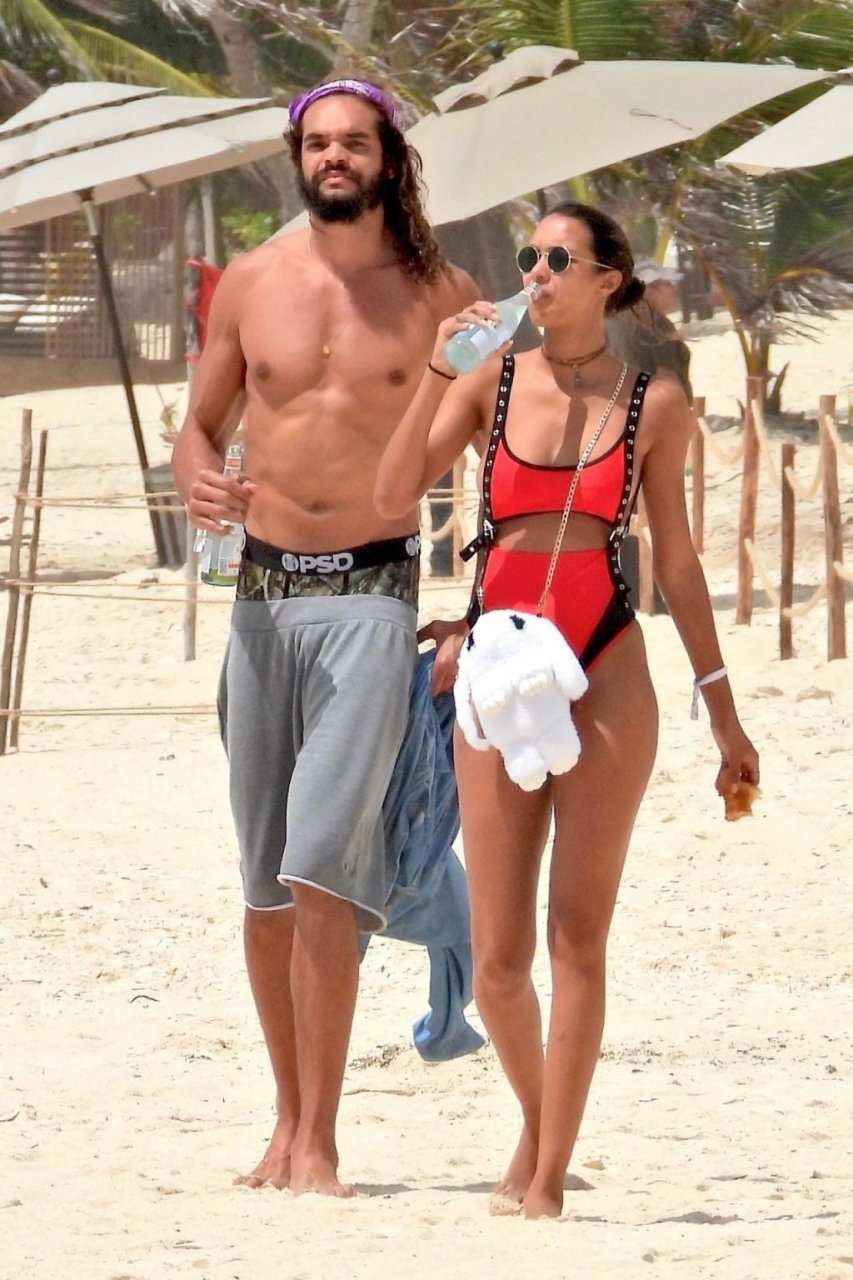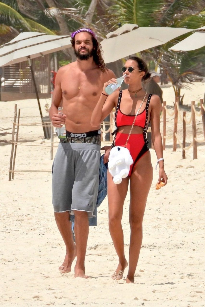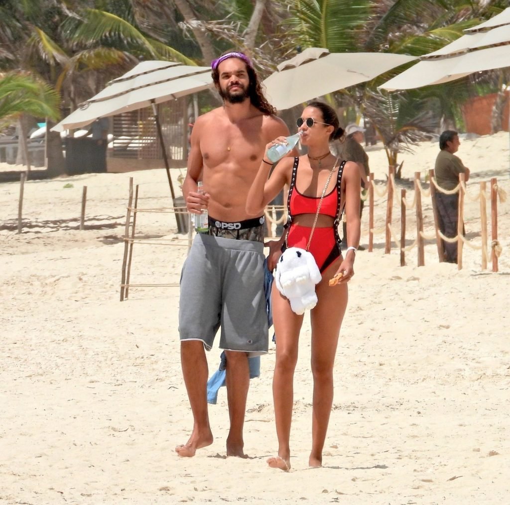 Modelo Lais Ribeiro e o jogador da NBA Joakim Noah foram vistos passeando nas areias de Tulum, México, após passarem a noite festejando na Casa Malca, a antiga casa do narcotraficante Pablo Escobar, 01/06/2019.