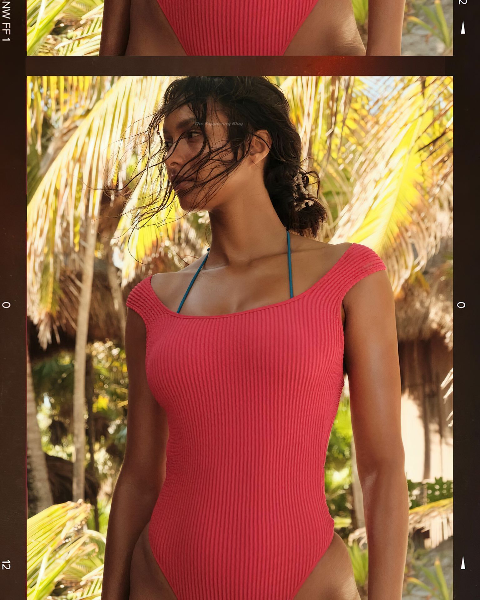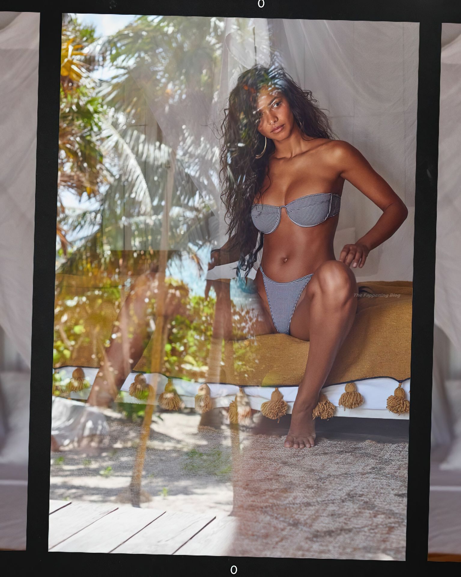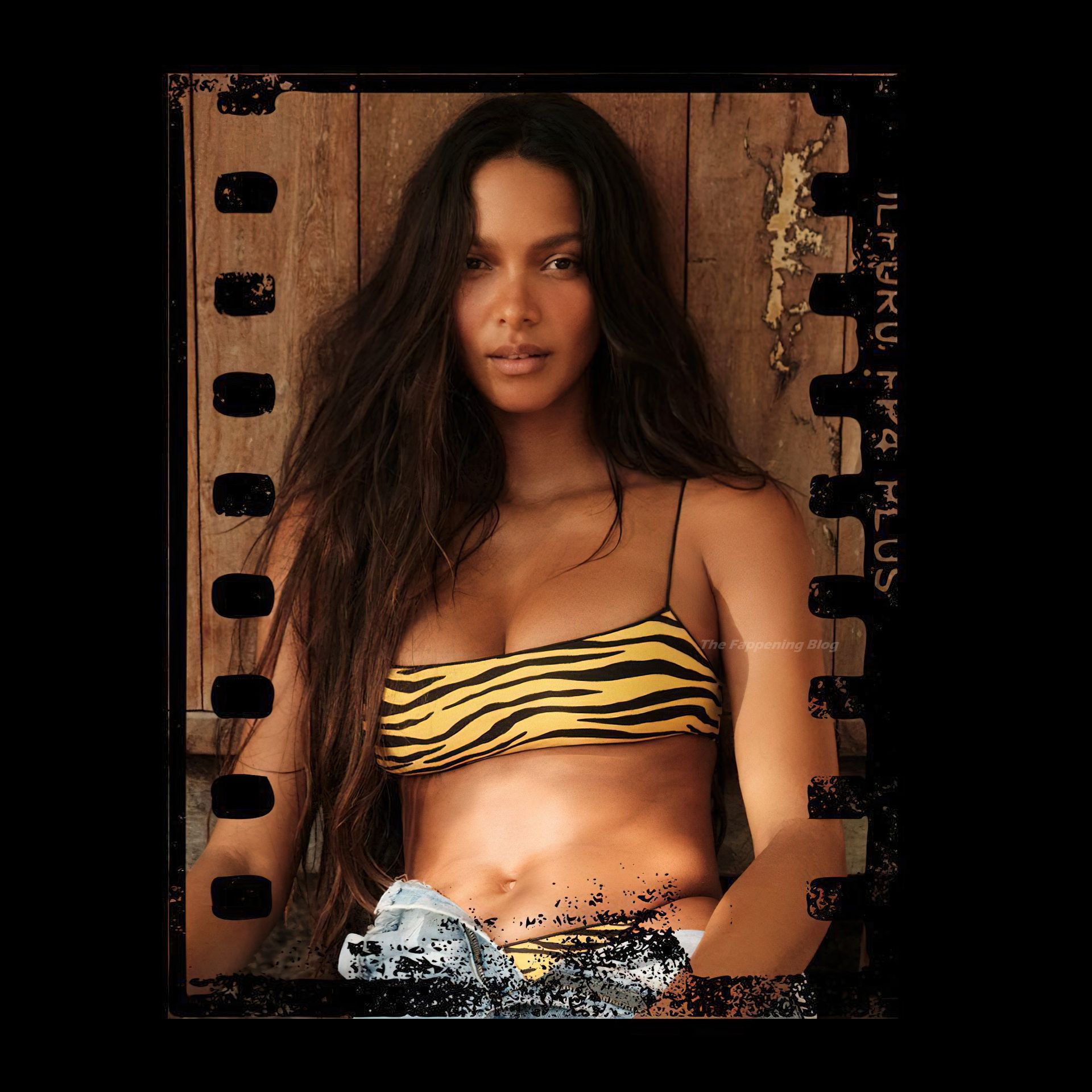 A top model brasileira Lais Ribeiro exibe seu corpo natural, promovendo roupas de banho da nova coleção Tropic C Verano Caliente (2021).