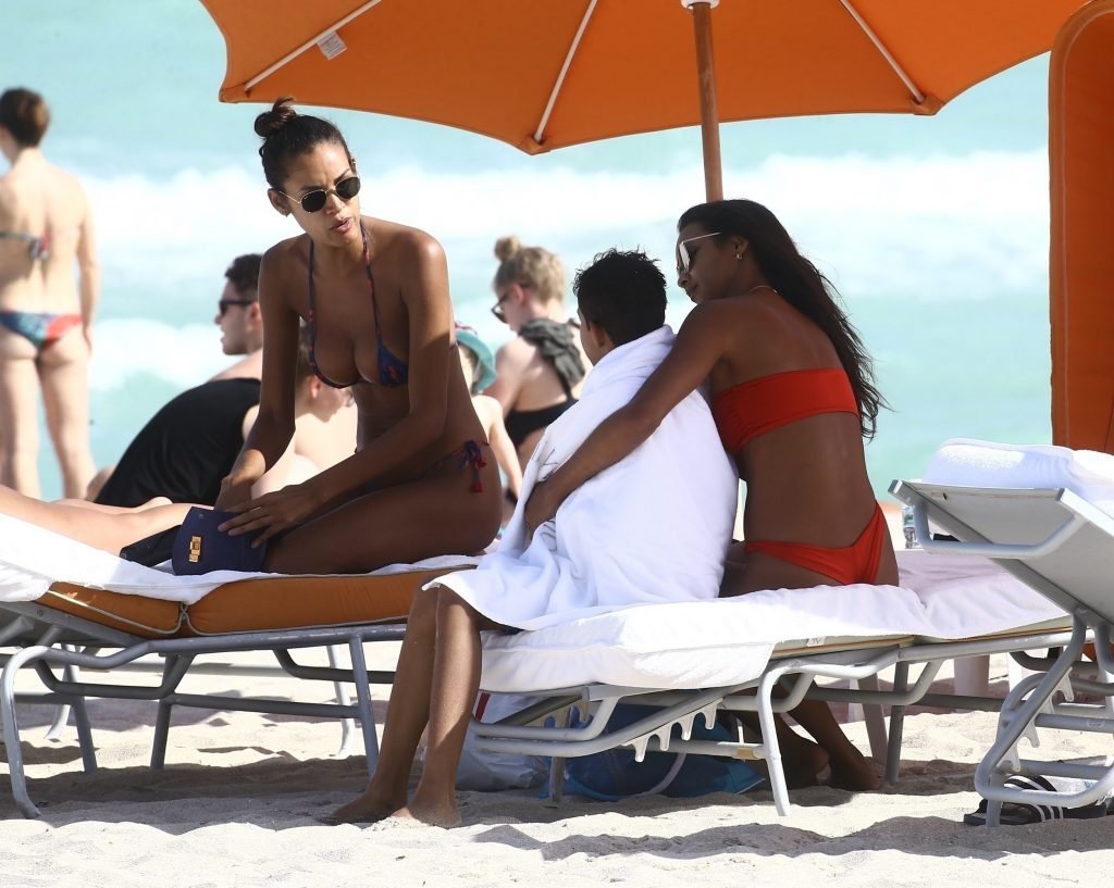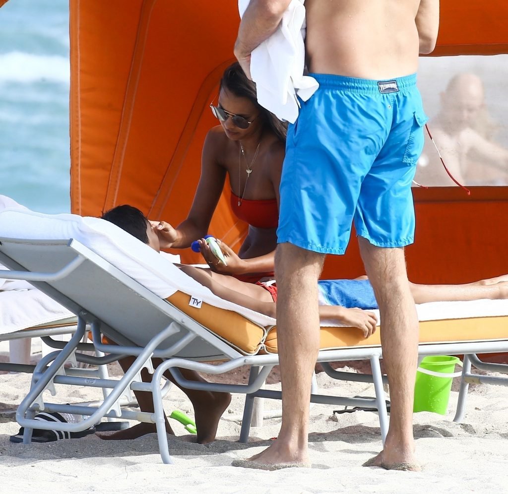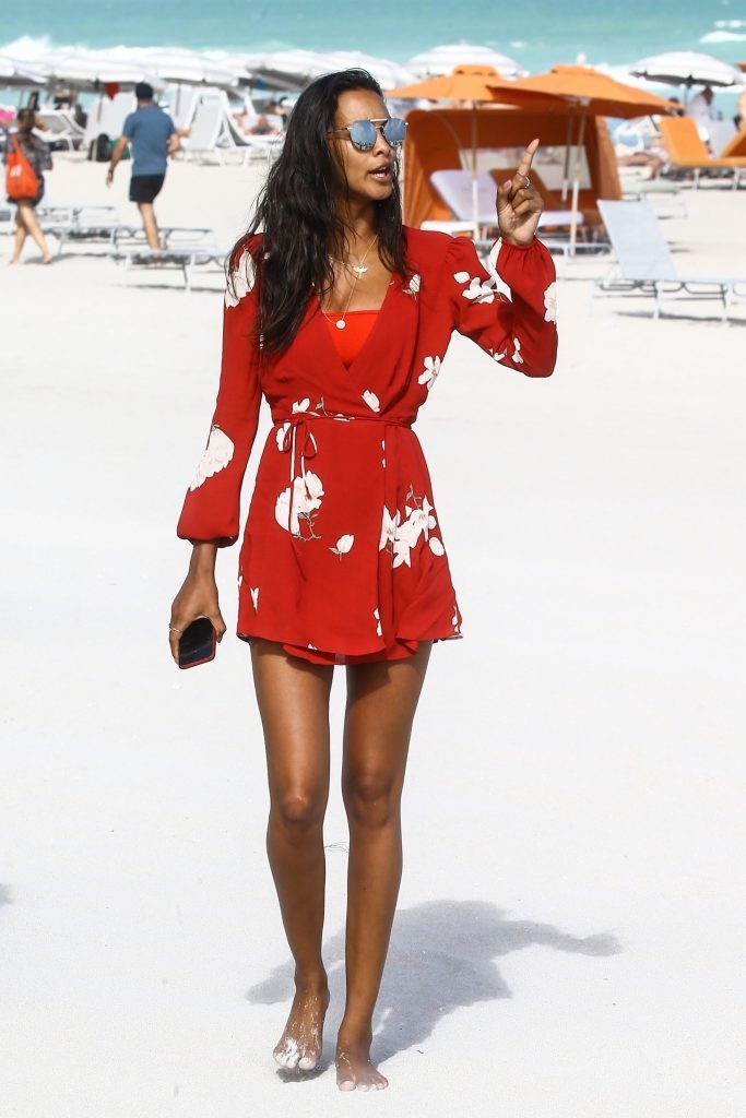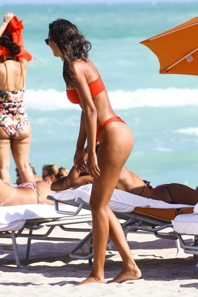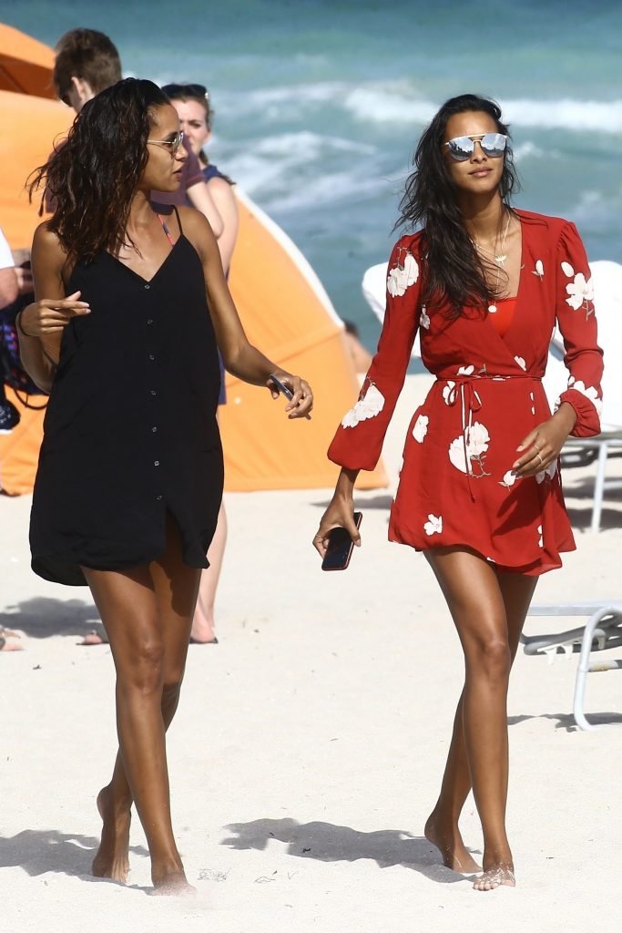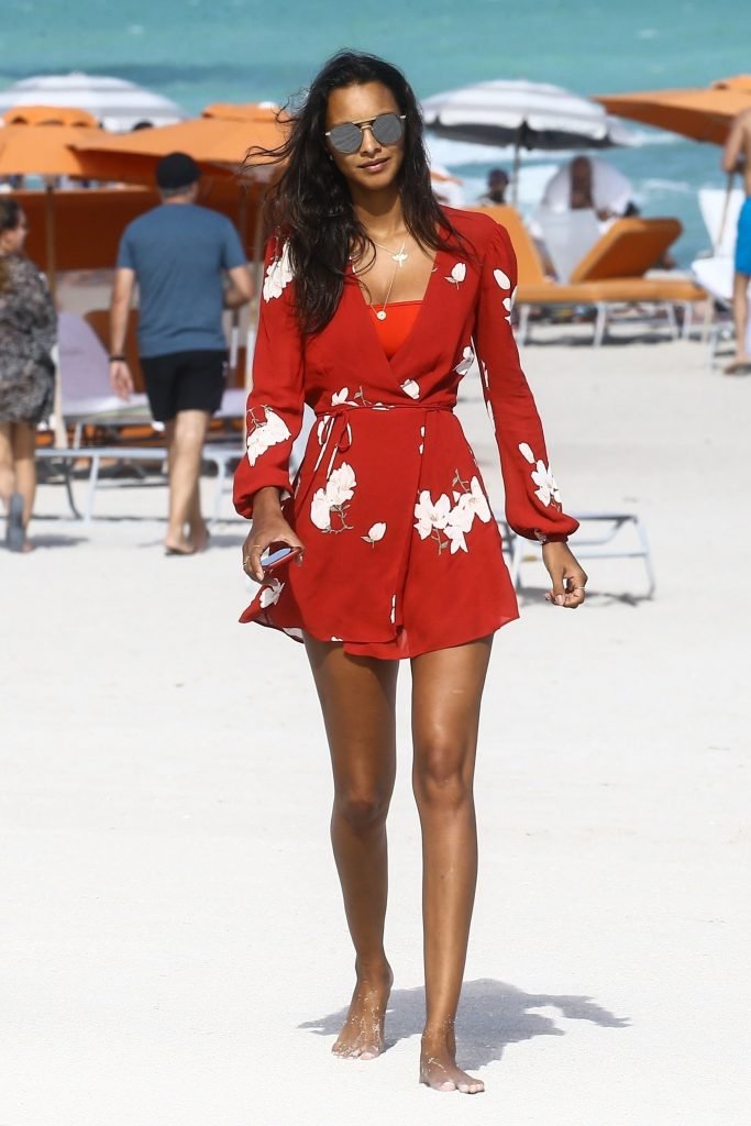 Top model Lais Ribeiro (24) aproveita um dia na praia em Miami Beach, 22/02/2018.