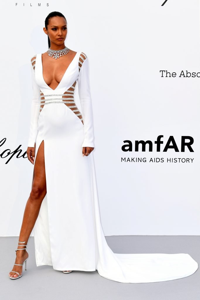 Lais Ribeiro participa do Gala amfAR Cannes 2018 no Hotel du Cap-Eden-Roc em Cap d’Antibes, França, 17/05/2018. A supermodelo brasileira de 27 anos usava um vestido branco com um decote profundo.
