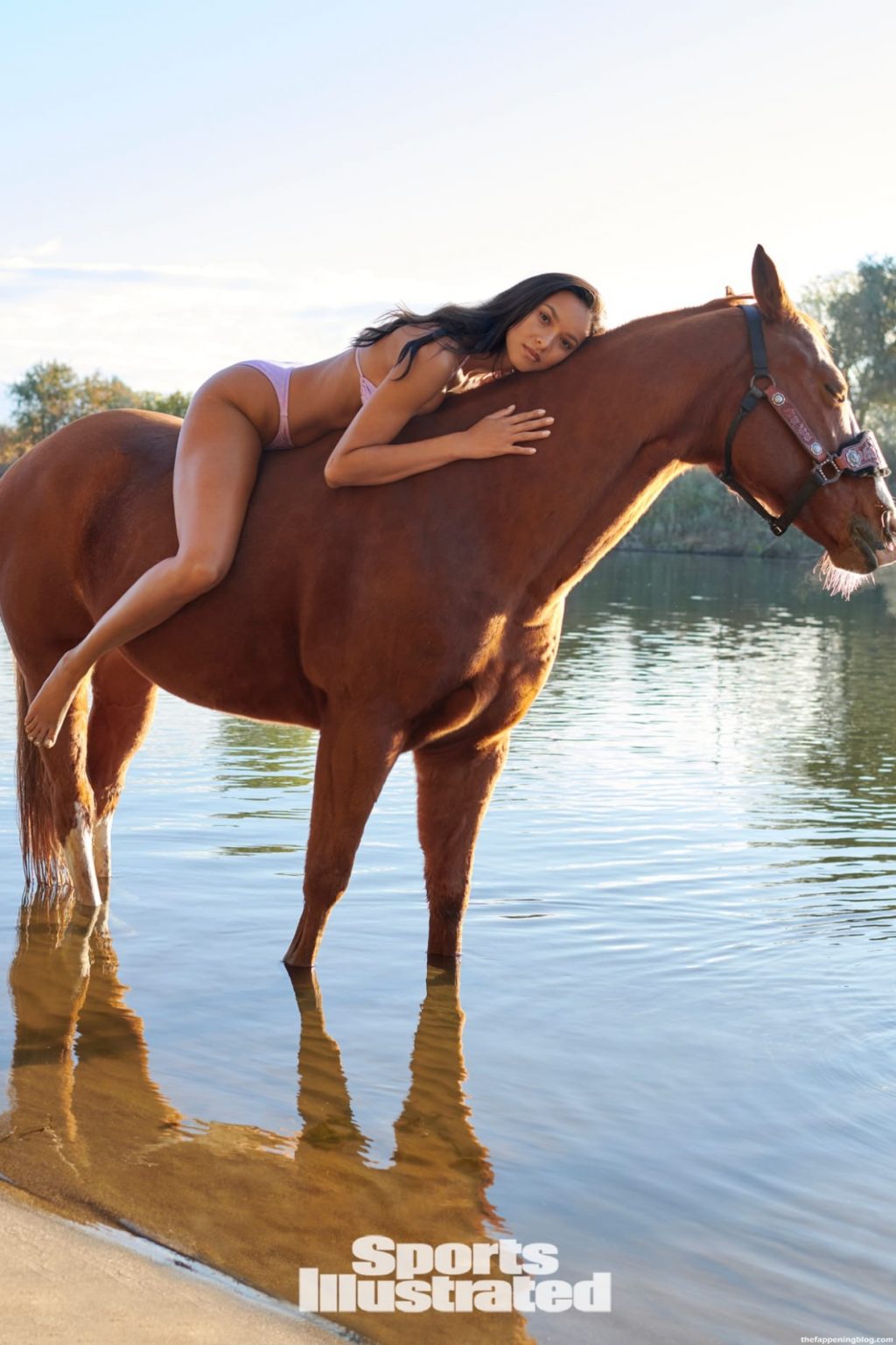 A veterana modelo Lais Ribeiro adora cavalos e posa de biquíni em um ensaio fotográfico de Anne Menke em Sacramento para a edição Sports Illustrated Swimsuit 2021.