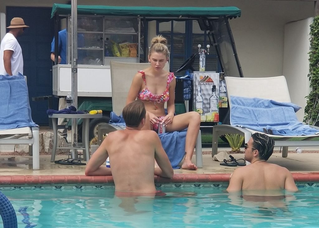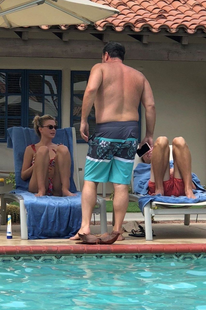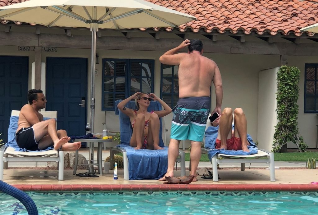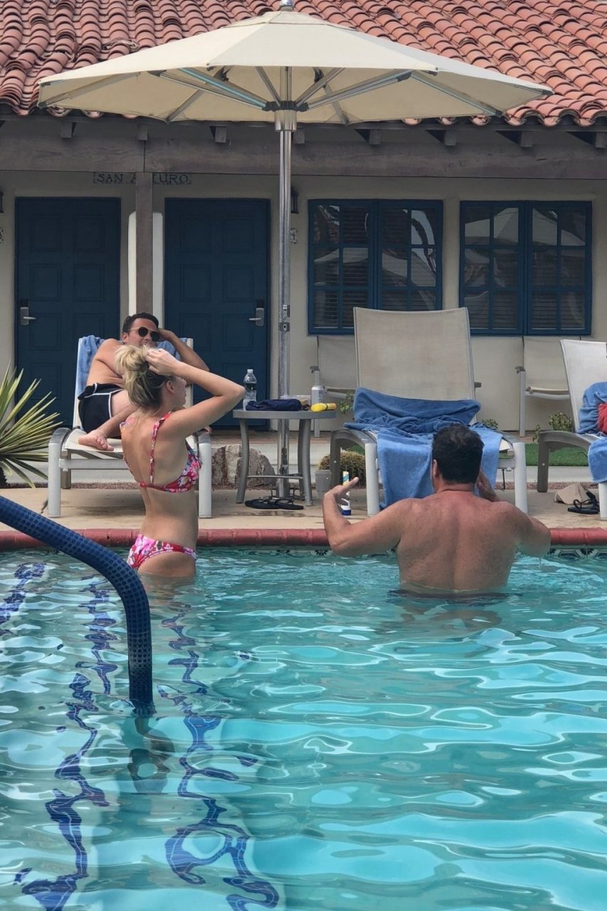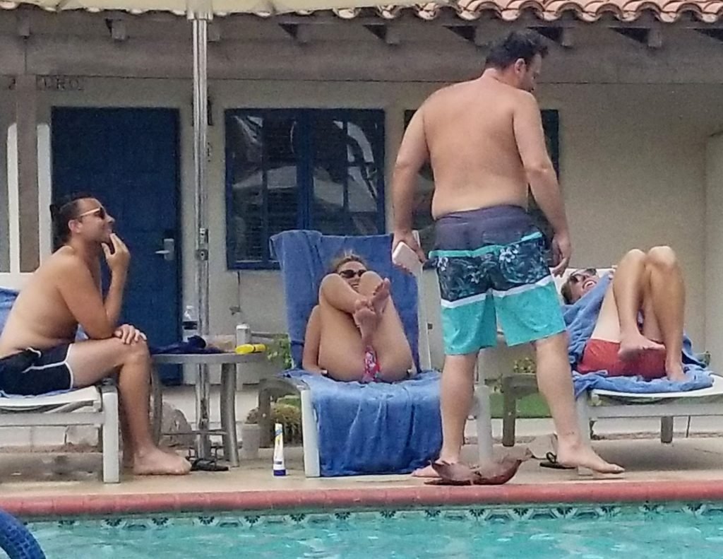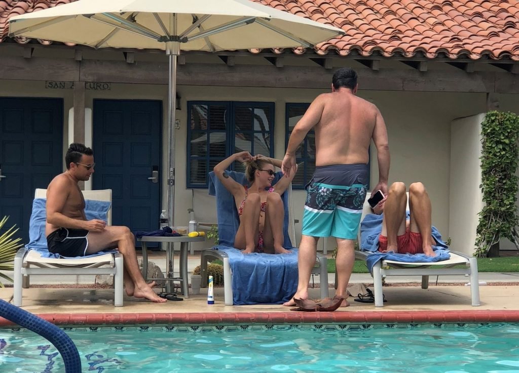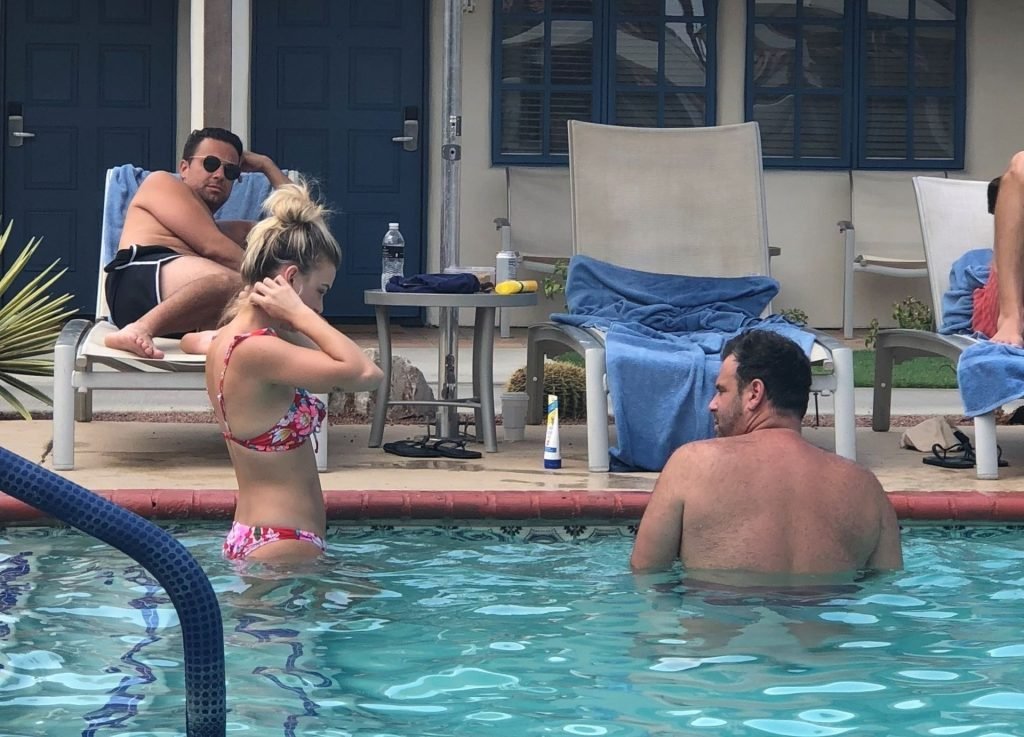 Lala Kent de “Vanderpump Rules” está à beira da piscina em uma escapada de férias no deserto com seu noivo, Randall Emmett, e a família, 24/08/2019.