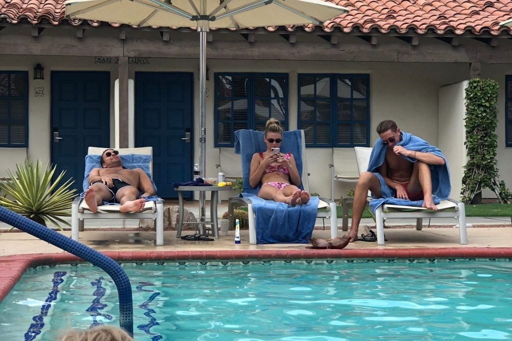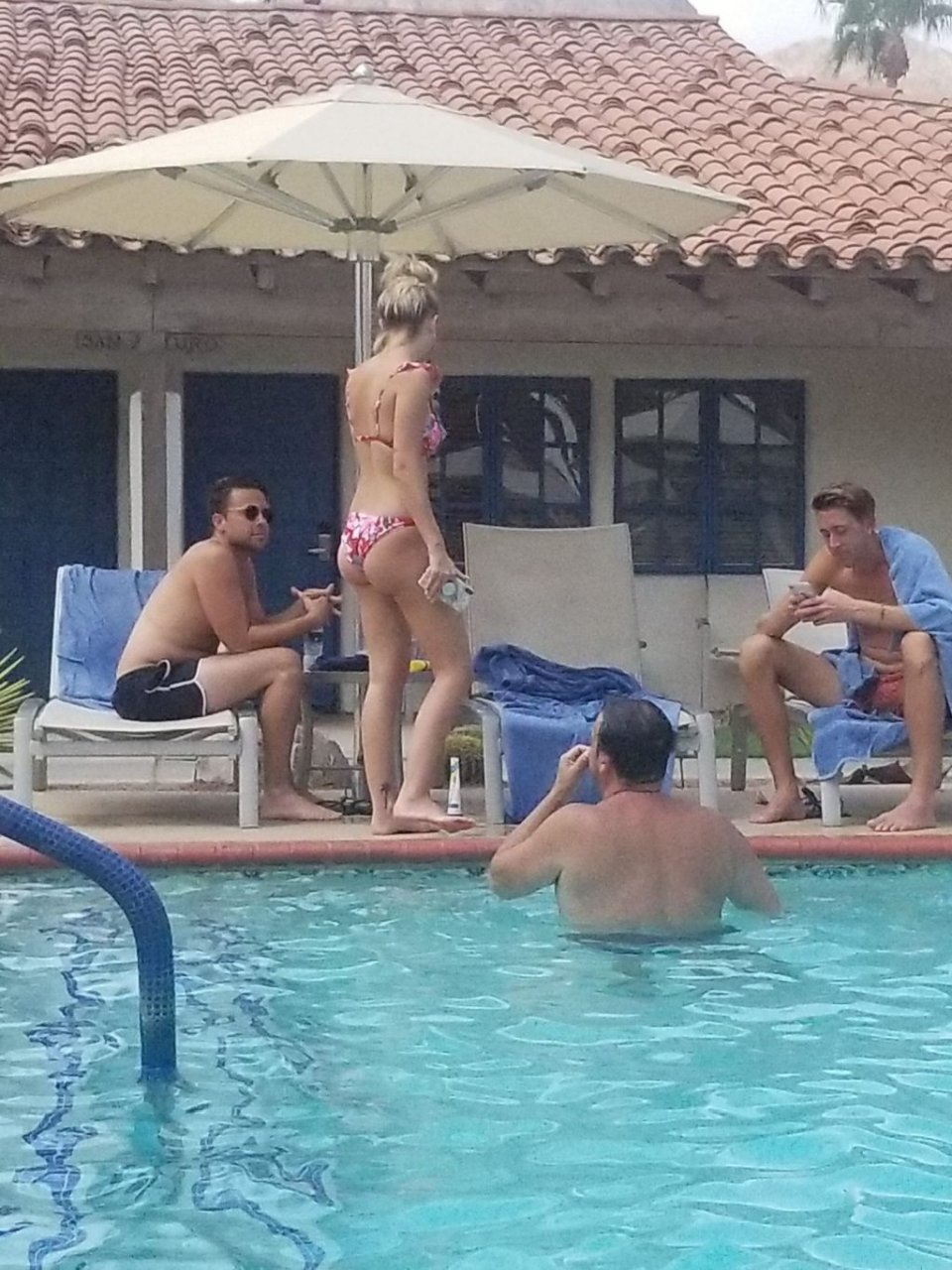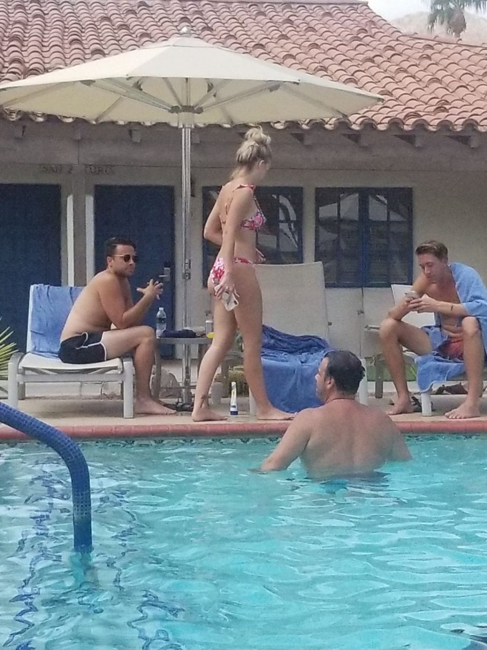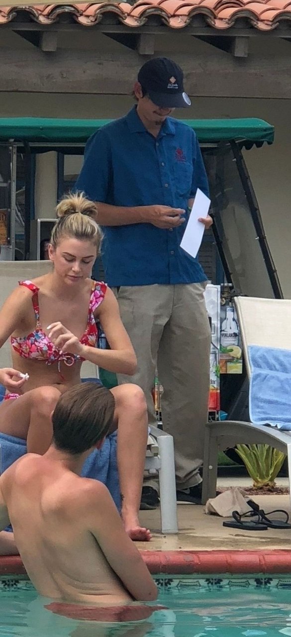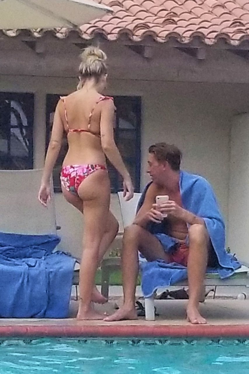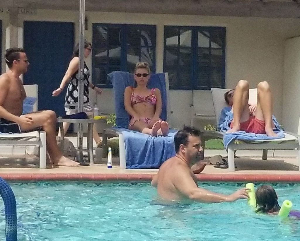 Lala Kent de “Vanderpump Rules” está à beira da piscina em uma escapada de férias no deserto com seu noivo, Randall Emmett, e a família, 24/08/2019.