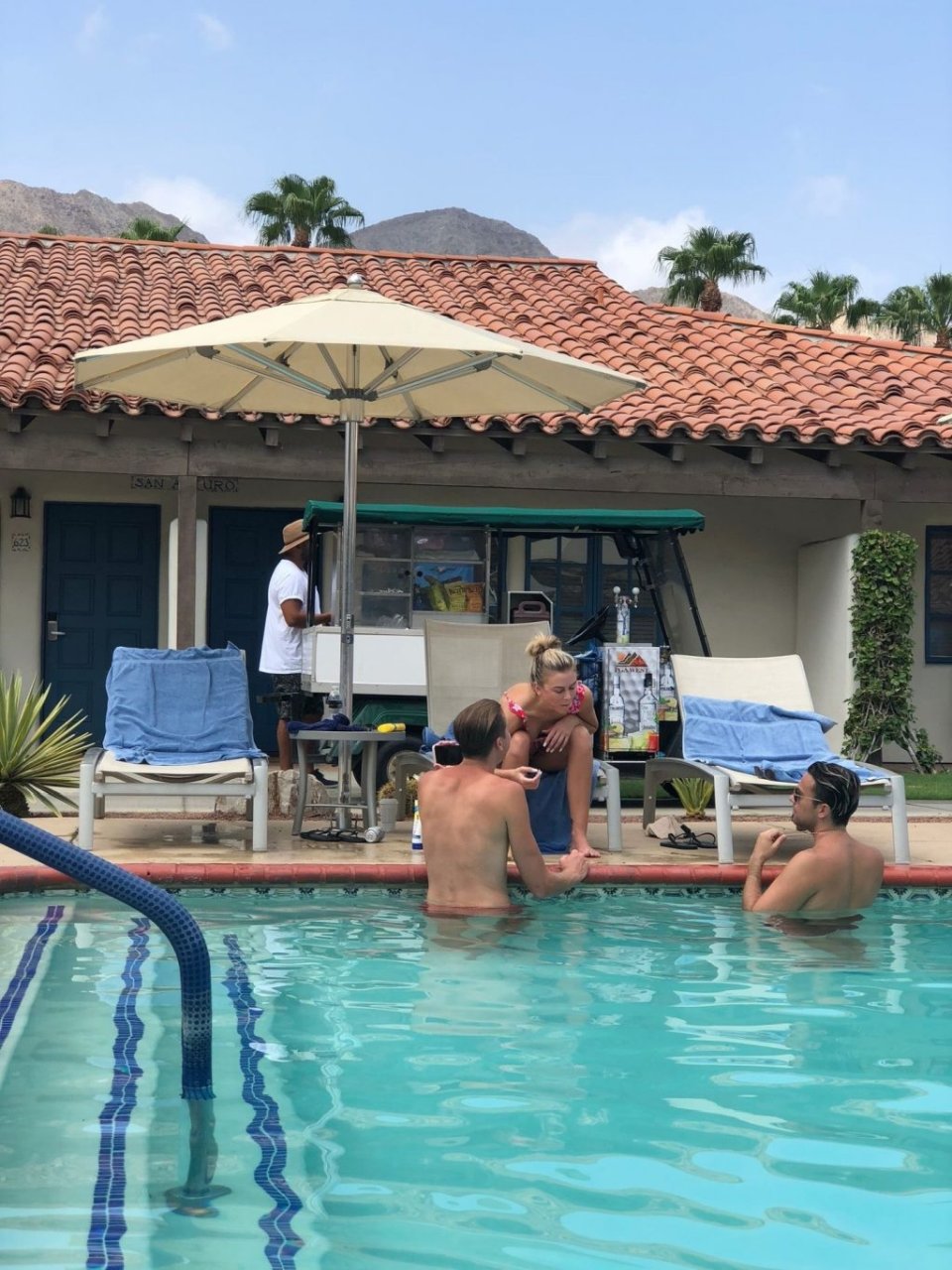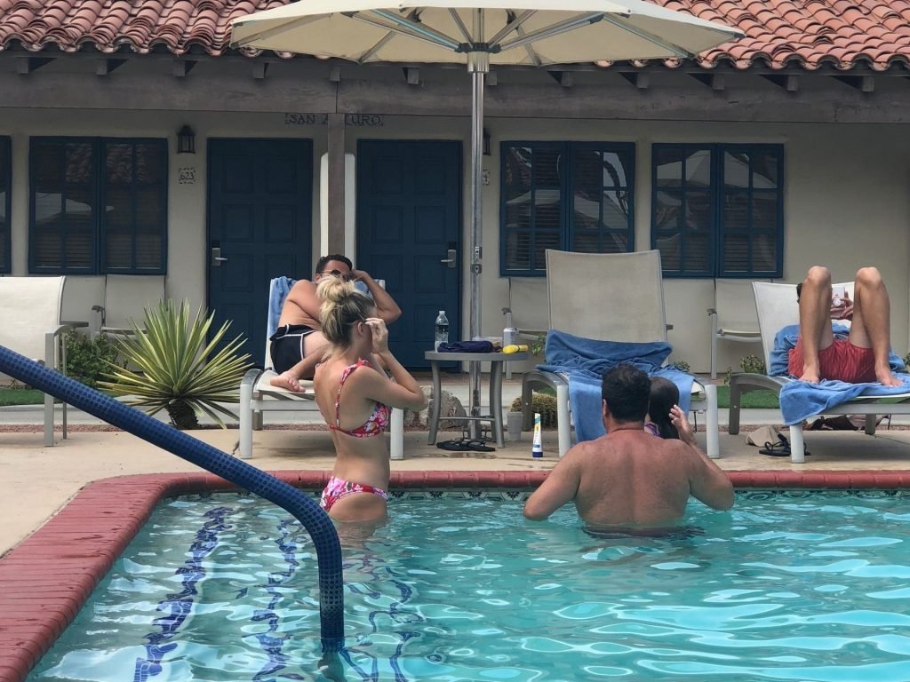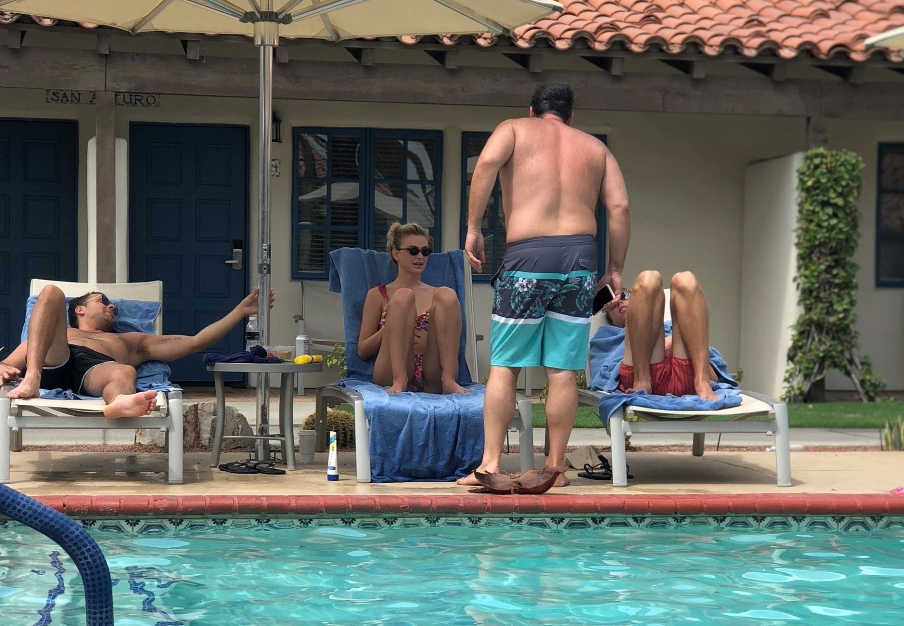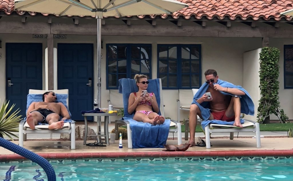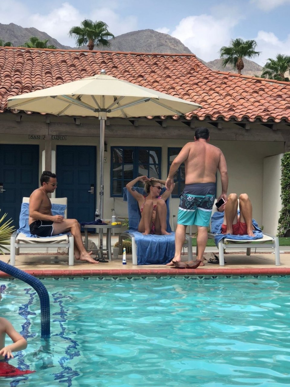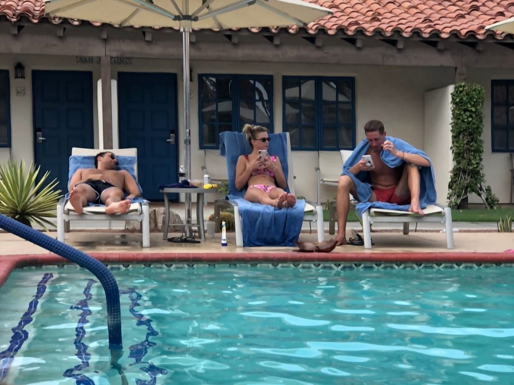 Lala Kent de “Vanderpump Rules” está à beira da piscina em uma escapada de férias no deserto com seu noivo, Randall Emmett, e a família, 24/08/2019.