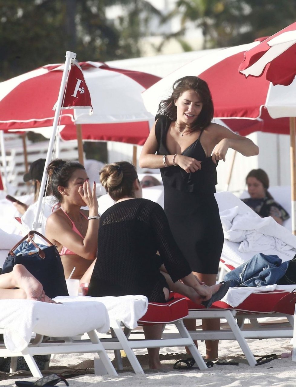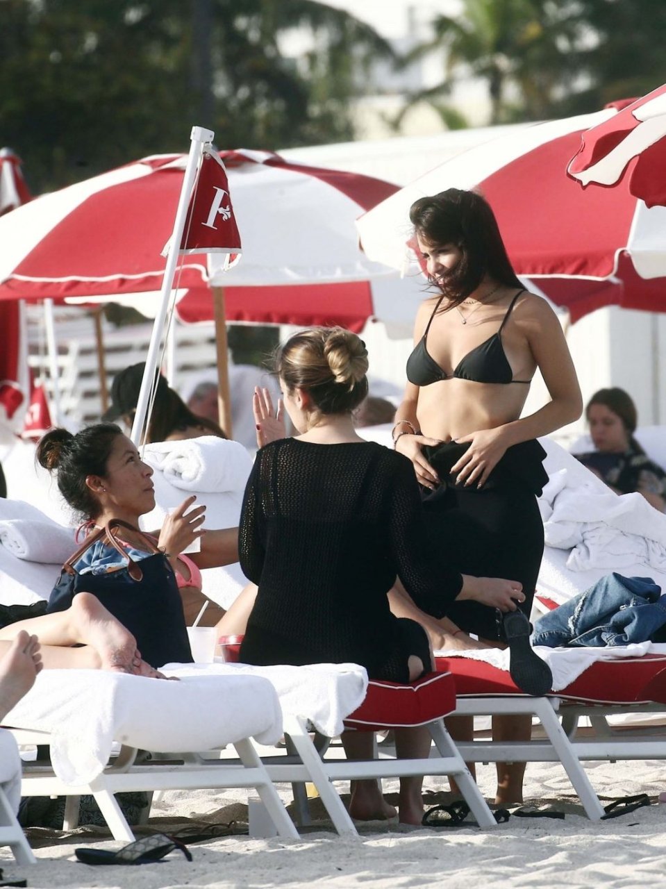 A atriz e cantora argentina Lali Esposito foi vista relaxando na praia em Miami, 23/02/2019. Lali está atualmente em Miami onde está gravando com as cantoras Thalia e Nati Natacha e parecia sexy aproveitando o sol de Miami em seu pequeno biquíni preto.