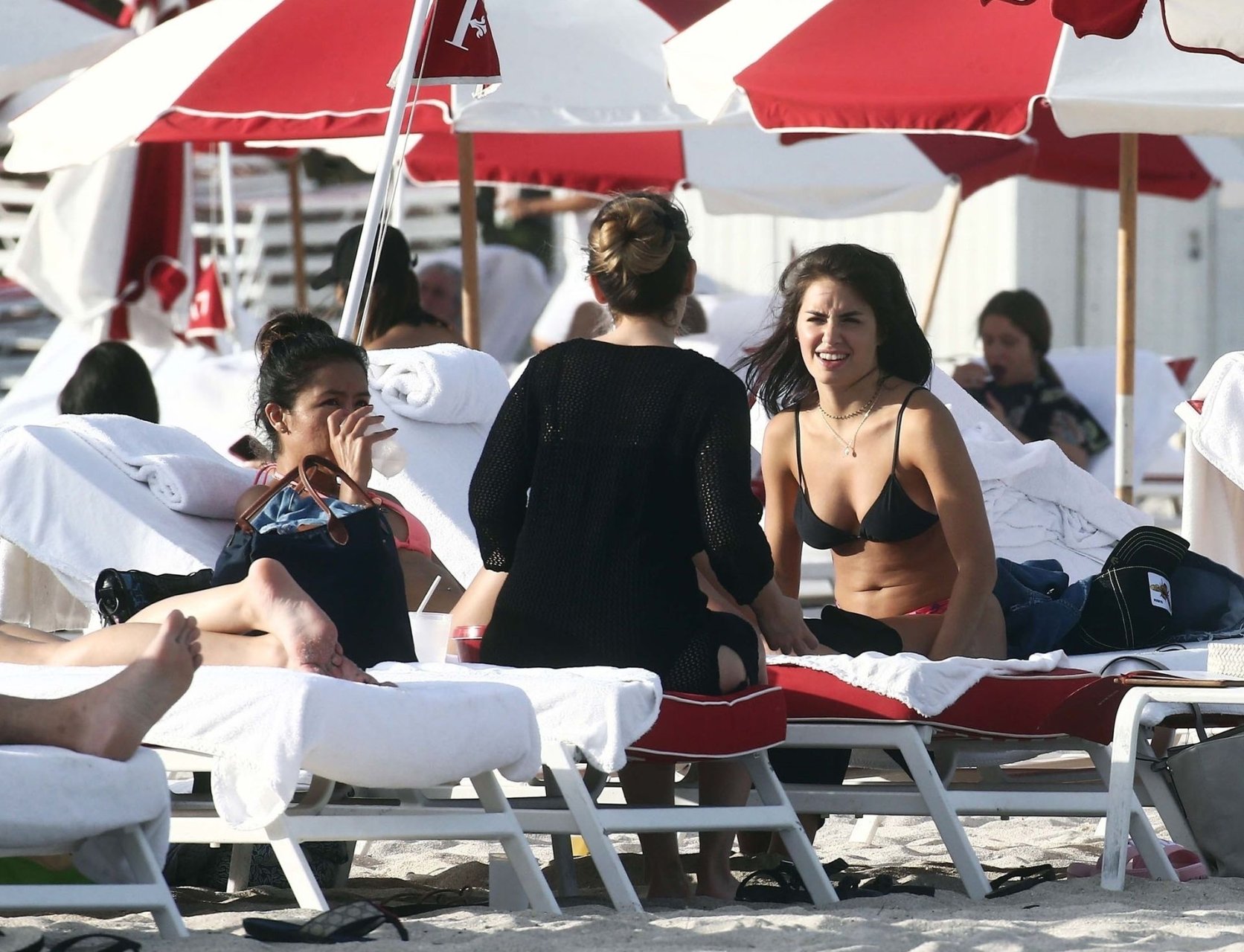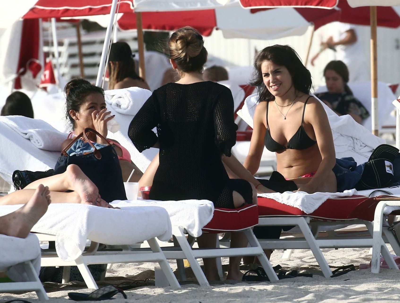 A atriz e cantora argentina Lali Esposito foi vista relaxando na praia em Miami, 23/02/2019. Lali está atualmente em Miami onde está gravando com as cantoras Thalia e Nati Natacha e parecia sexy aproveitando o sol de Miami em seu pequeno biquíni preto.