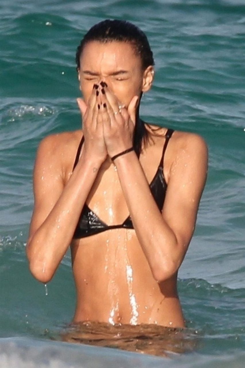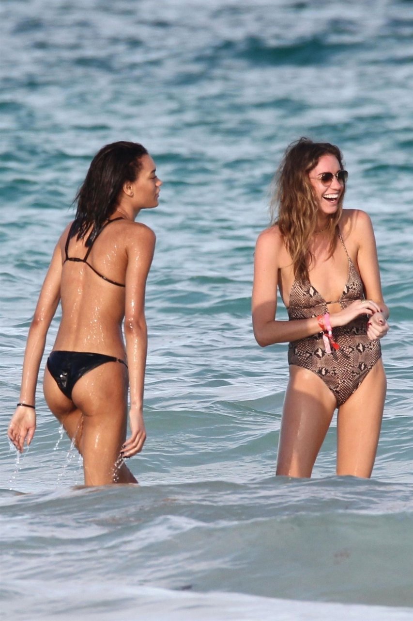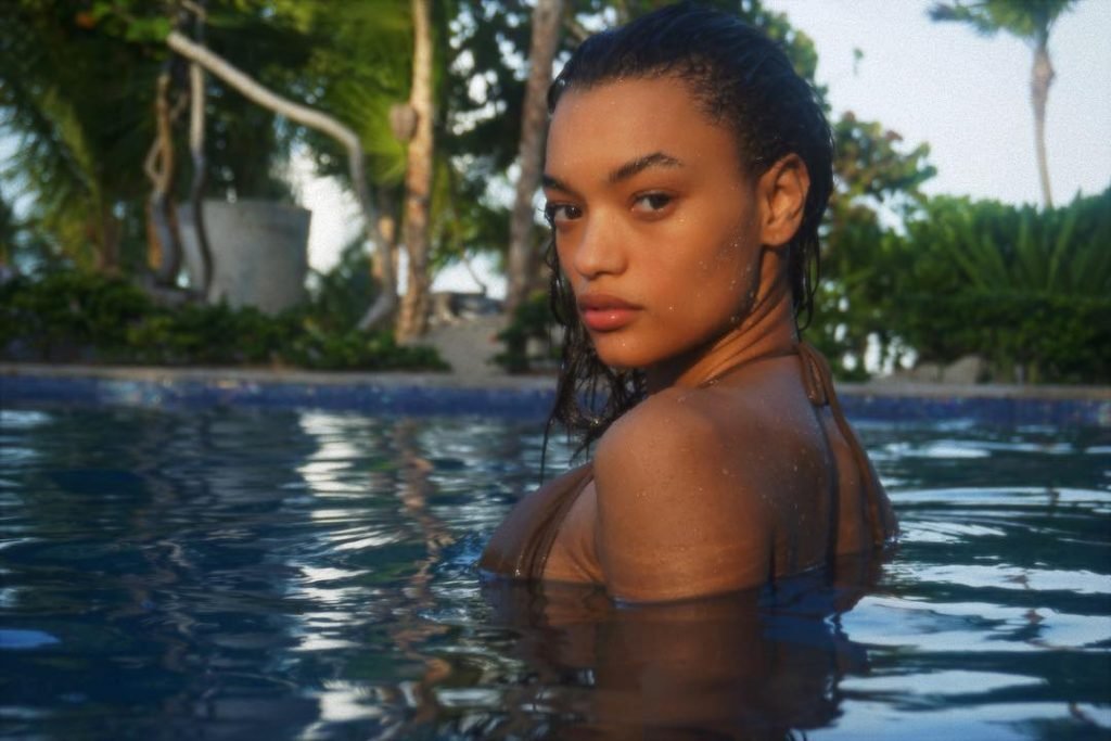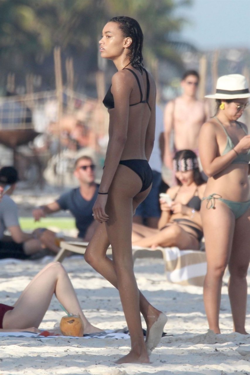 A modelo da Victoria’s Secret Lameka Fox (20) foi vista exibindo sua figura magra impecável enquanto nadava no oceano durante suas férias em Tulum, México, 13/01/2019.