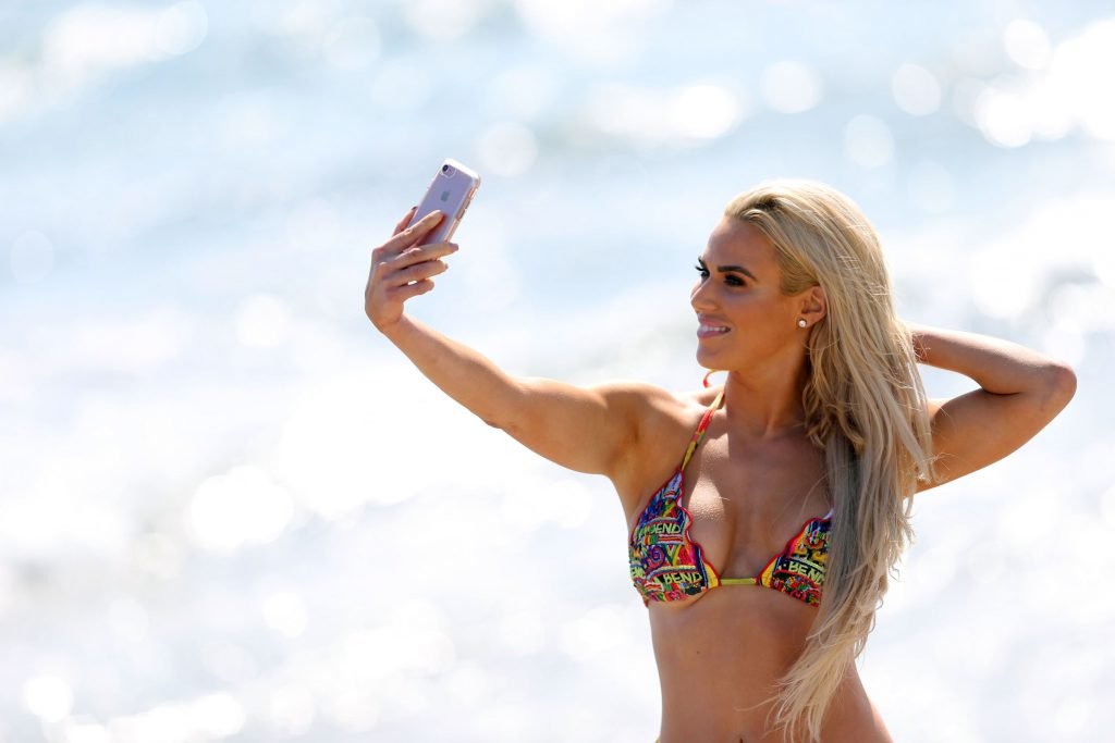 ‘Total Divas’ estrela CJ Perry se refresca na praia em Los Angeles, 23/10/2017. C.J. Perry é uma atriz, dançarina, modelo, cantora, gerente de luta profissional e lutadora americana (WWE Lana). Idade – 32 anos (nascida em 24 de março de 1985).