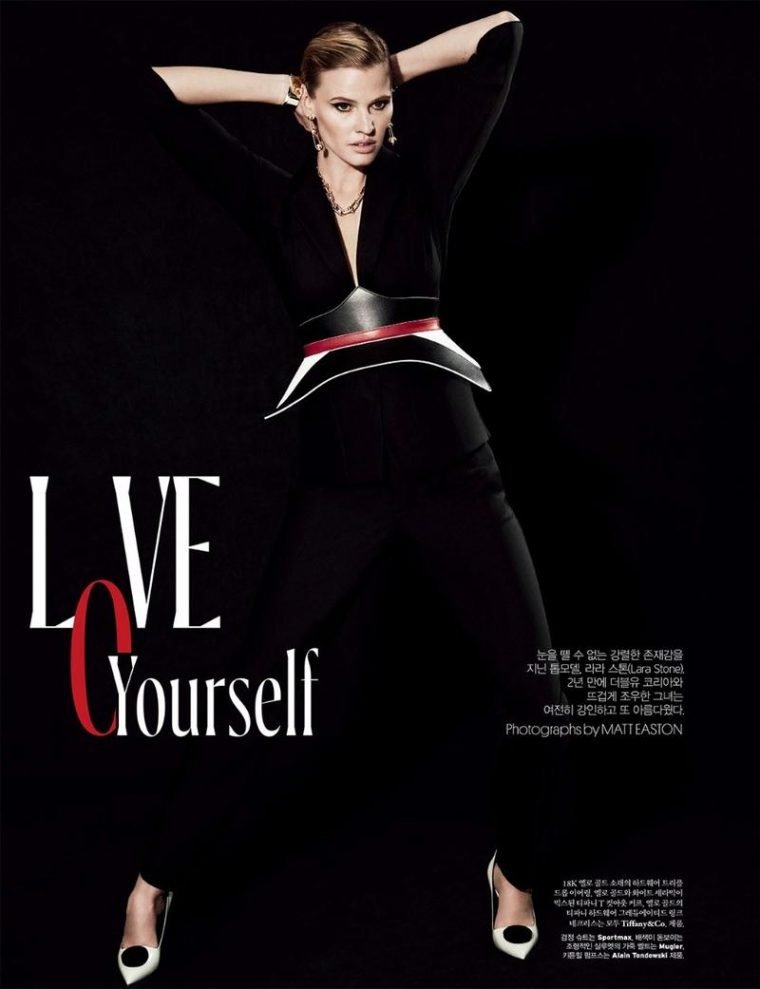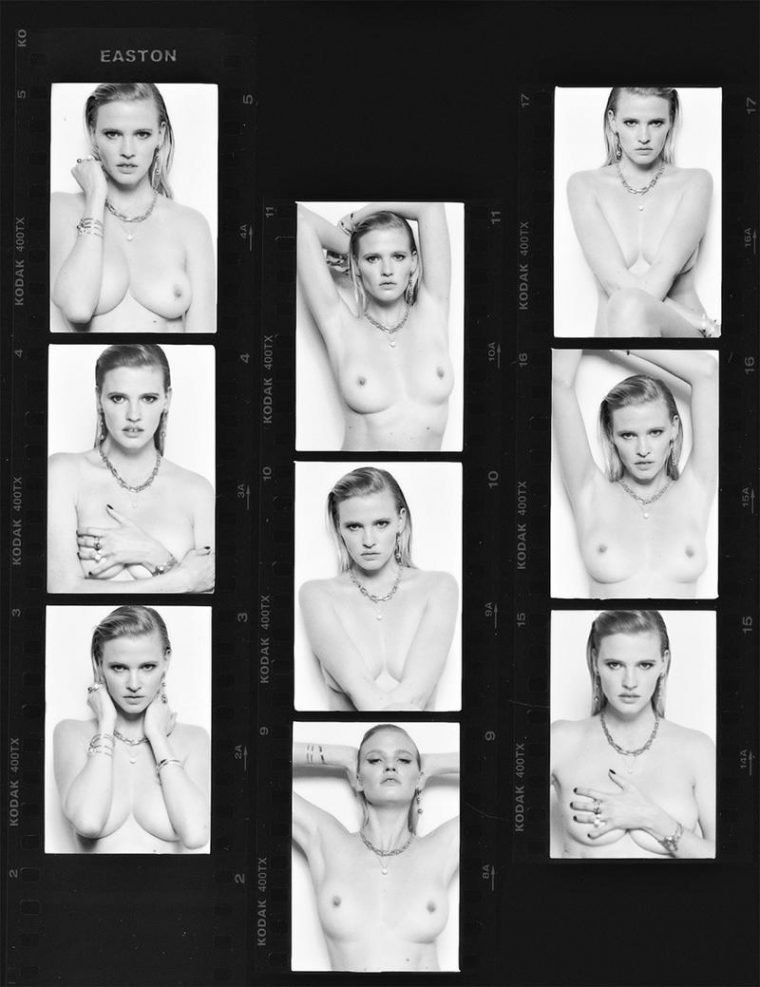 Lara Stone exibe seus seios europeus perfeitos na W Magazine Coreia (dezembro de 2017). Fotografada por Matt Easton. Lara Catherina Stone é uma modelo de moda top dos Países Baixos. Idade – 33.