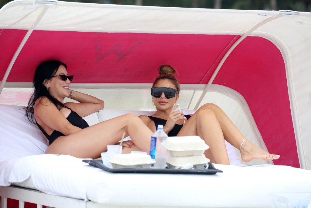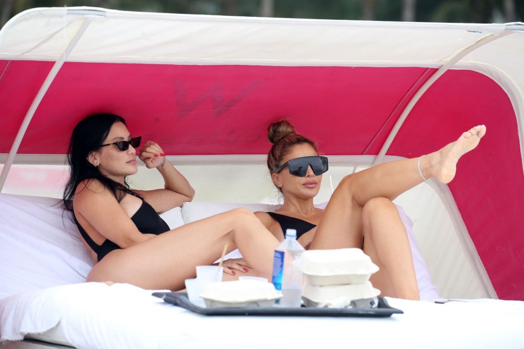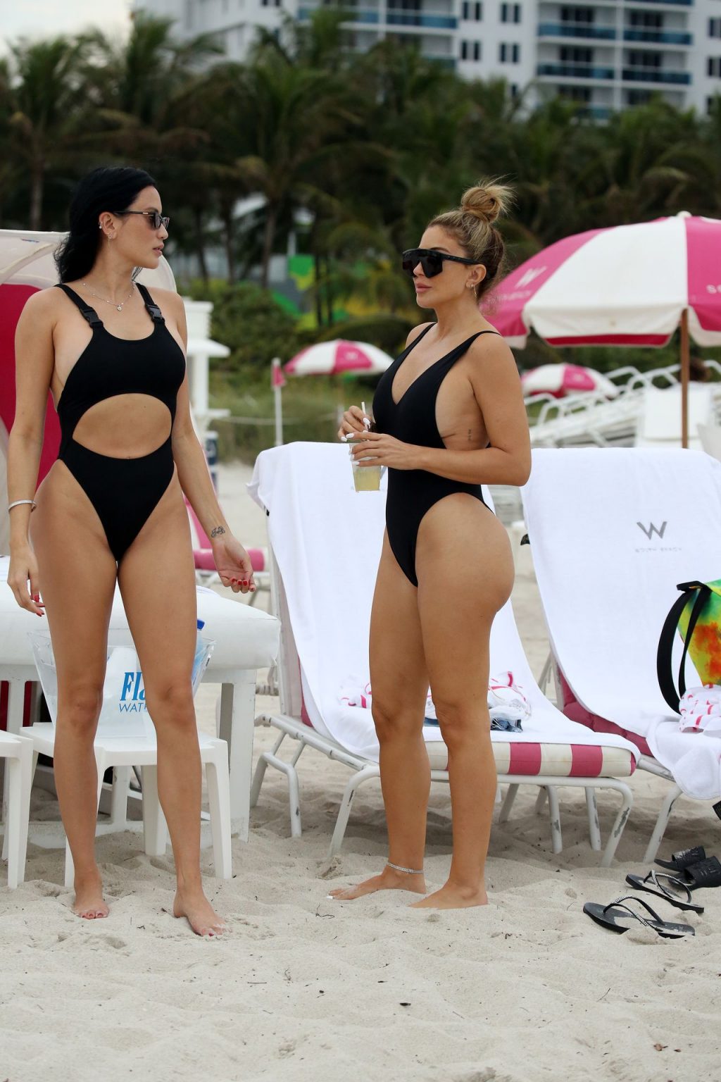 Larsa Pippen exibe suas curvas em um maiô preto enquanto aproveita a praia com a melhor amiga Michelle Pooch em Miami, 12/06/2020.