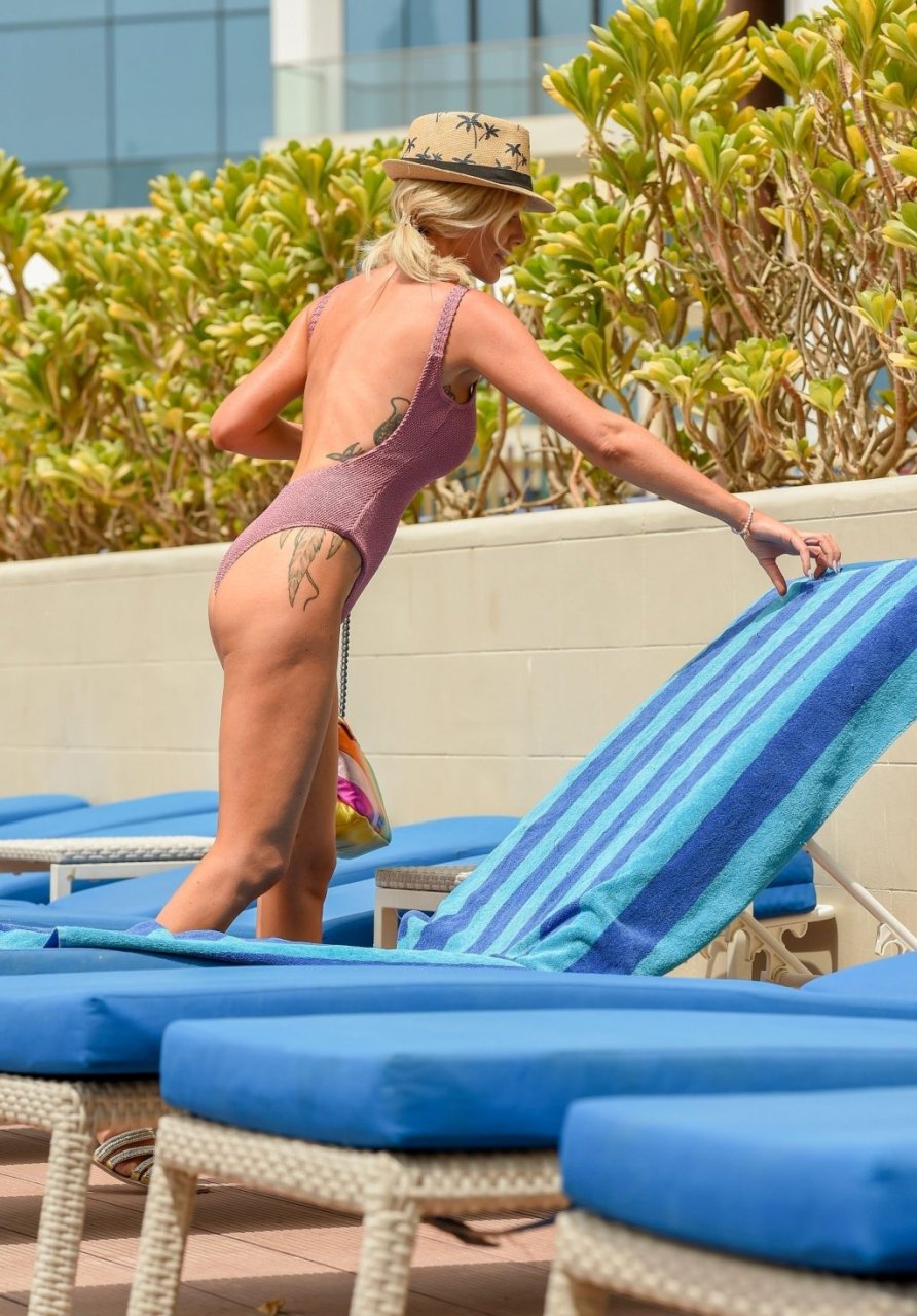 “Estrela de ‘Love Island’, Laura Anderson relaxa em uma espreguiçadeira enquanto está de férias em Dubai (2018). Laura Anderson, 29, é cabeleireira meio período que costumava ser comissária de bordo da Emirates Airlines.