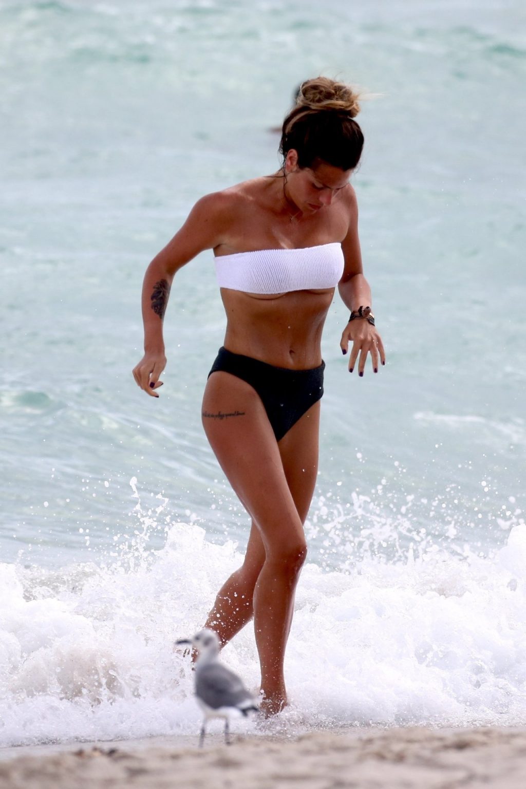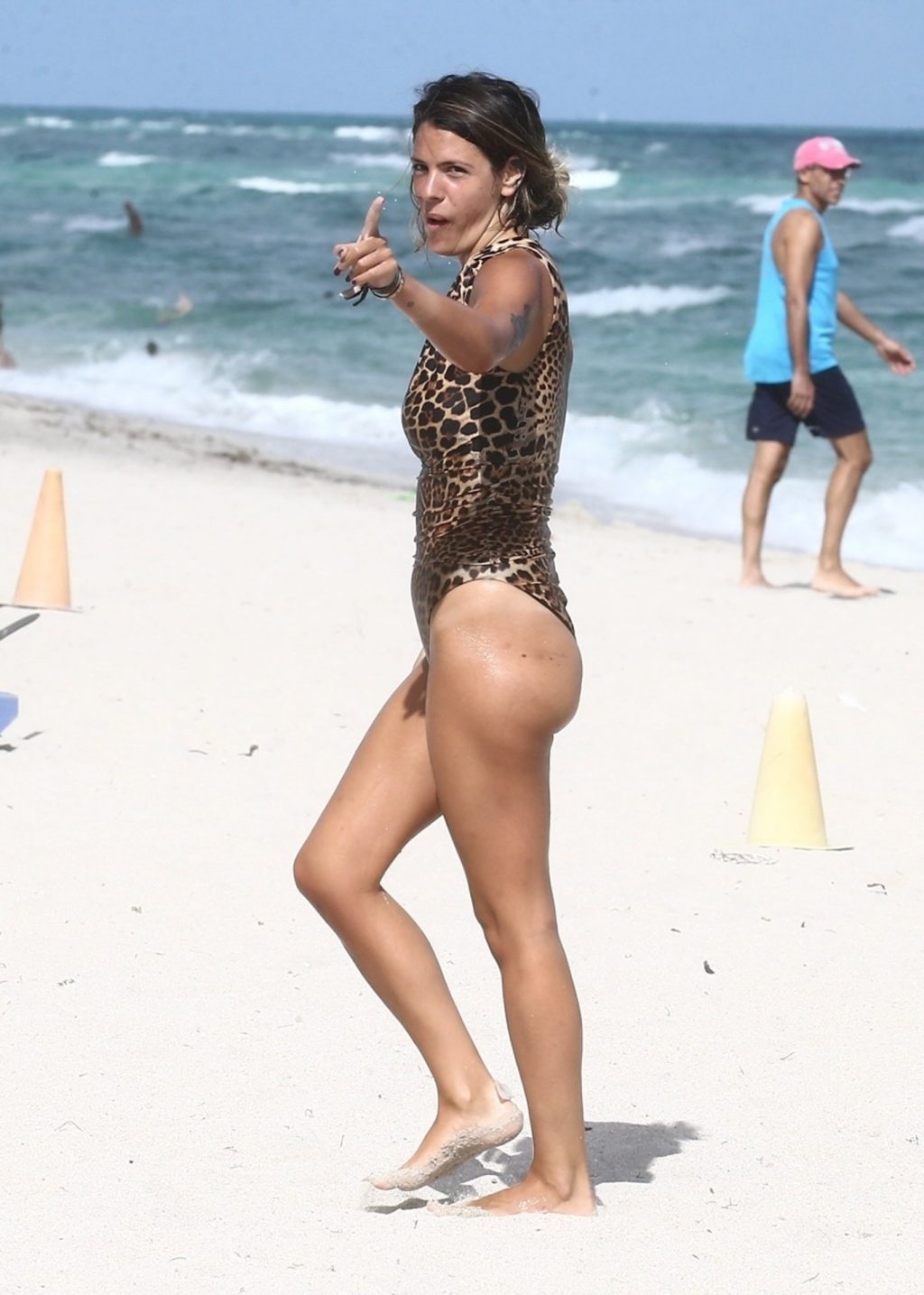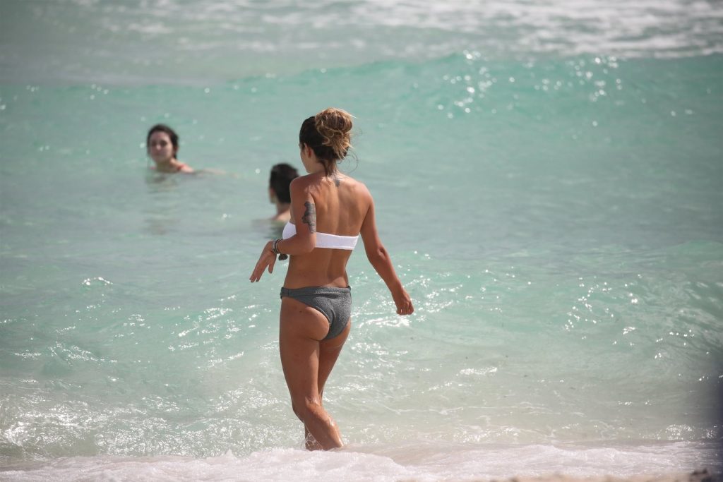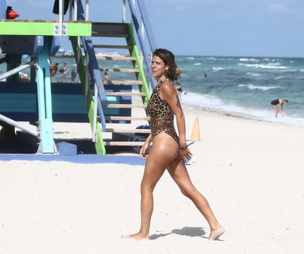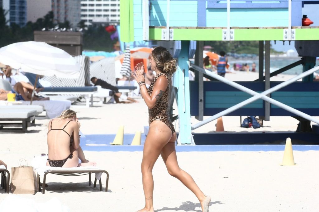 A influenciadora espanhola Laura Matamoros ilumina Miami Beach! A estrela das redes sociais exibiu sua silhueta em um maiô estampado de oncinha, antes de trocar para um top tomara que caia branco e calcinha de biquíni cinza, 16/12/2019.