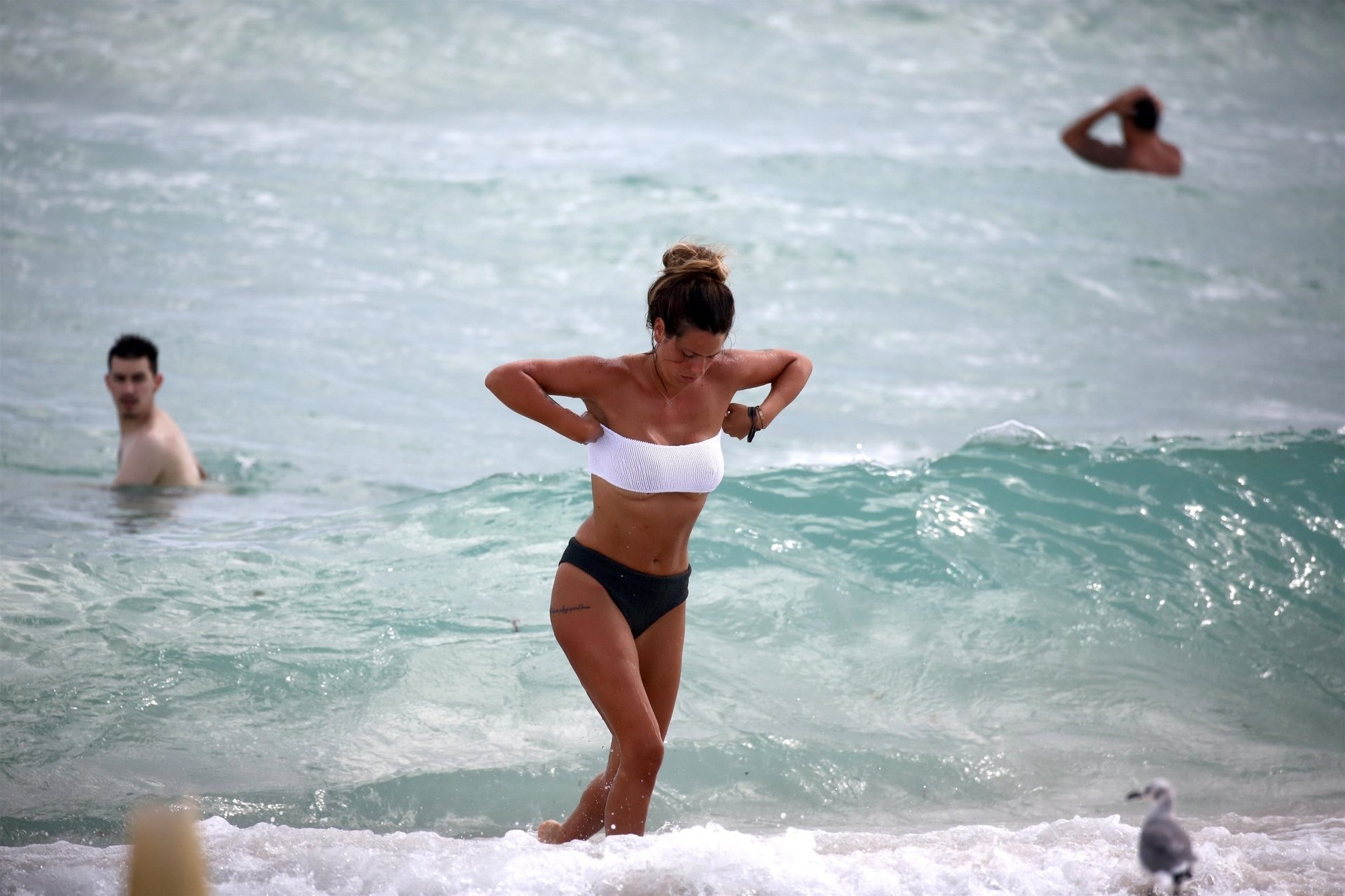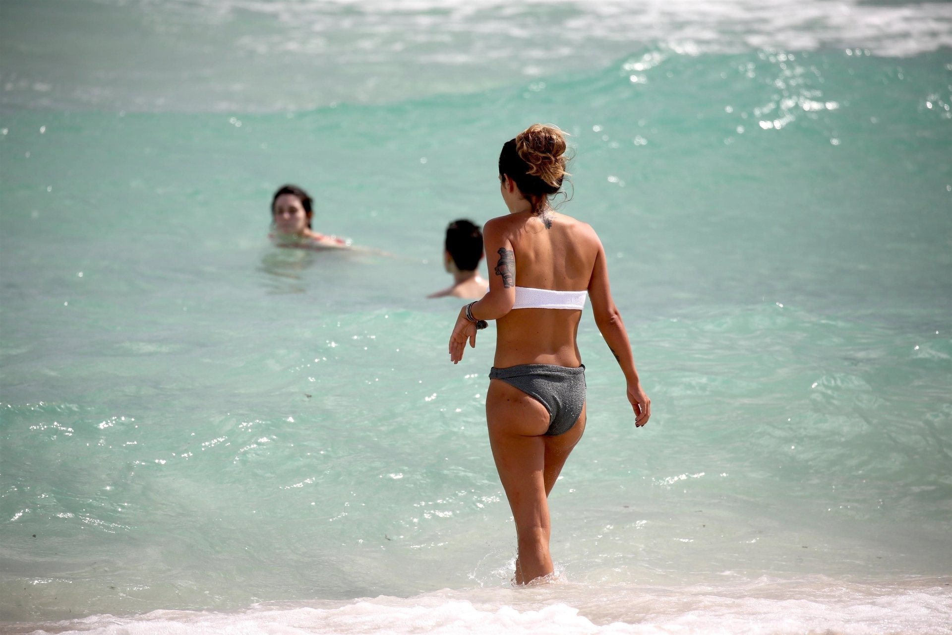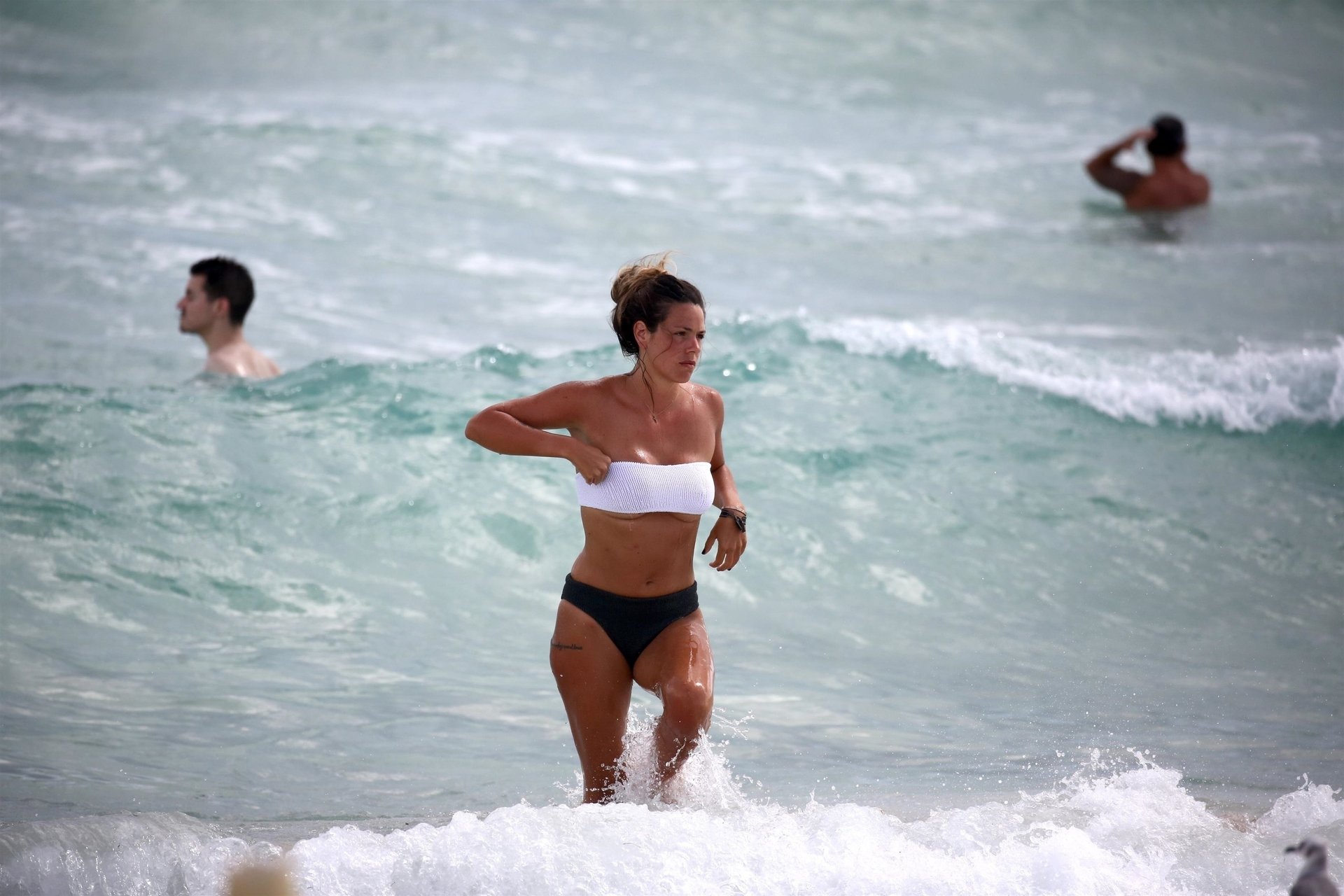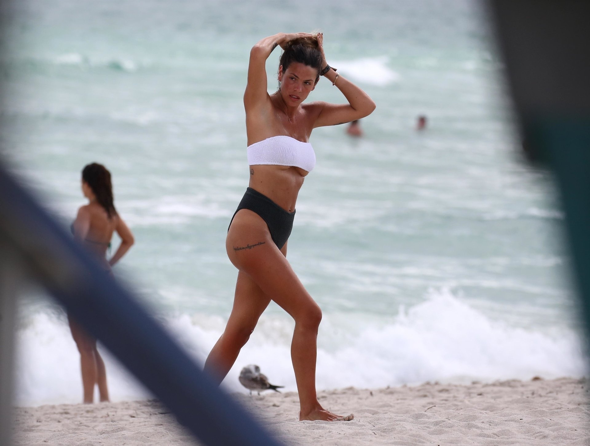 A influenciadora espanhola Laura Matamoros ilumina Miami Beach! A estrela das redes sociais exibiu sua silhueta em um maiô estampado de oncinha, antes de trocar para um top tomara que caia branco e calcinha de biquíni cinza, 16/12/2019.