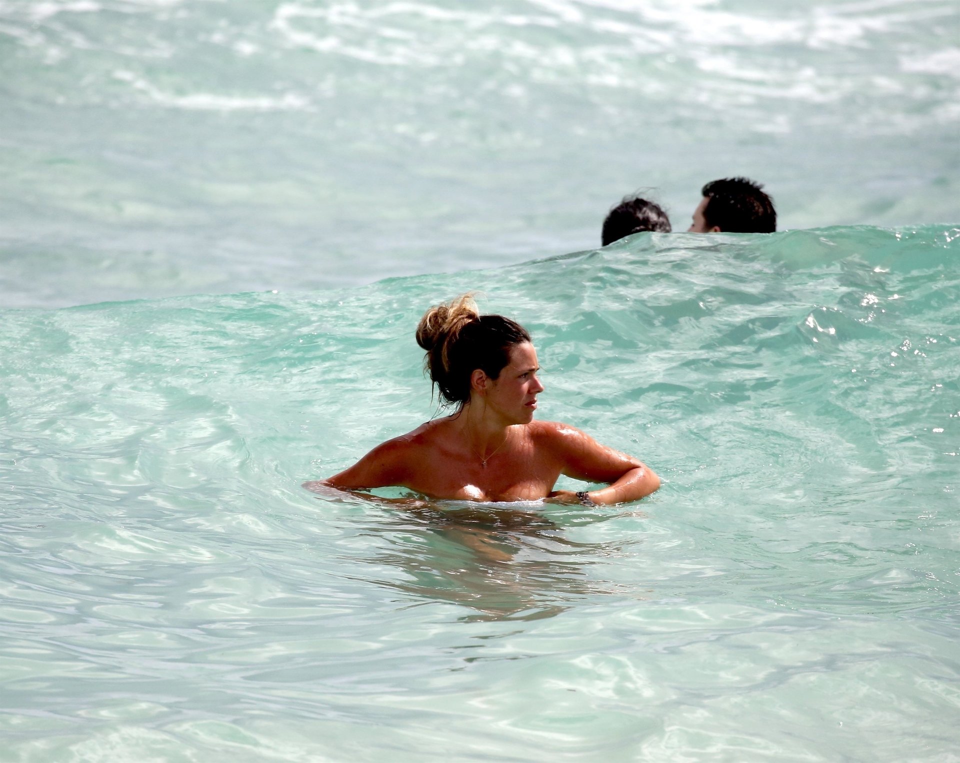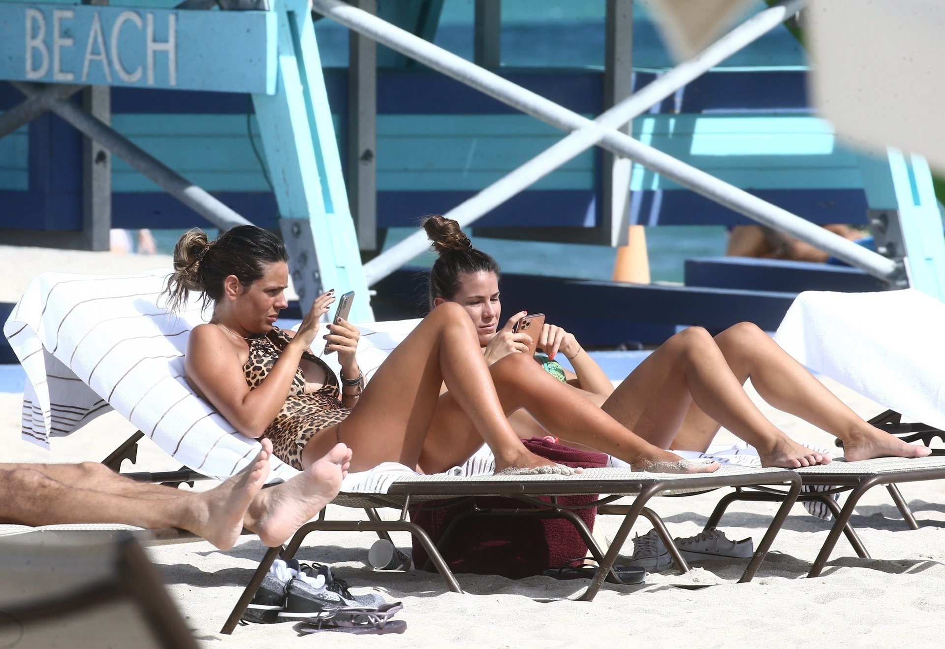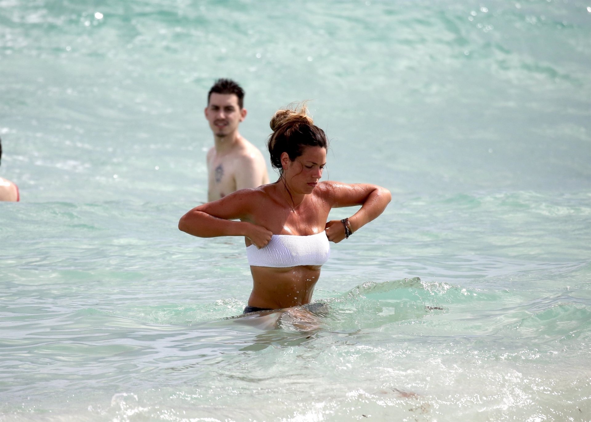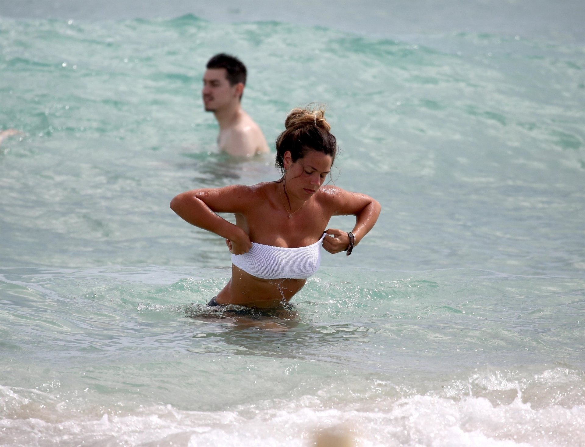 A influenciadora espanhola Laura Matamoros ilumina Miami Beach! A estrela das redes sociais exibiu sua silhueta em um maiô estampado de oncinha, antes de trocar para um top tomara que caia branco e calcinha de biquíni cinza, 16/12/2019.
