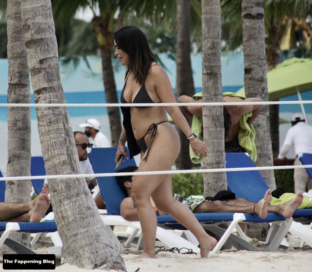 Ex-estrela de “Love Island” Lauren Coogan usa um biquíni preto enquanto vai à praia no México, 09/10/2021.