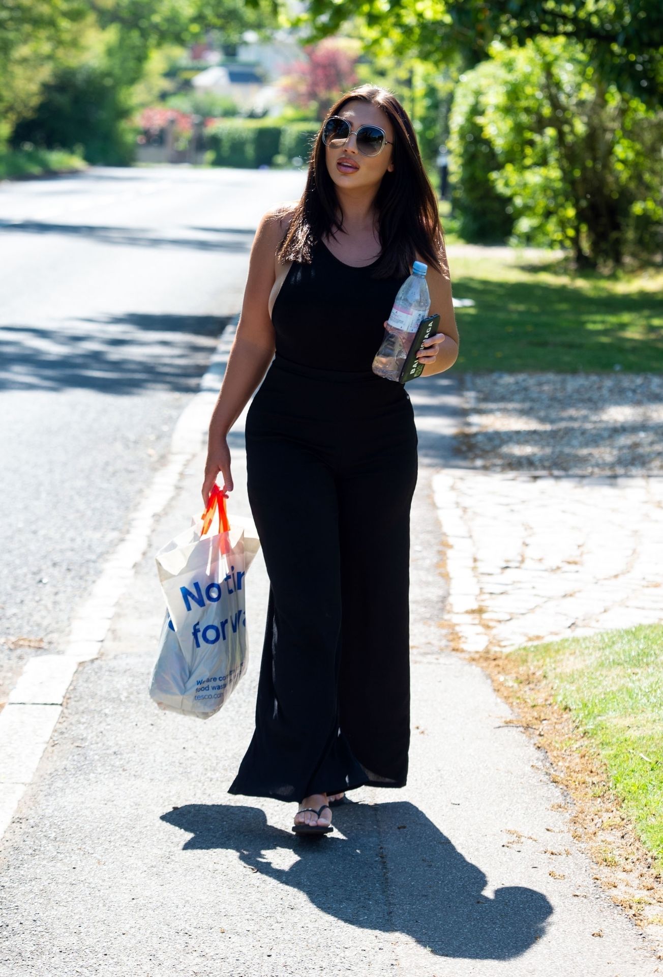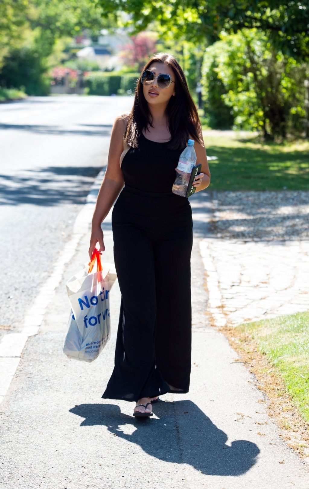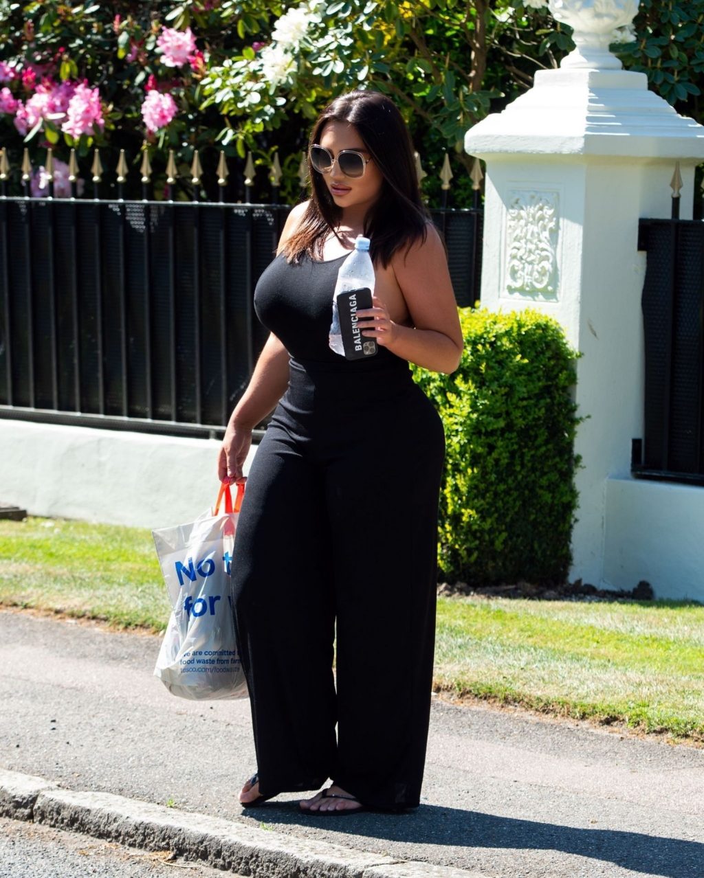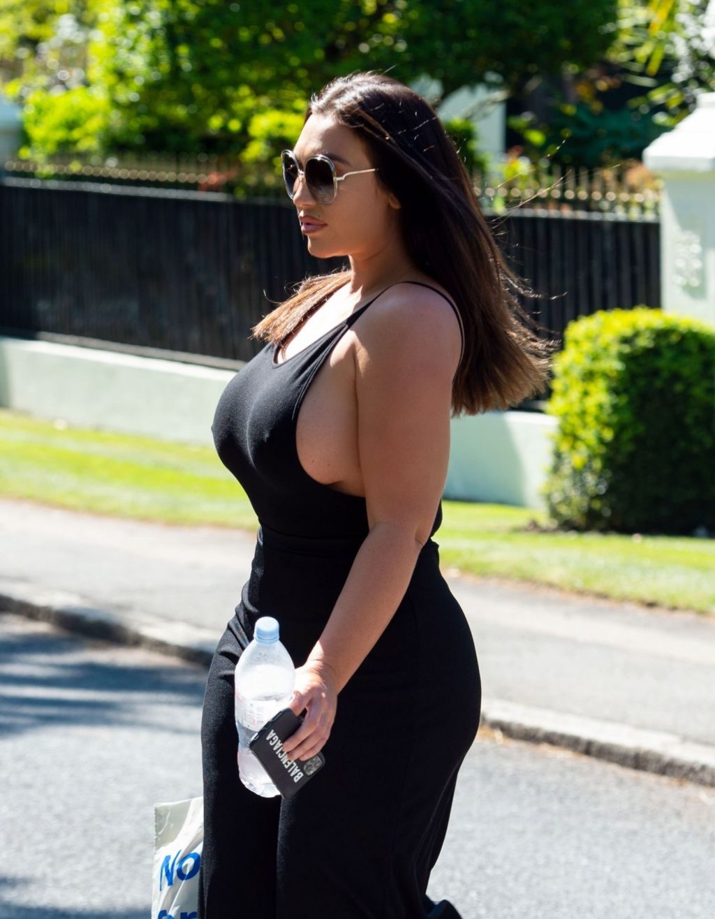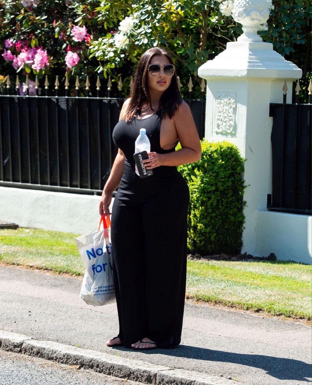 Reality Star Lauren Goodger exibe uma grande lateral do seio enquanto vai ao seu Tesco local, Essex, 26/04/2020. Lauren é vista com um vestido preto enquanto ostenta seus atributos realçados.