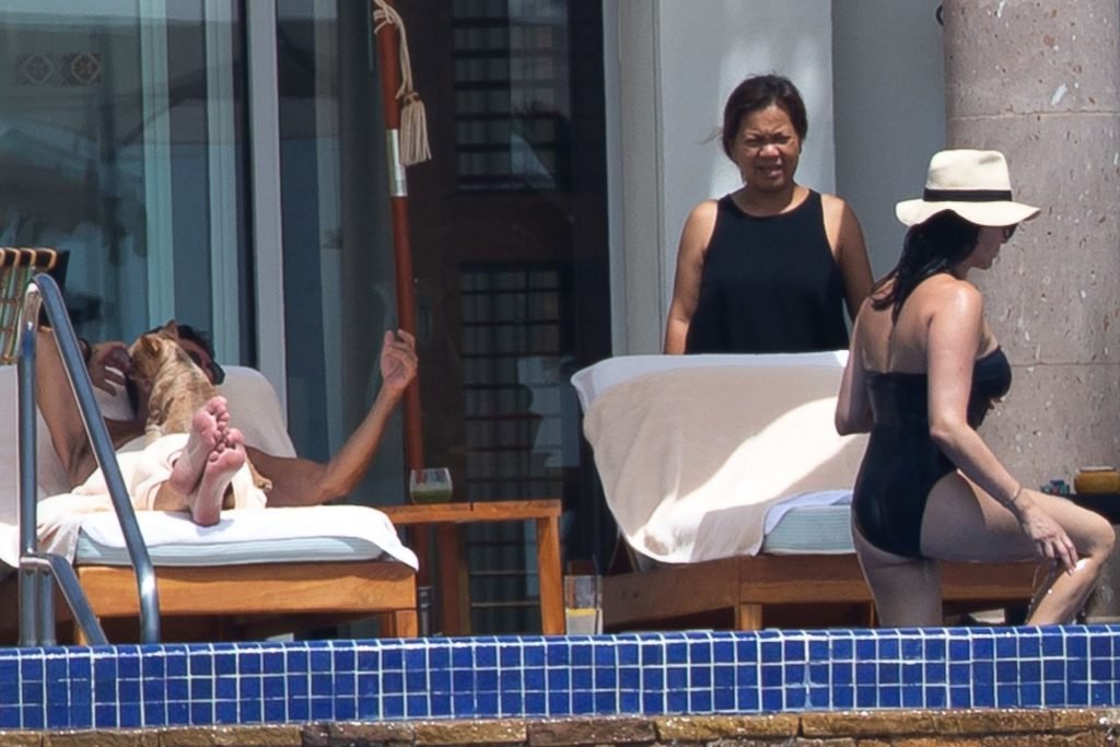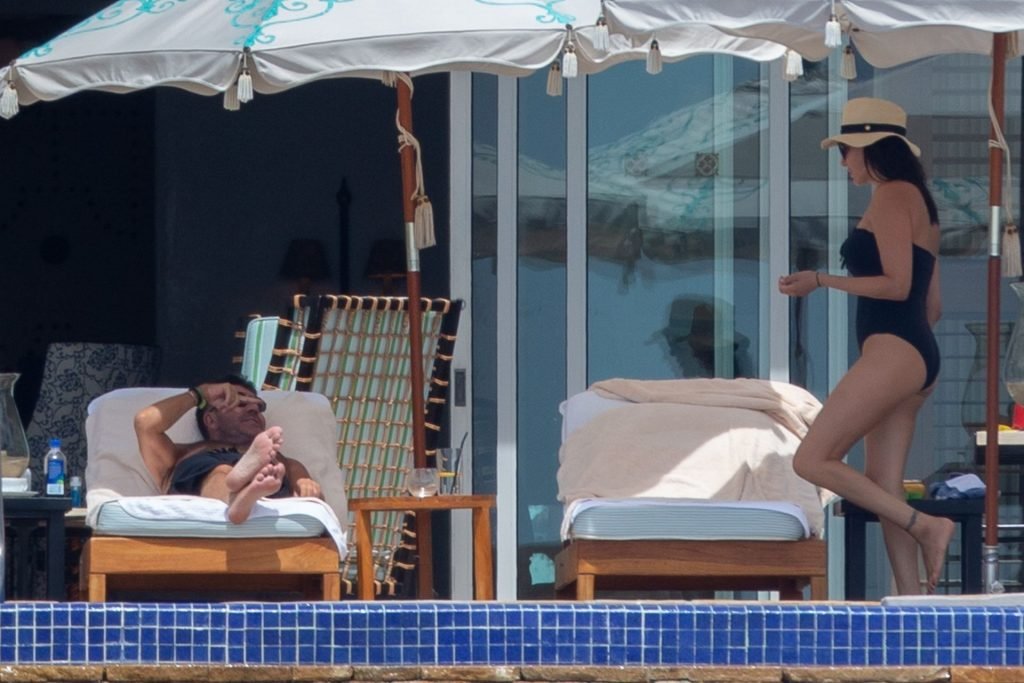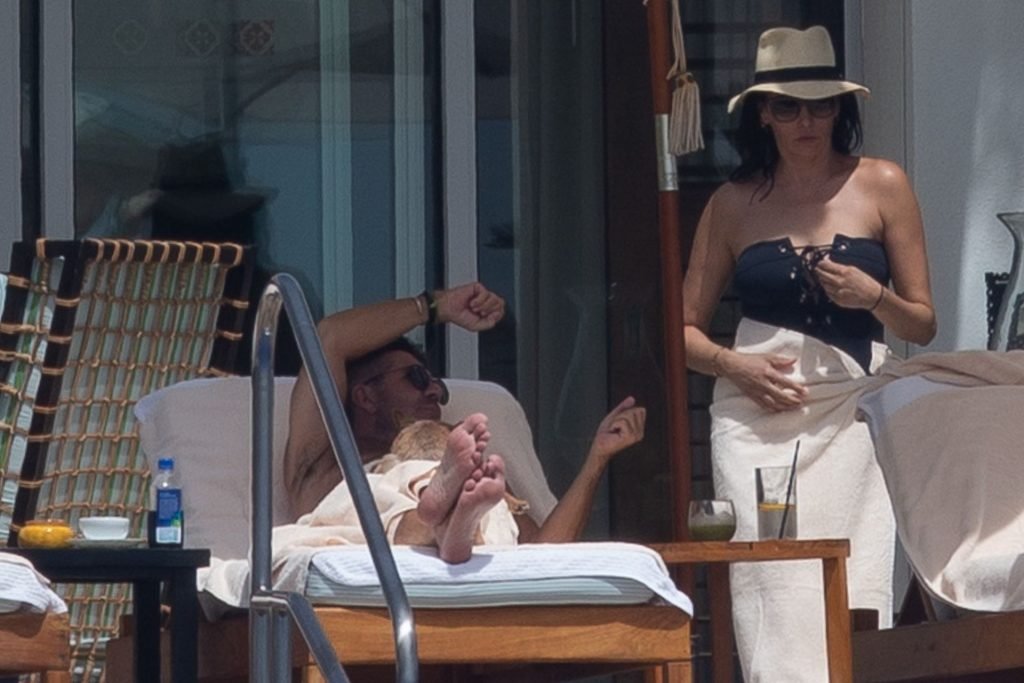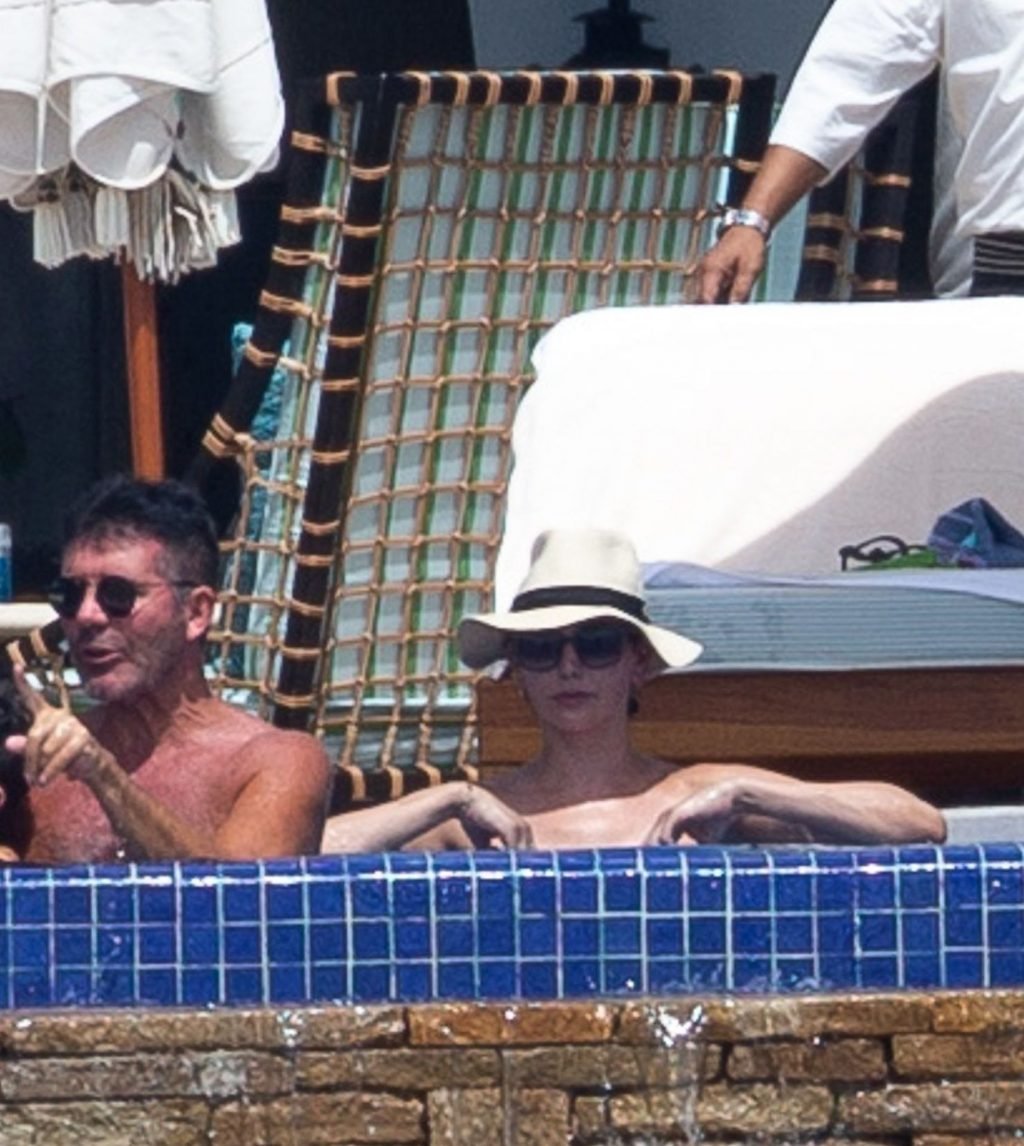 Simon Cowell é visto tomando um suco verde fresco enquanto aproveita uma escapada na praia em Cabo com Lauren Silverman e seu filho, 01/10/2019. Simon definitivamente perdeu bastante peso recentemente e estava exibindo uma cintura mais firme enquanto se divertia na piscina do seu resort.