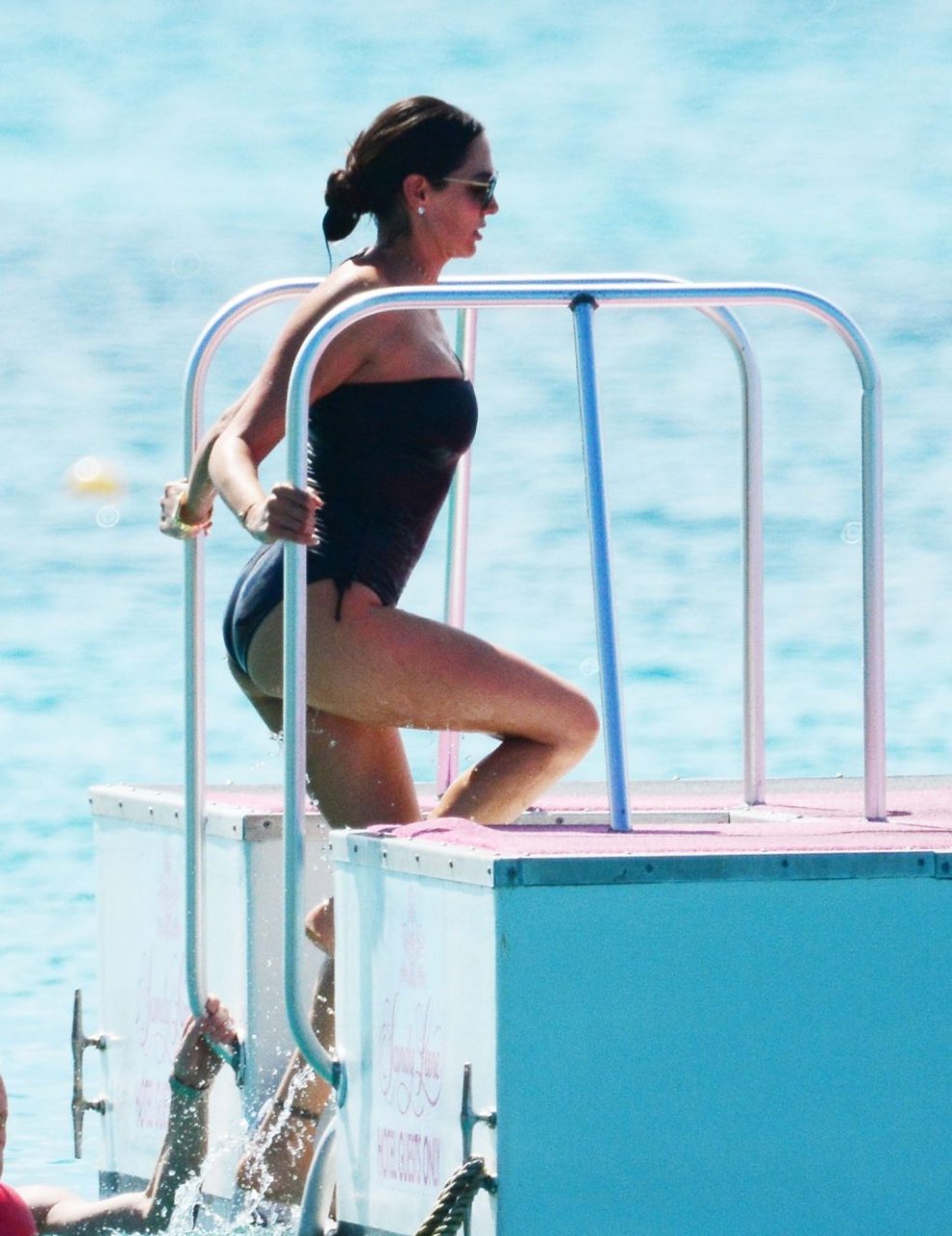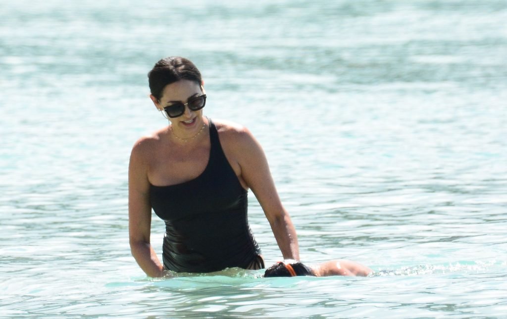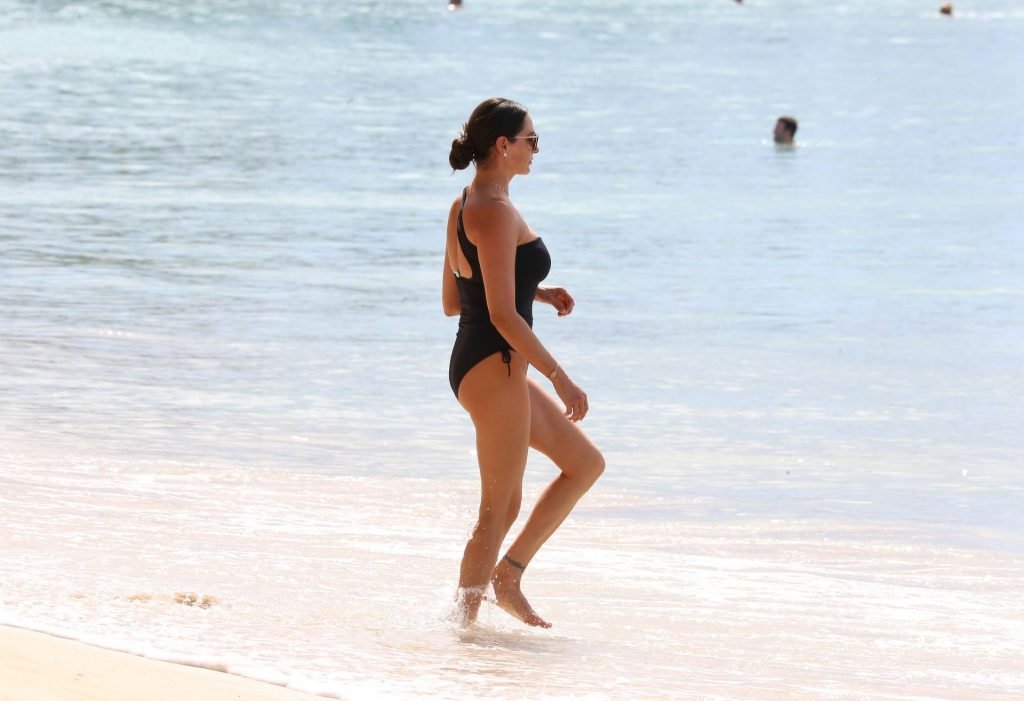 A namorada de Simon Cowell, Lauren Silverman, de 41 anos, foi fotografada com um maiô preto na praia em Barbados, 18/12/2018.