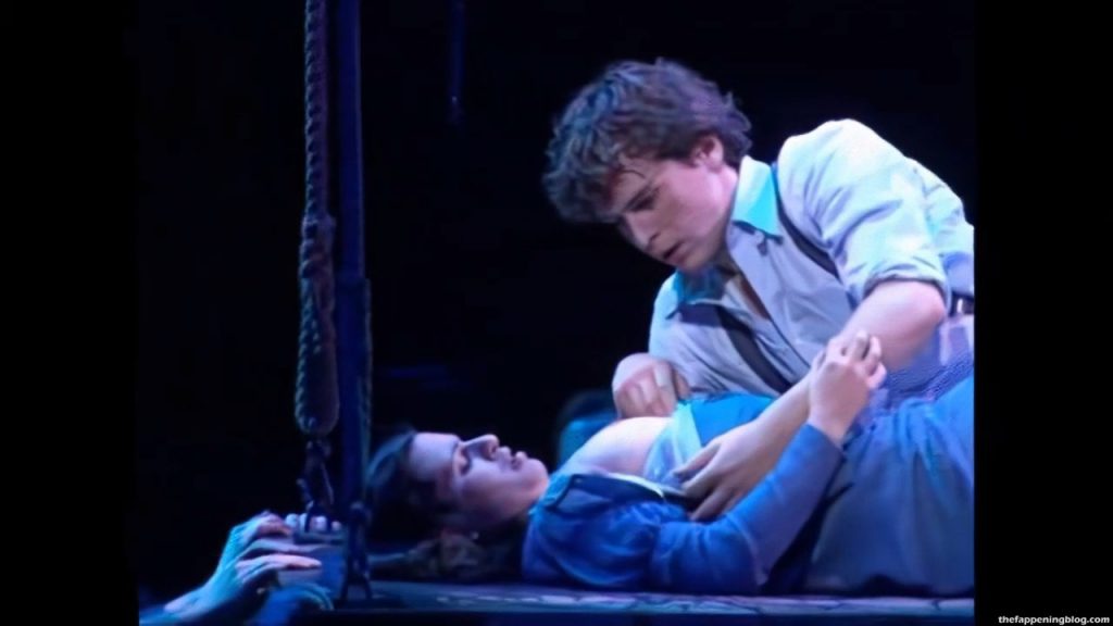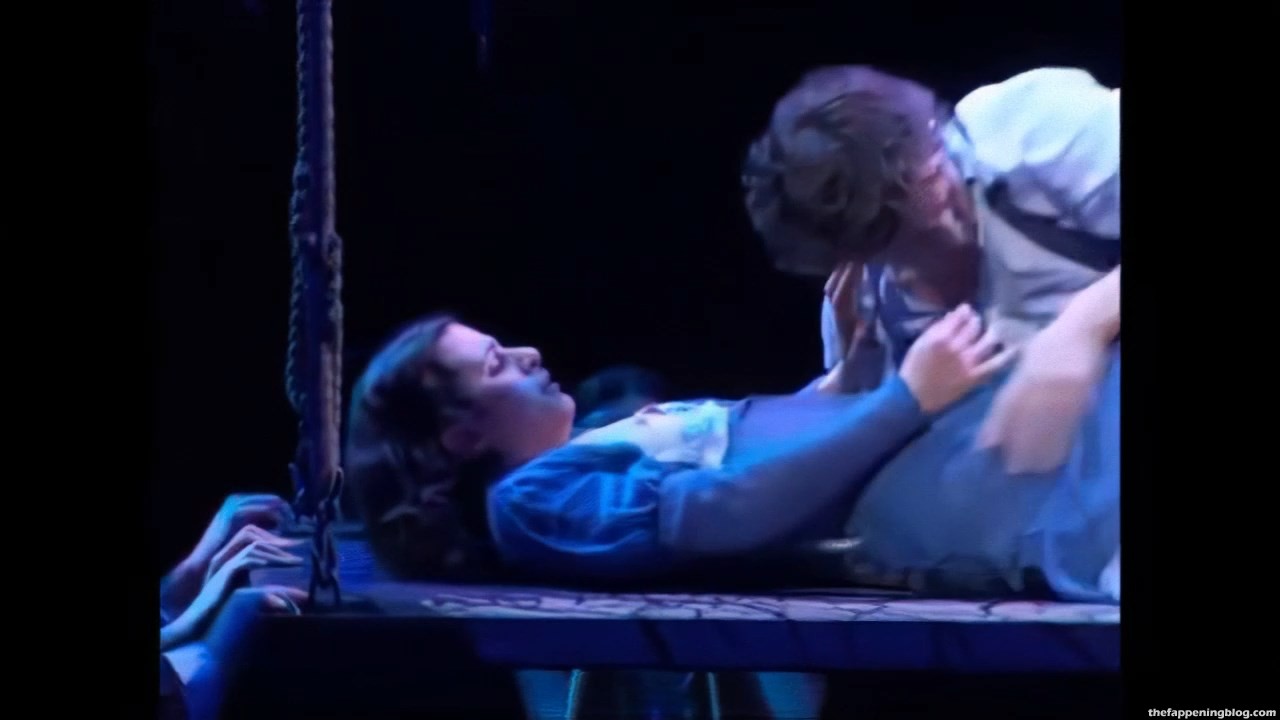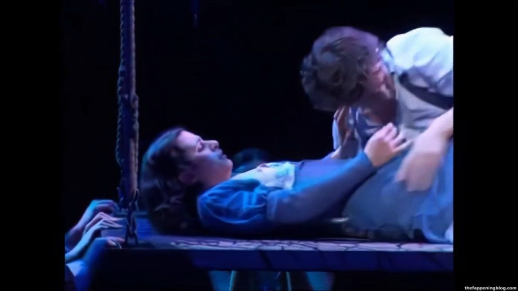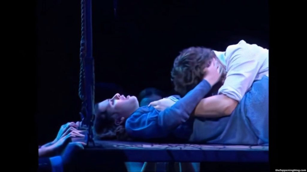 A atriz/cantora americana Lea Michele mostra seus seios nus para nós enquanto interpreta um papel no palco durante a apresentação ‘Spring Awakening’ (2008).