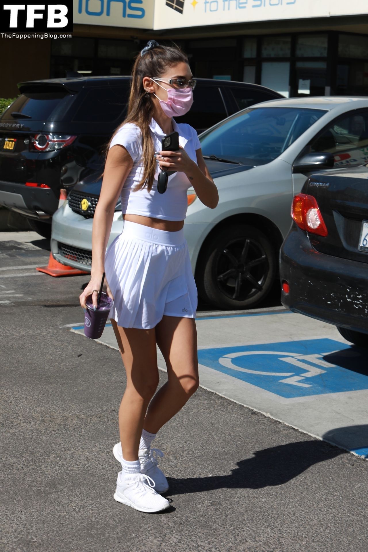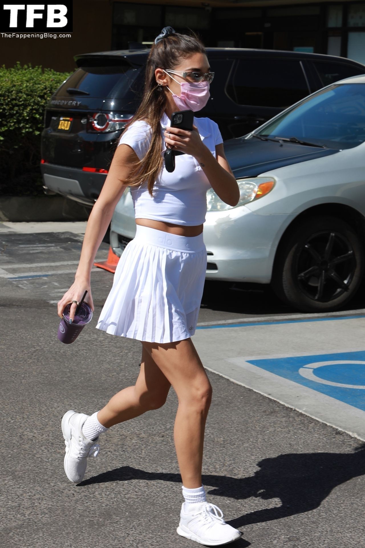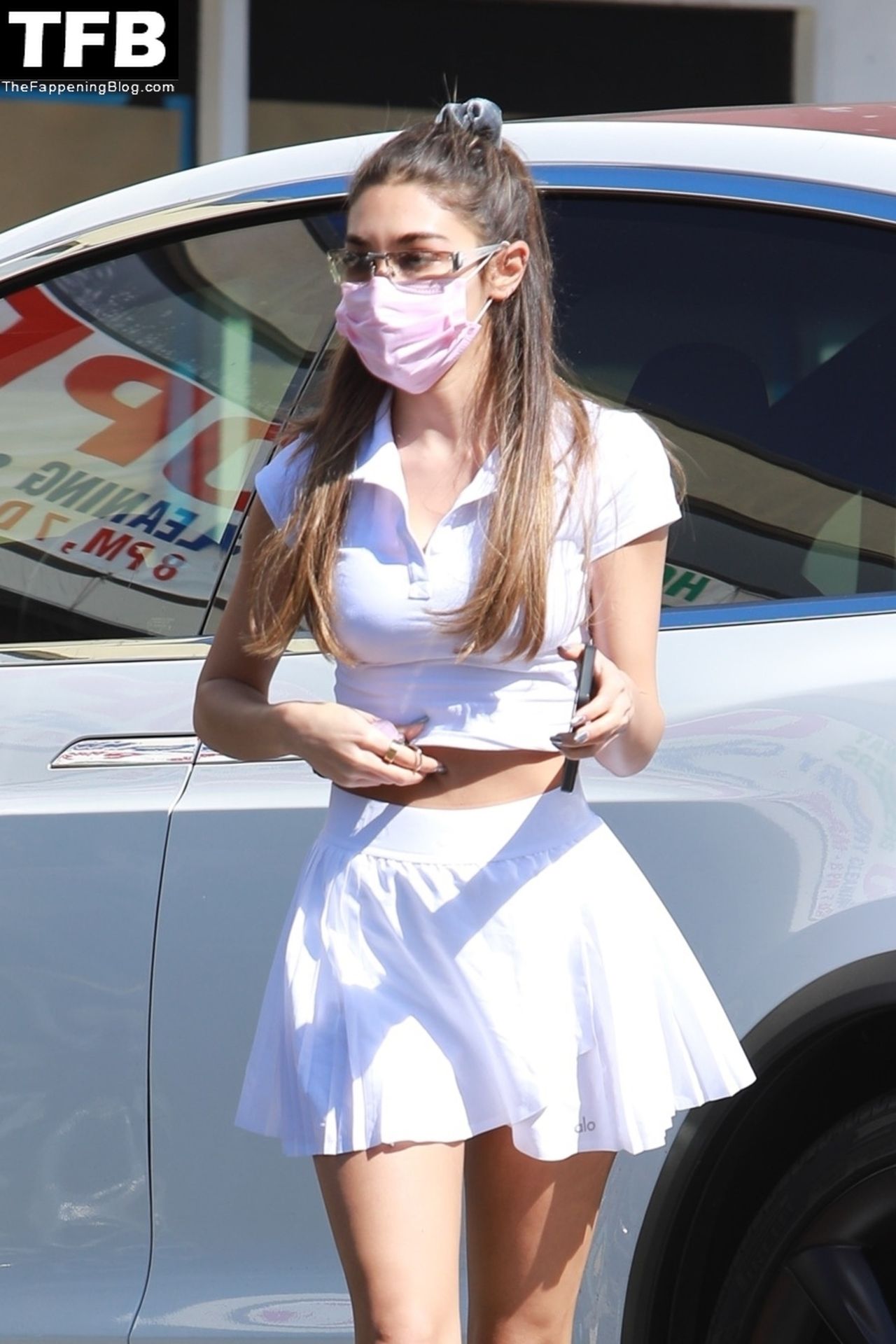 A estrela do Fappening, modelo e DJ Chantel Jeffries sai para tomar um suco vestindo um conjunto todo branco inspirado em baby doll, mostrando seus seios, pernas e bumbum sexy em West Hollywood, 20/10/2021.