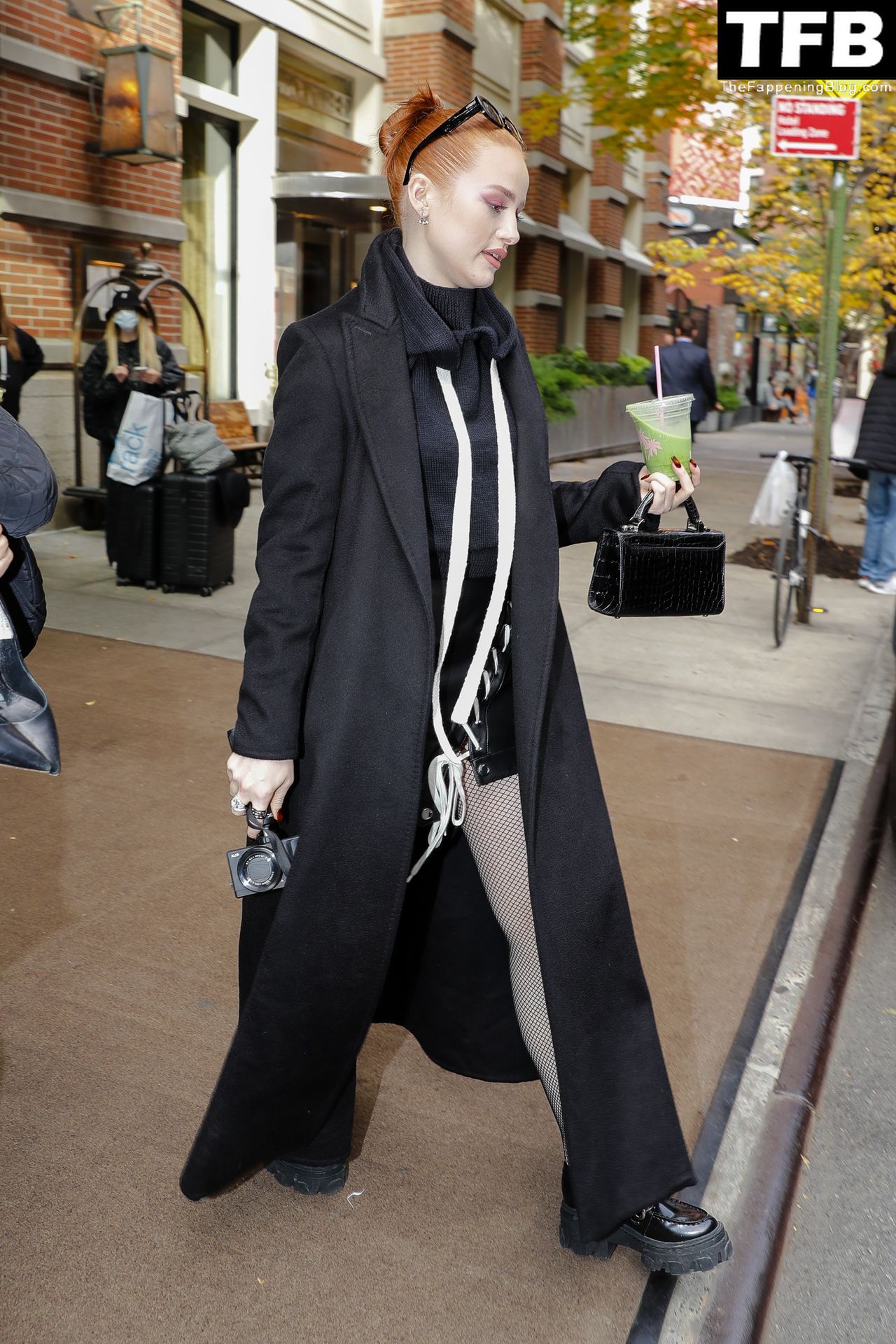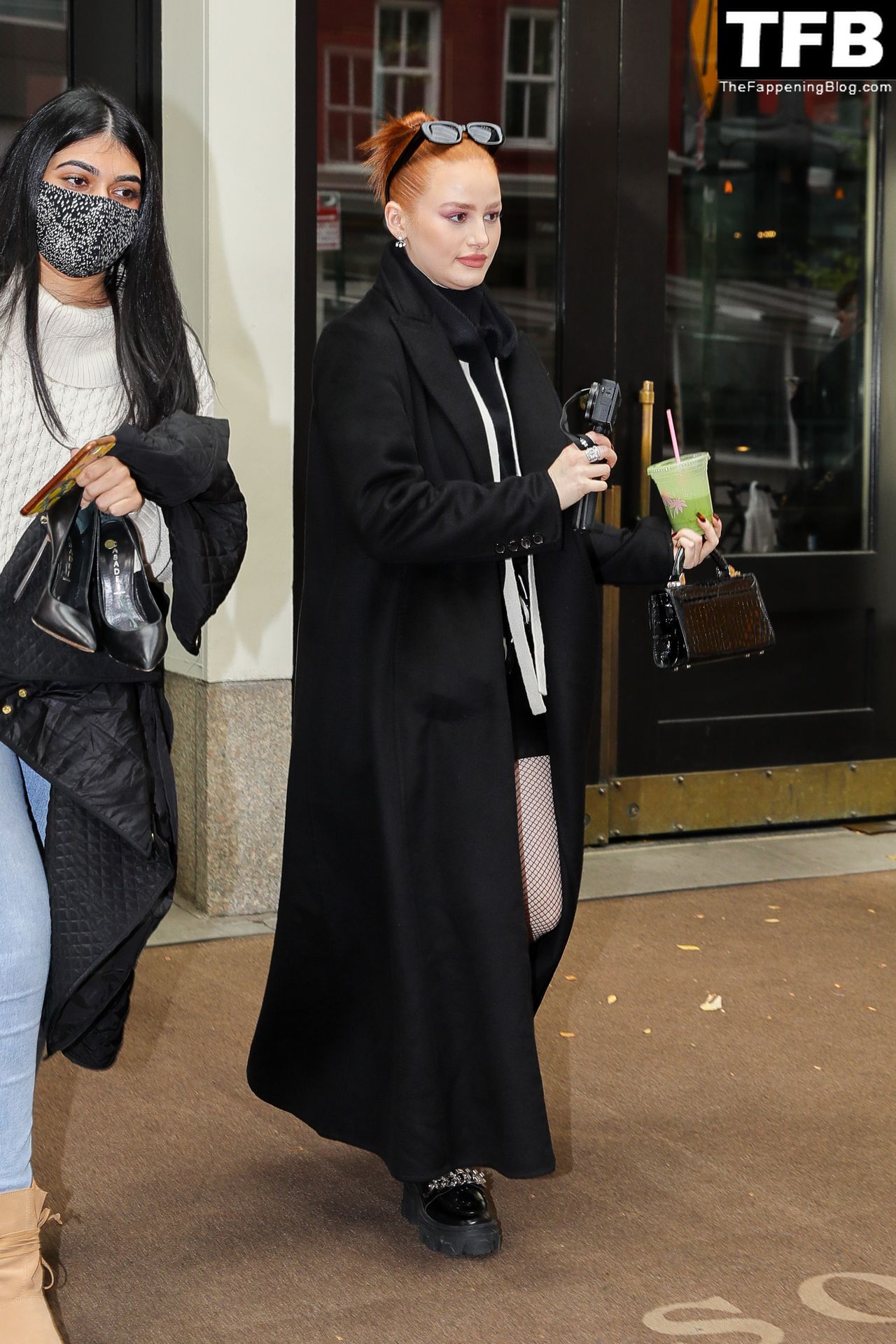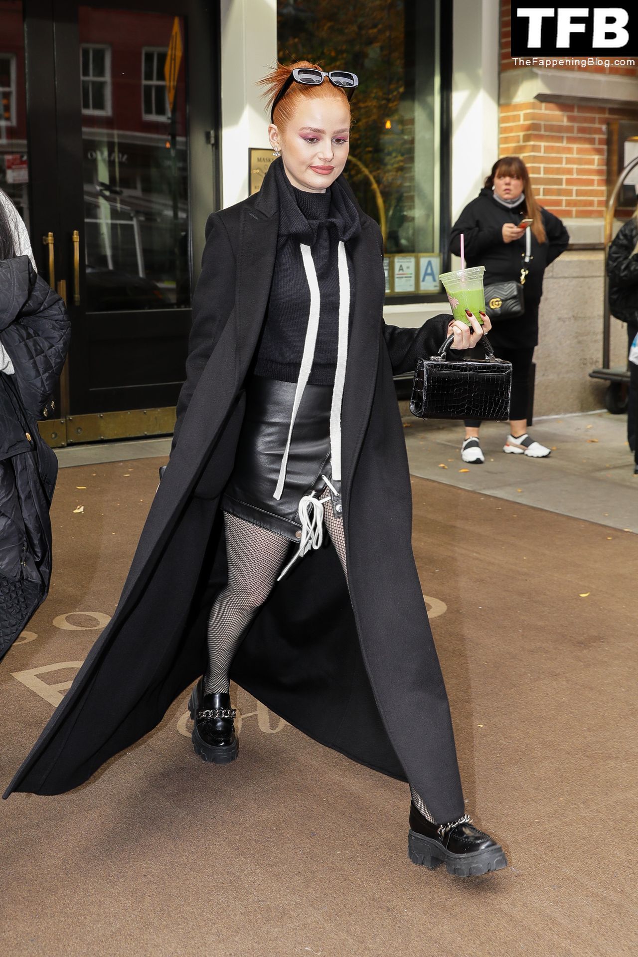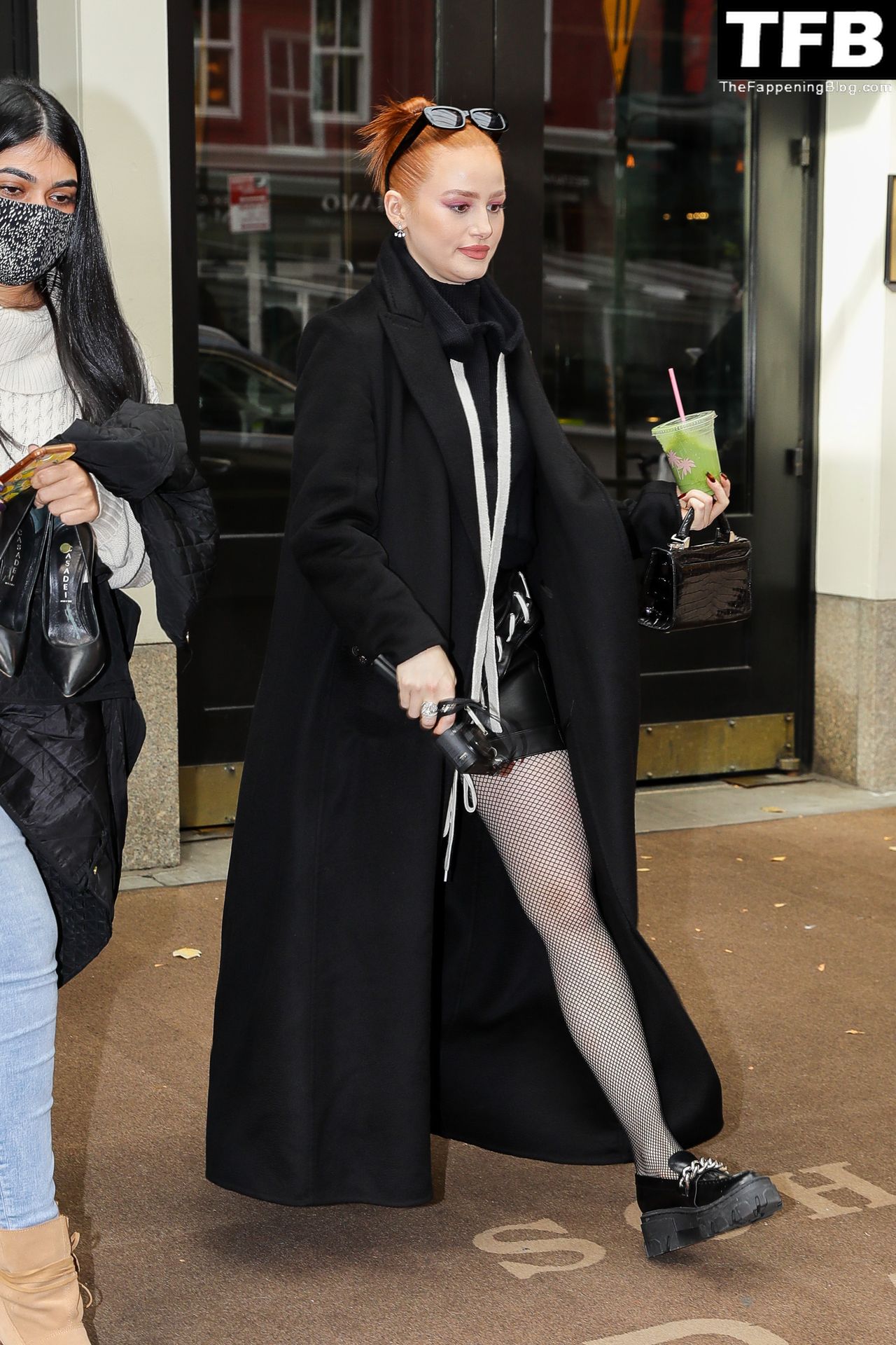 Madelaine Petsch foi vista enquanto saía em Nova York vestida com um conjunto totalmente preto, 11/11/2021.