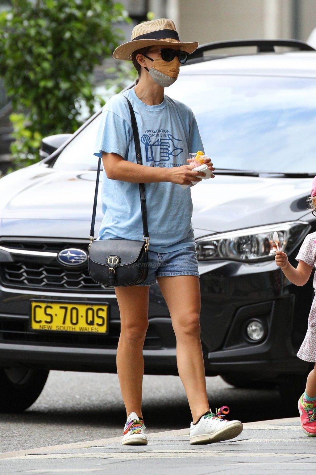 A atriz Natalie Portman e a filha Amalia Millepied foram fotografadas comprando sorvete em Double Bay, Sydney, 01/06/2021.
