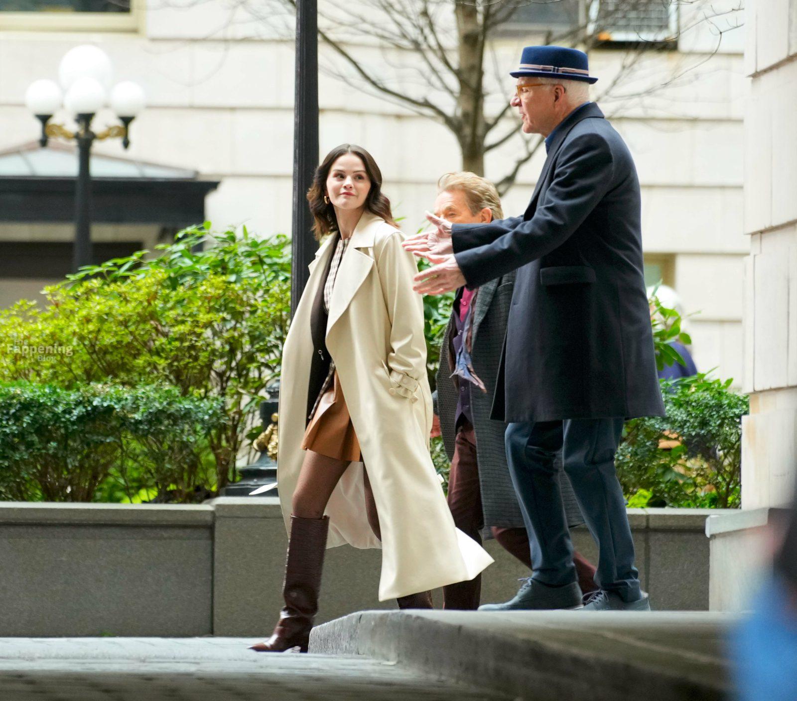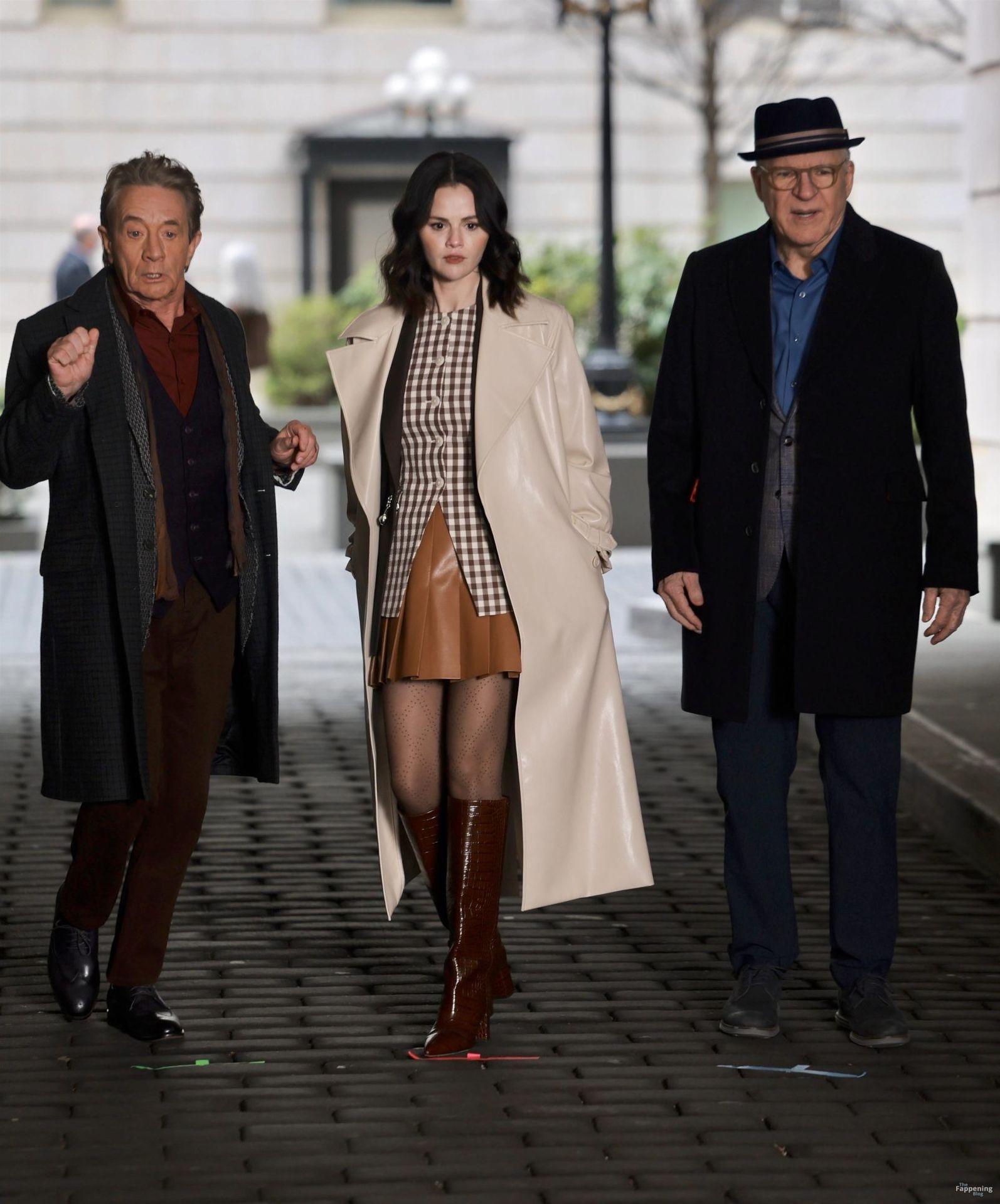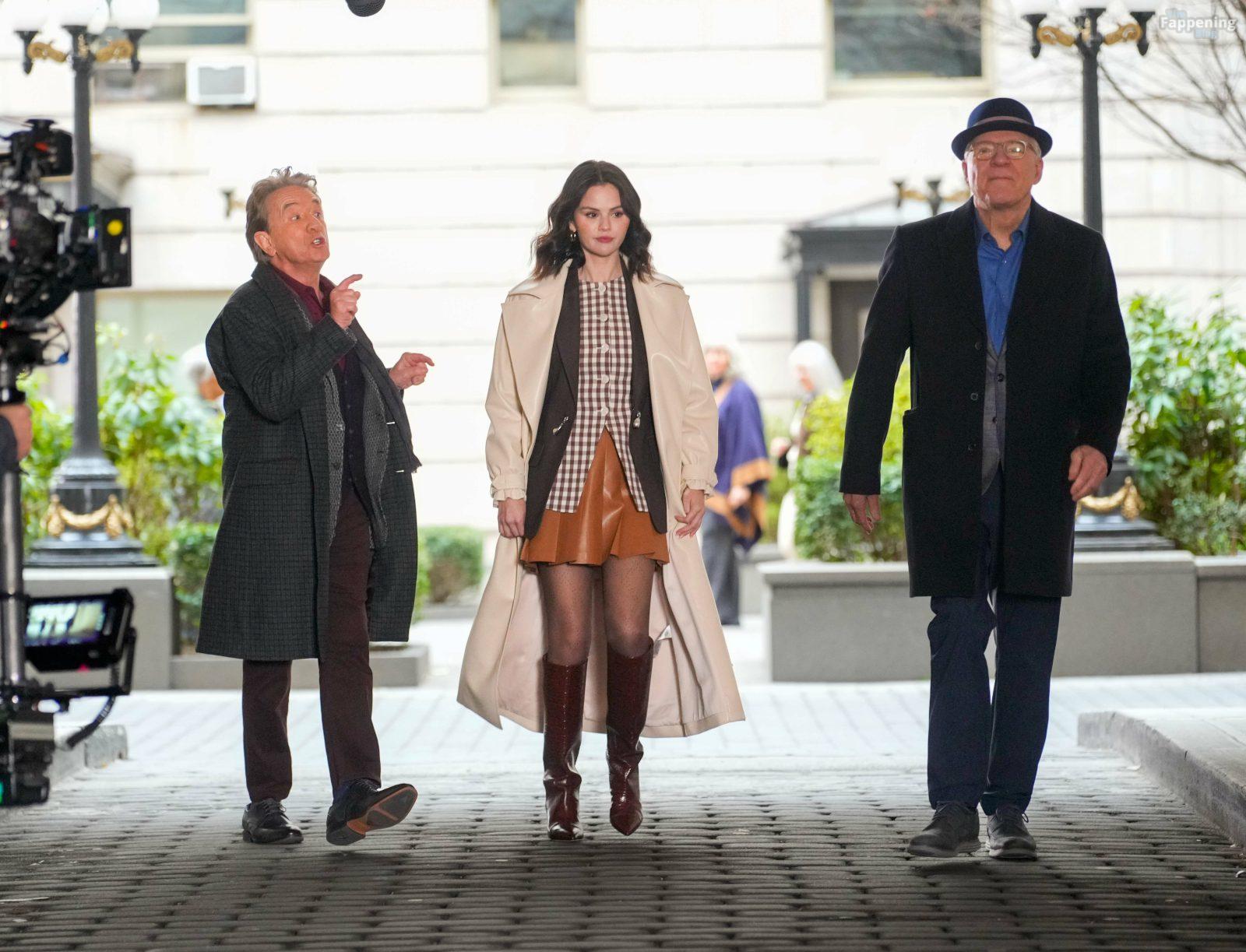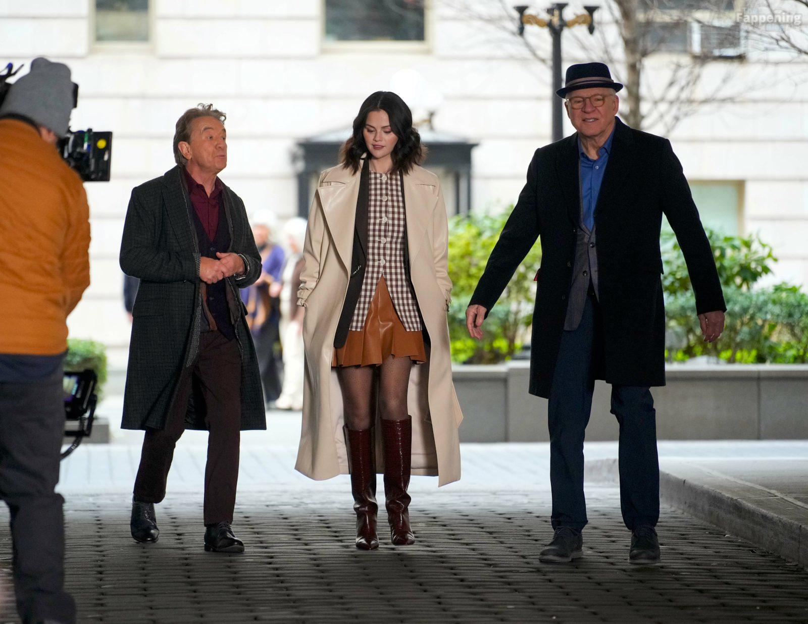 A estrela do Fappening Selena Gomez foi flagrada no set de “Only Murders in the Building” em Nova York, usando uma minissaia estilosa, trench coat e botas altas.