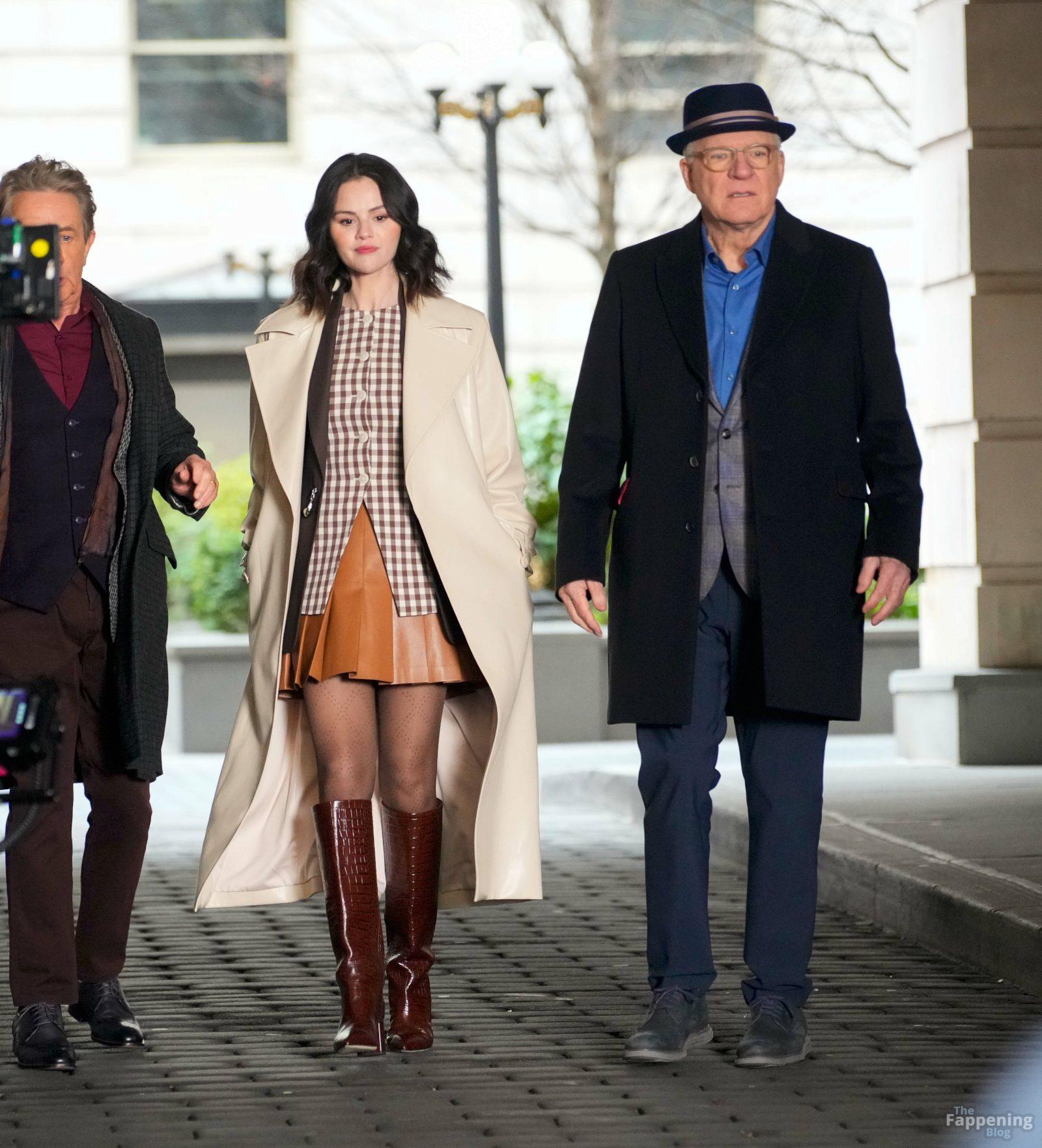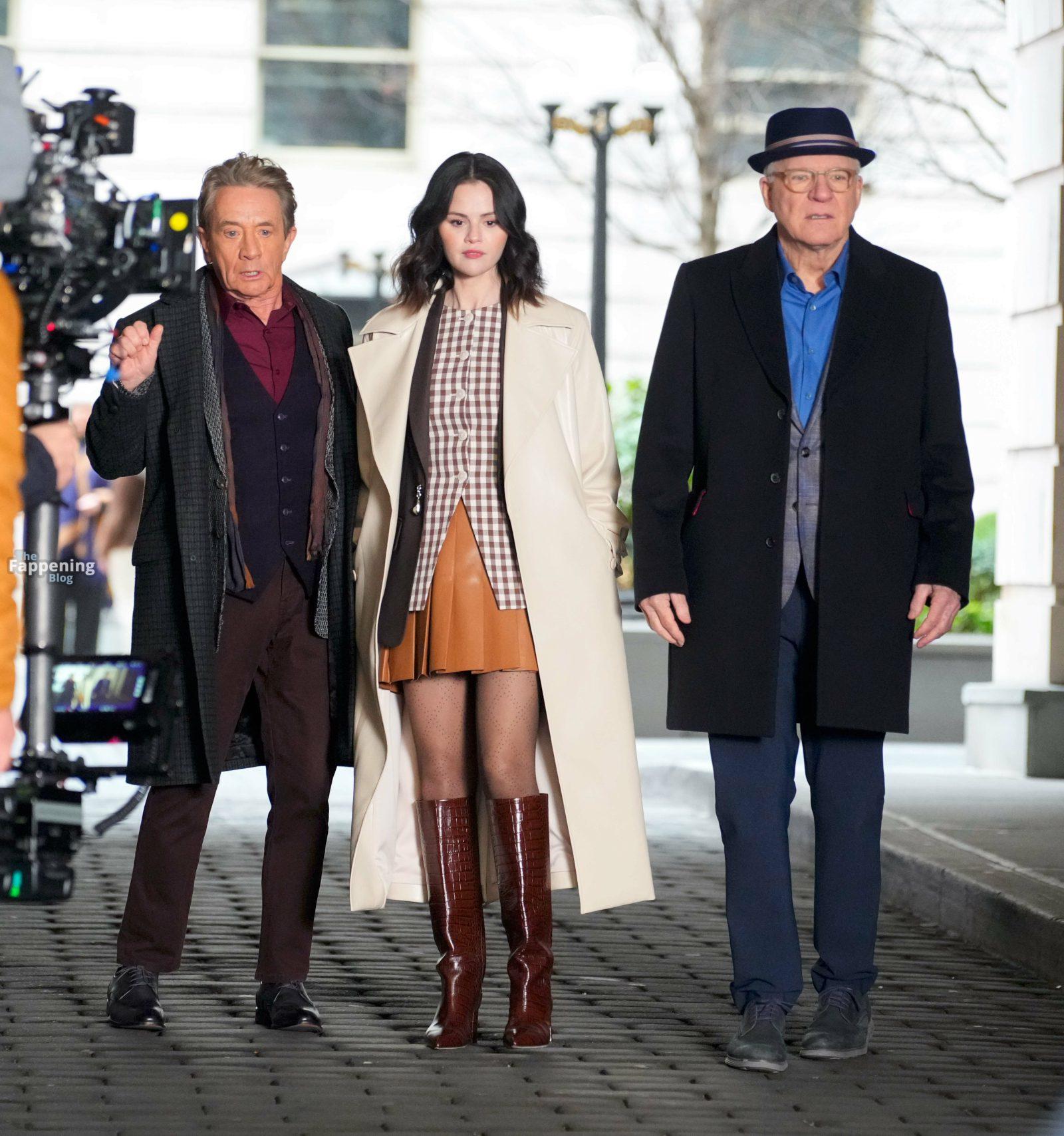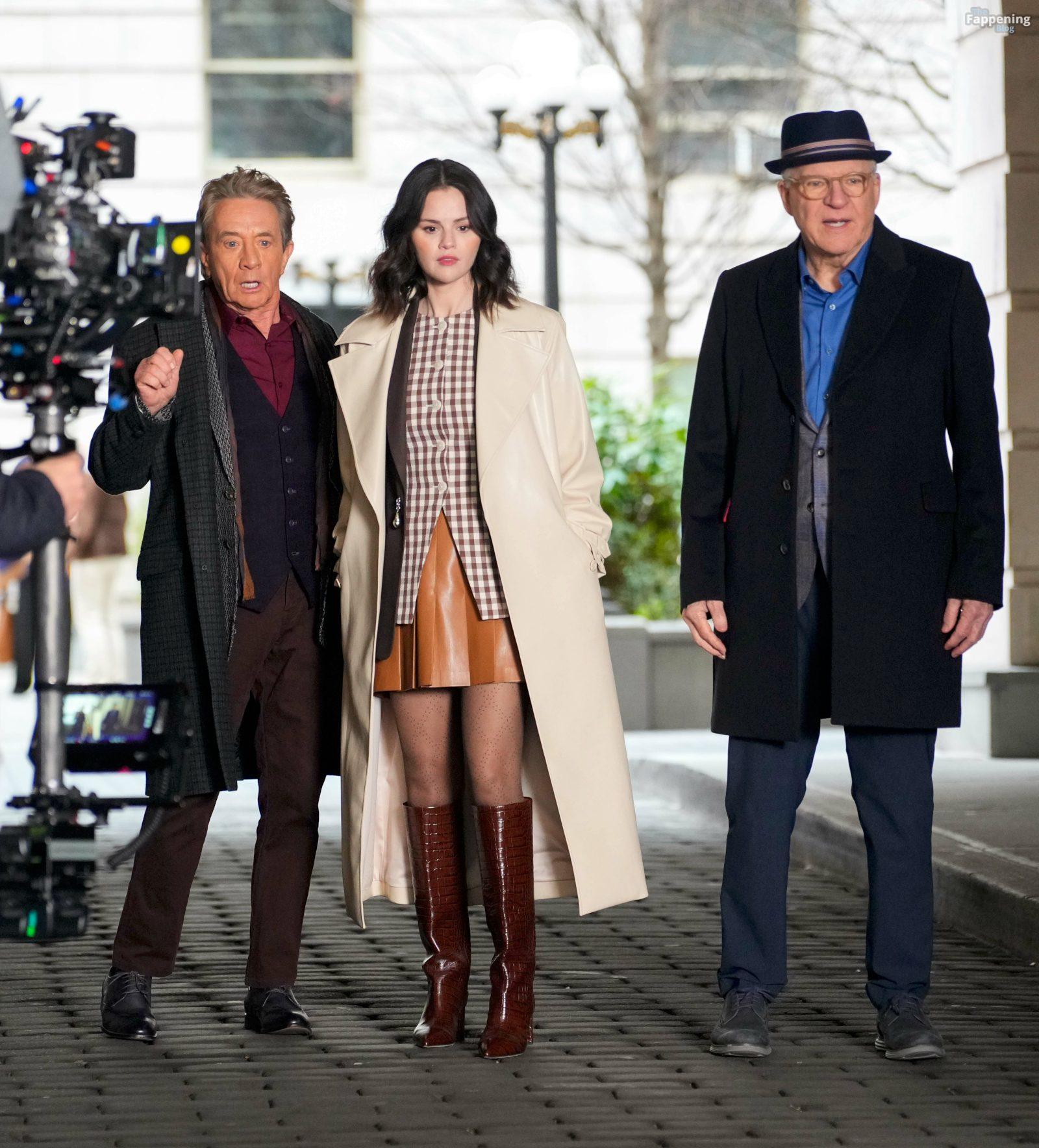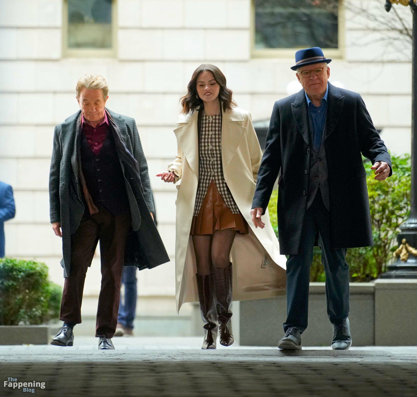 A estrela do Fappening Selena Gomez foi flagrada no set de “Only Murders in the Building” em Nova York, usando uma minissaia estilosa, trench coat e botas altas.