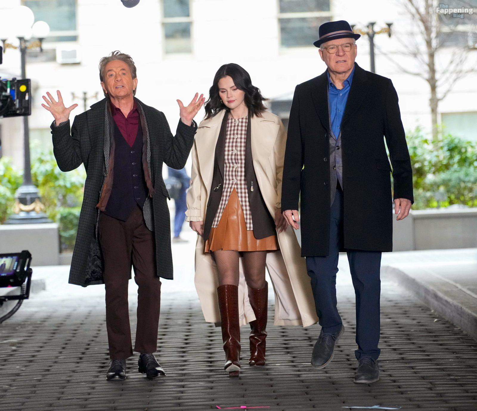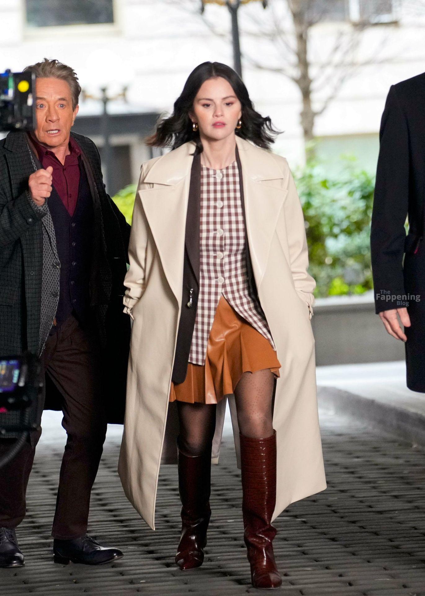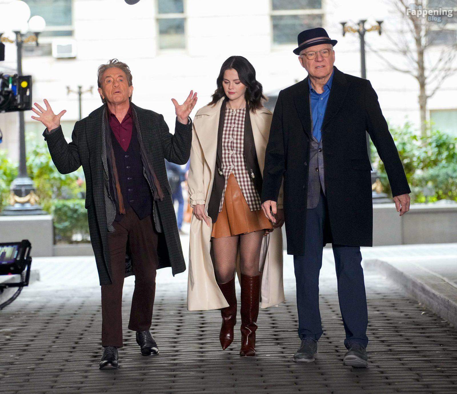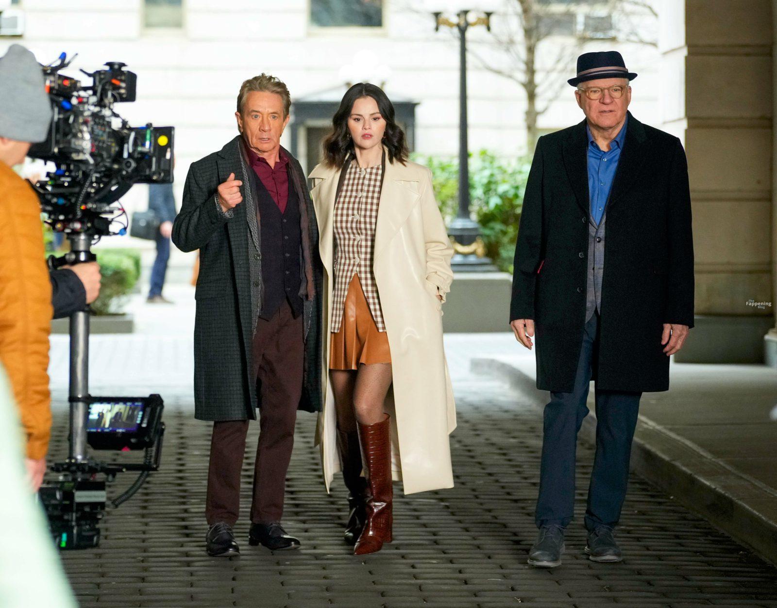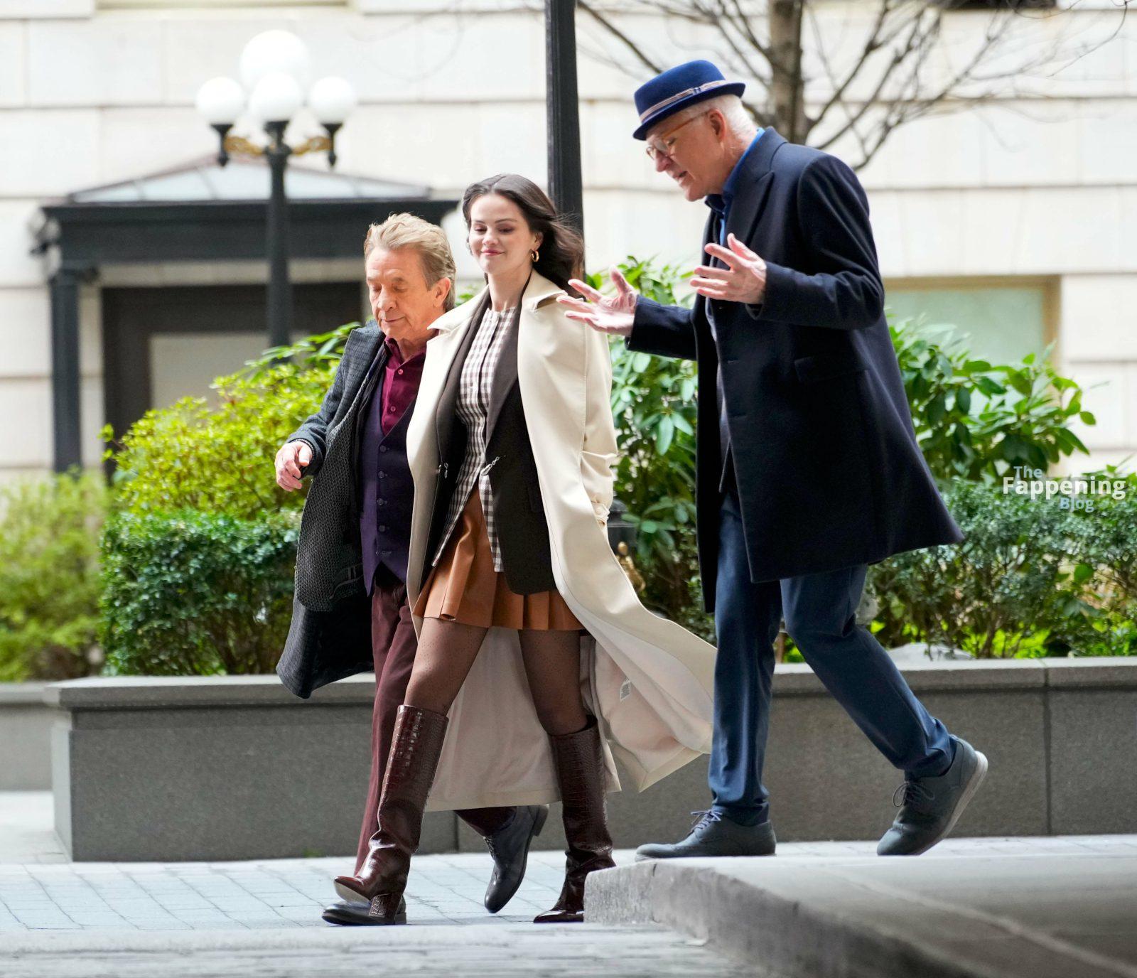 A estrela do Fappening Selena Gomez foi flagrada no set de “Only Murders in the Building” em Nova York, usando uma minissaia estilosa, trench coat e botas altas.