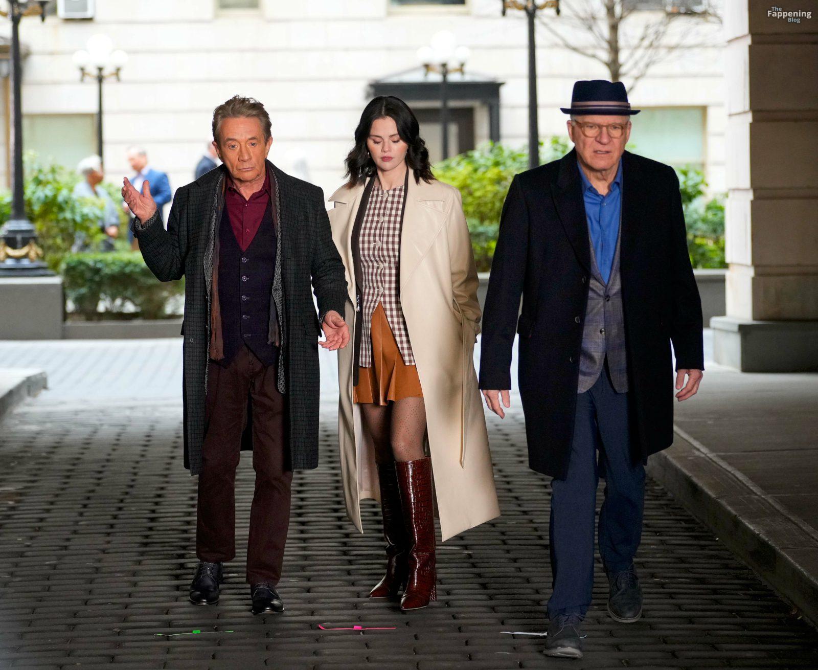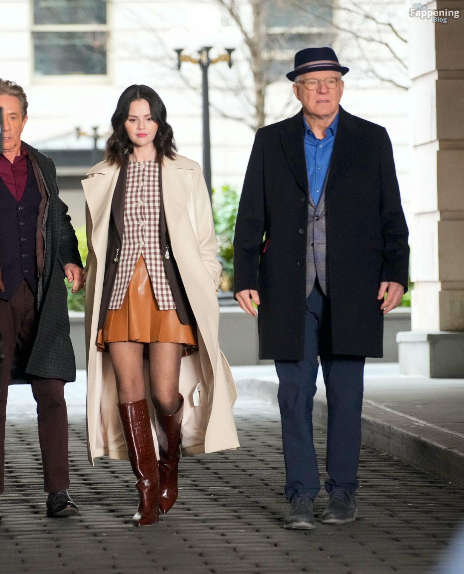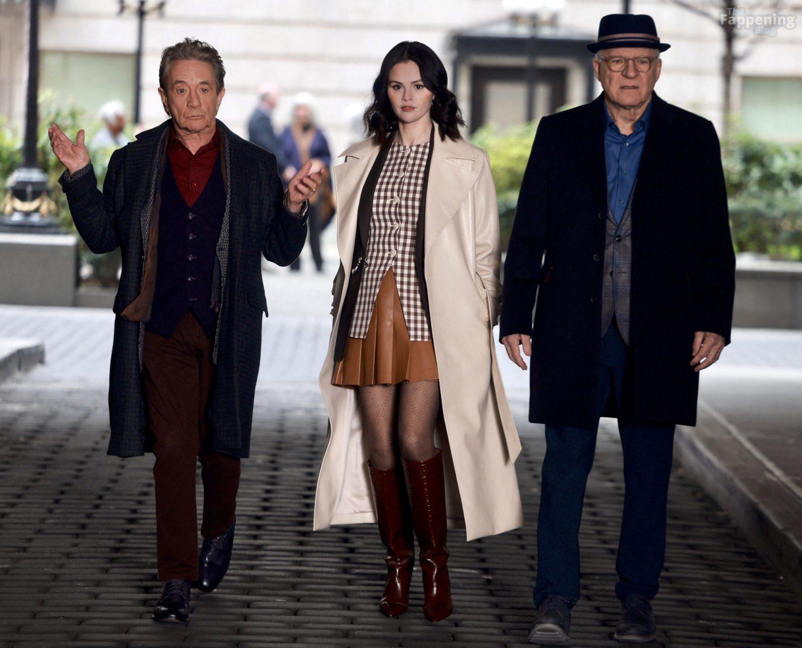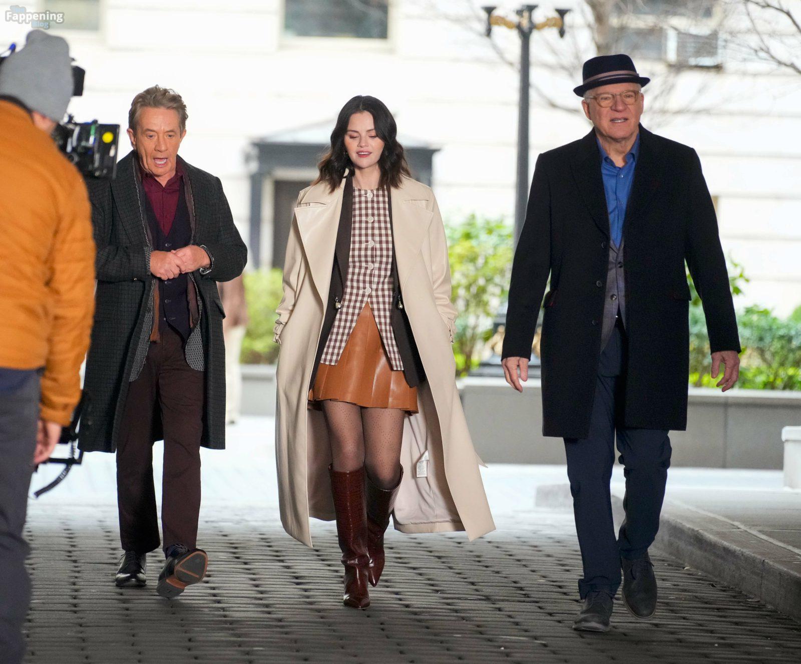 A estrela do Fappening Selena Gomez foi flagrada no set de “Only Murders in the Building” em Nova York, usando uma minissaia estilosa, trench coat e botas altas.
